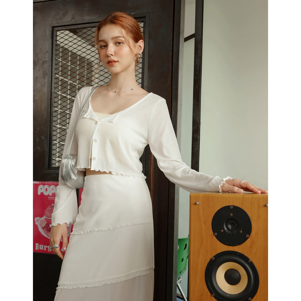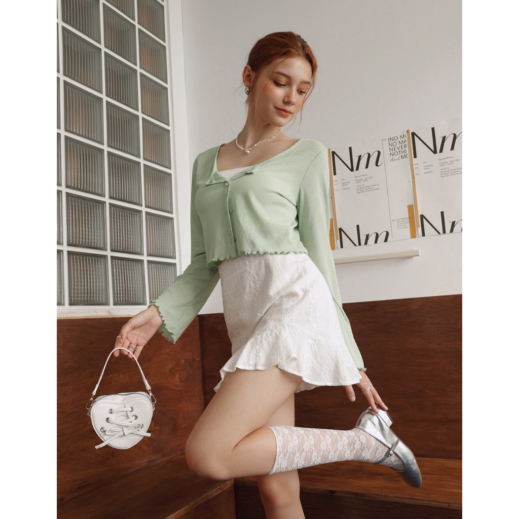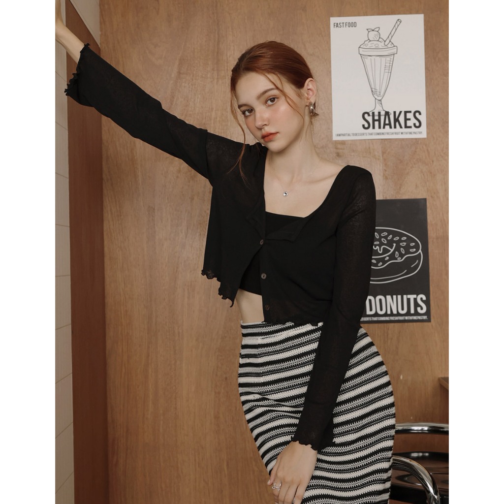 AIR SPACE 透膚木耳捲排釦上衣(黑/白/綠/灰) 女裝 現貨