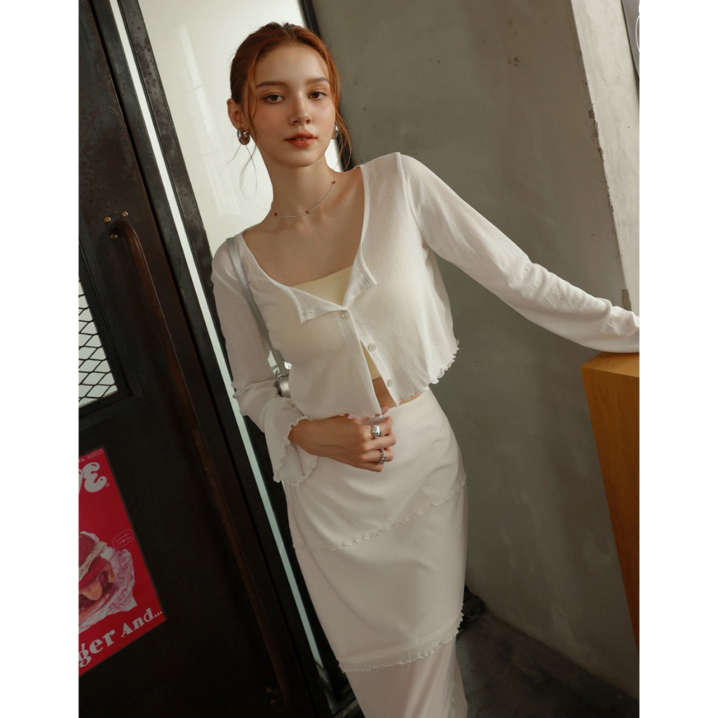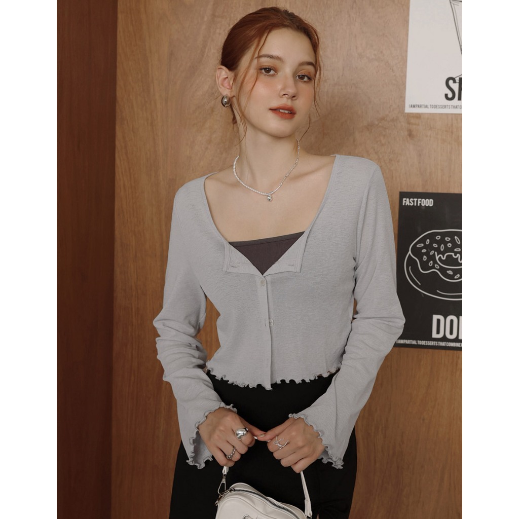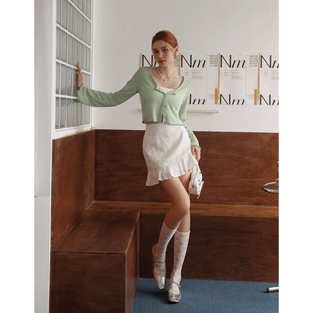 AIR SPACE 透膚木耳捲排釦上衣(黑/白/綠/灰) 女裝 現貨