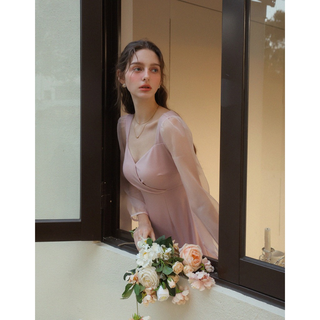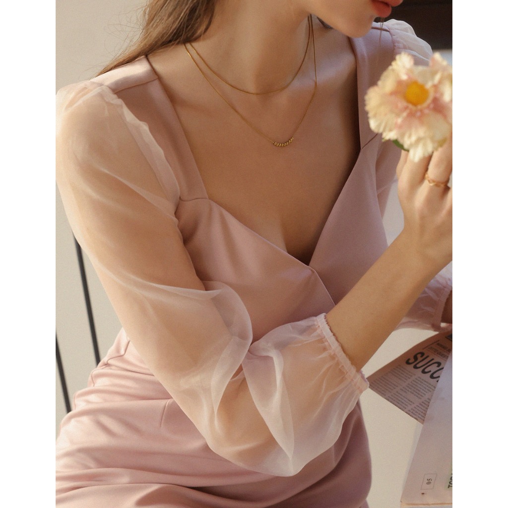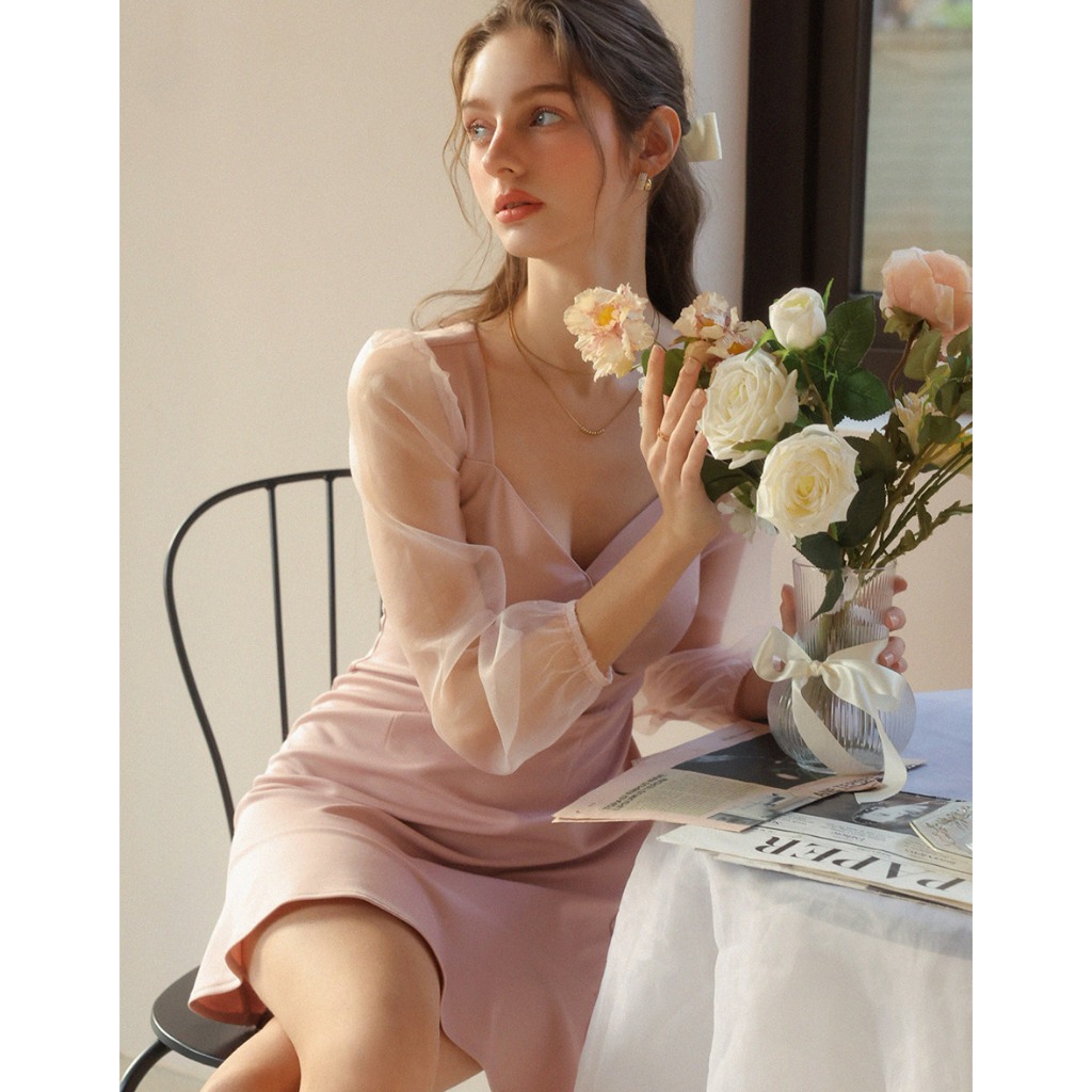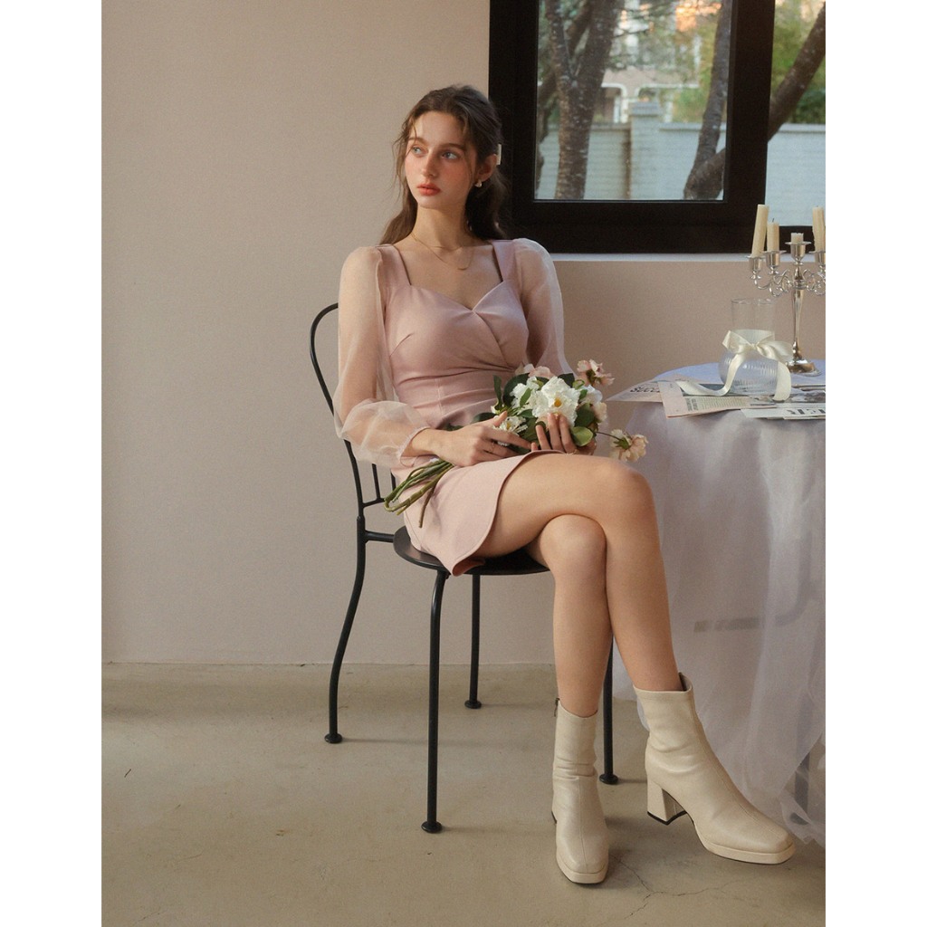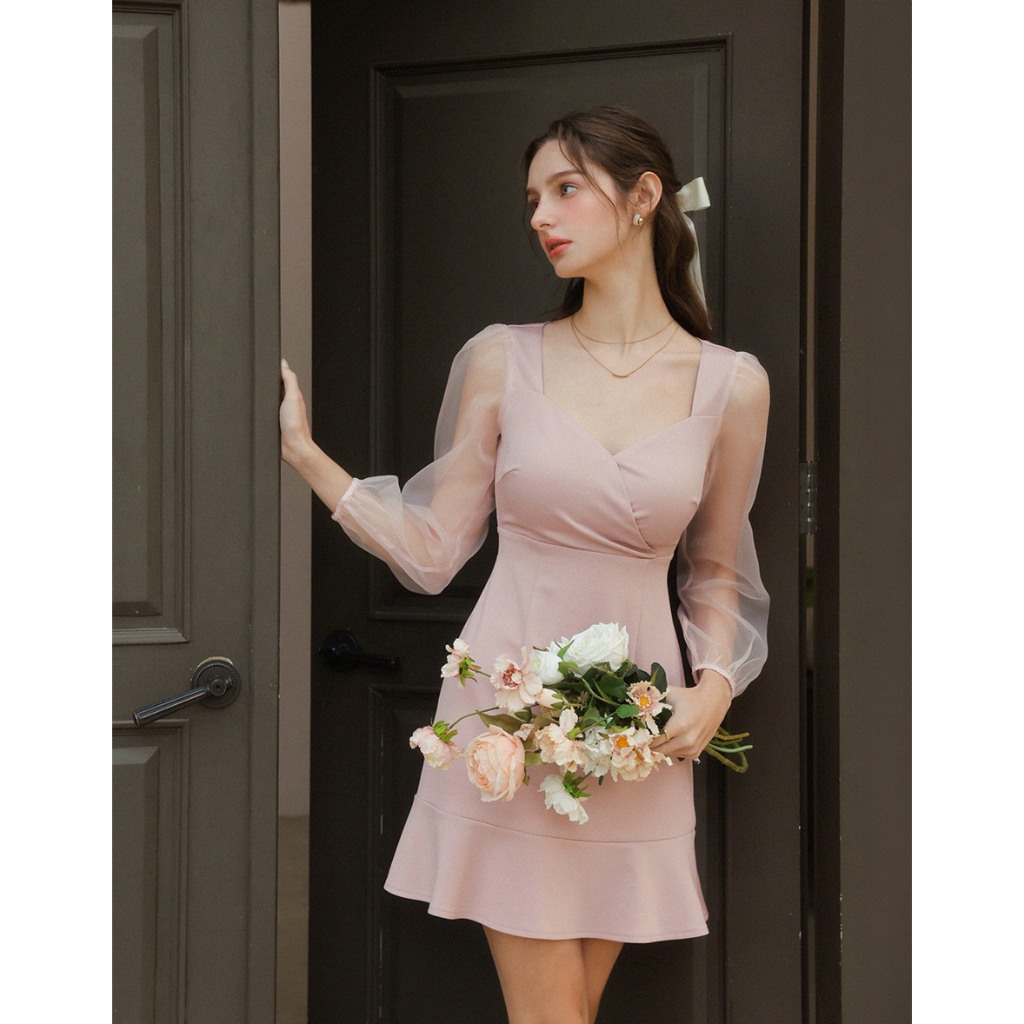 AIR SPACE 優雅透膚拼接魚尾短洋裝(黑/粉紅) 女裝 現貨黑,S|黑,M|黑,L|粉紅,S|粉紅,M|粉紅,LAIR SPACE