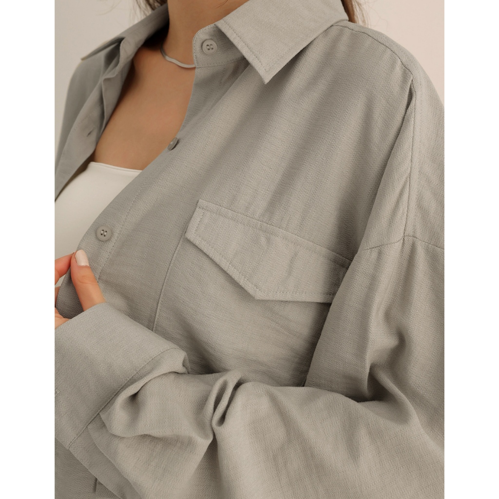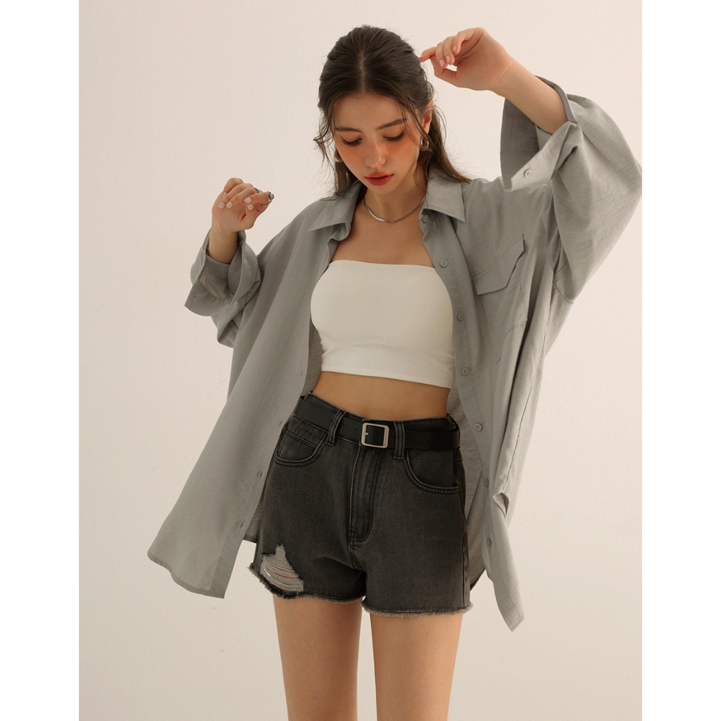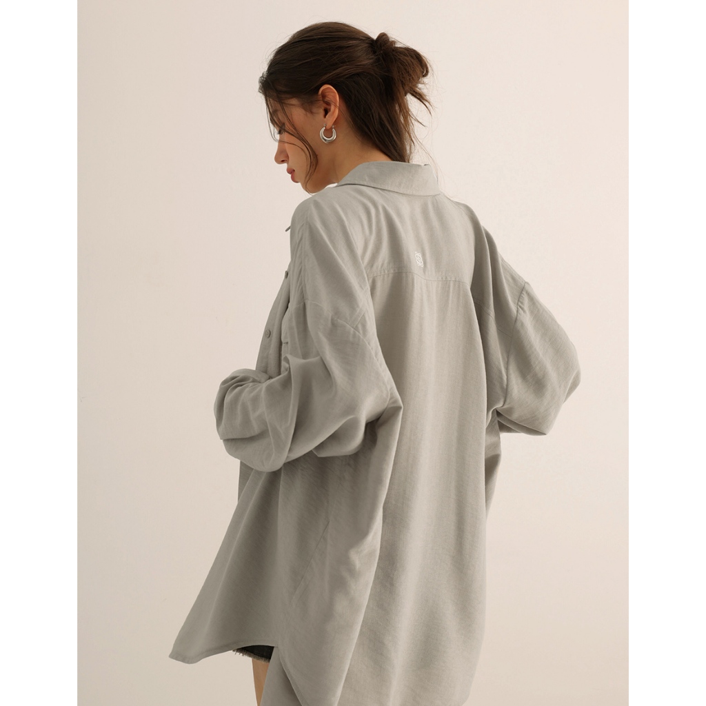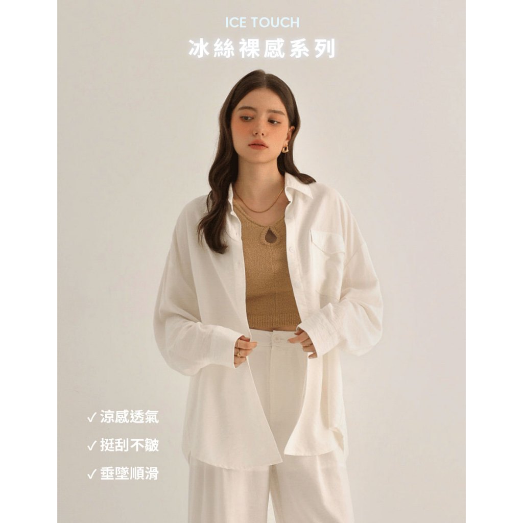 AIR SPACE 冰絲裸感雙口袋寬版襯衫(白/淺灰) 女裝 現貨白,F|淺灰,FShirts & BlousesAIR SPACE