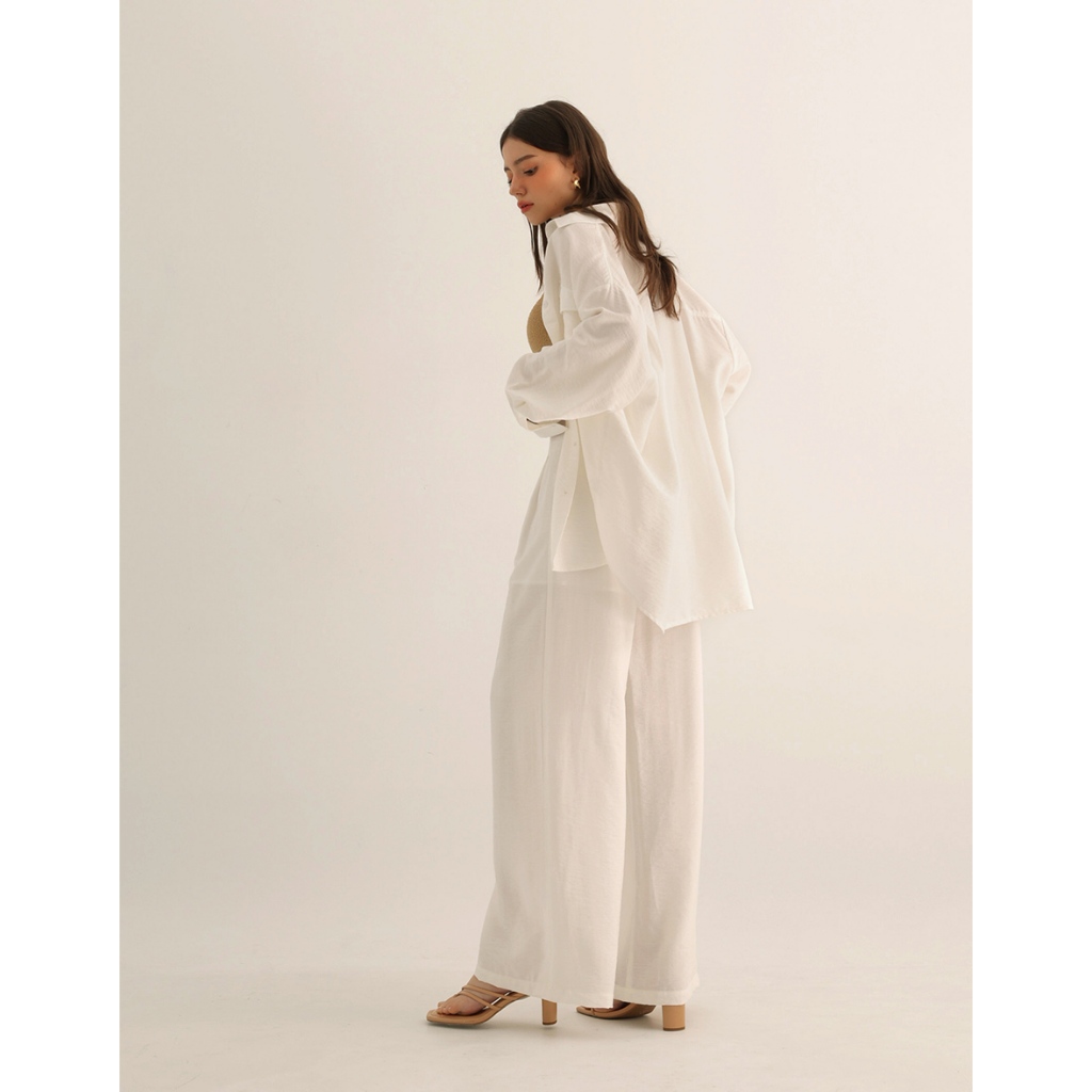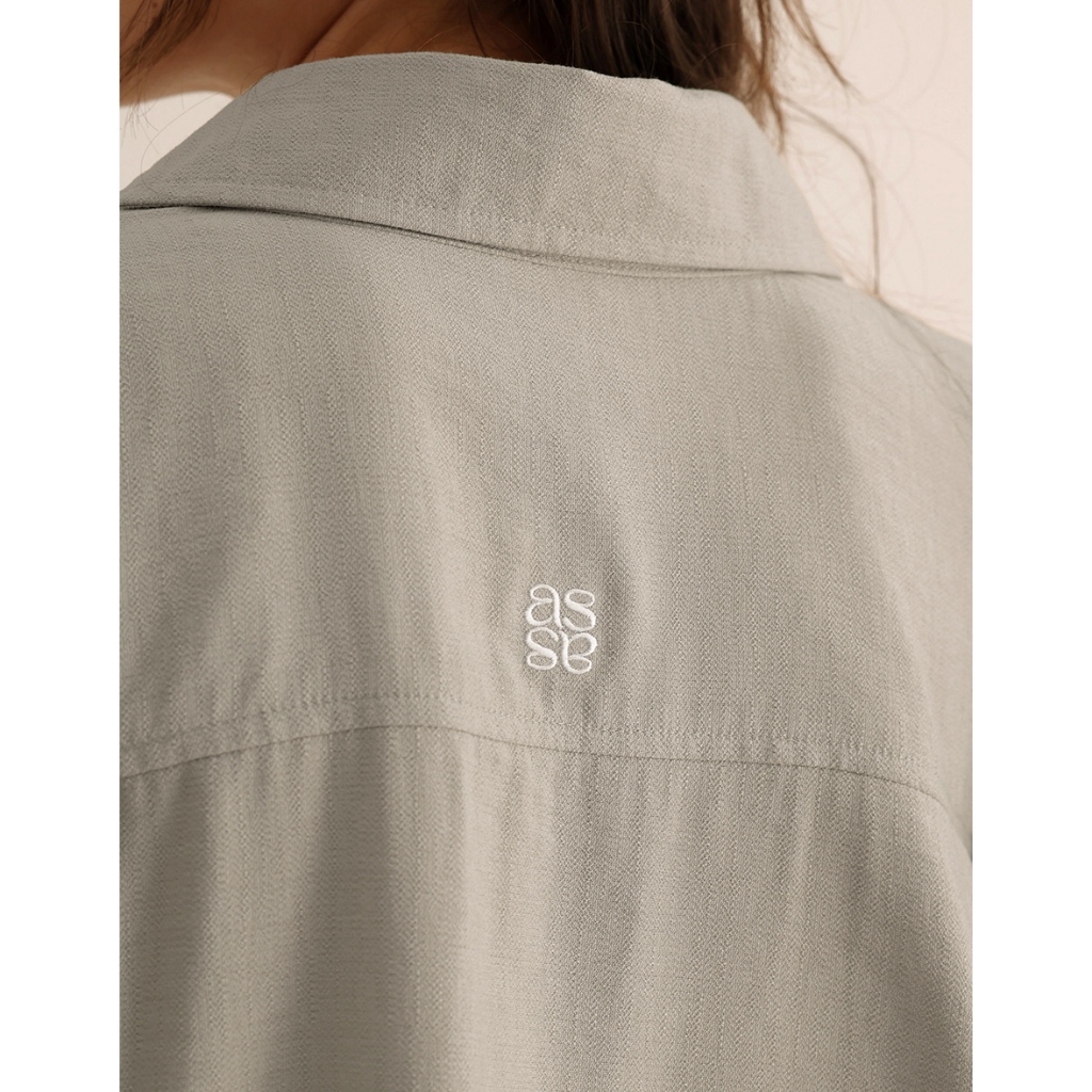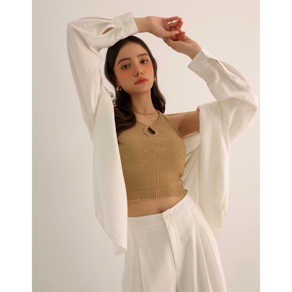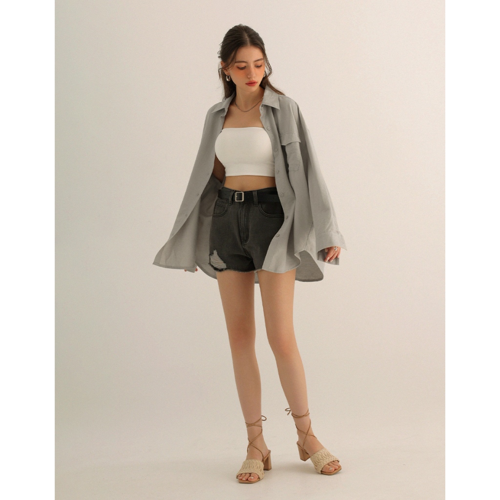 AIR SPACE 冰絲裸感雙口袋寬版襯衫(白/淺灰) 女裝 現貨白,F|淺灰,FShirts & BlousesAIR SPACE