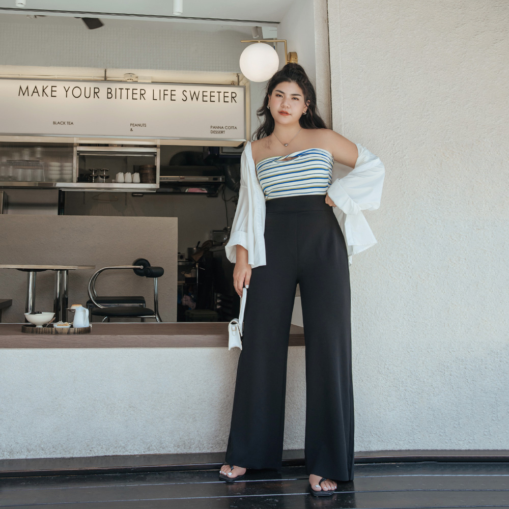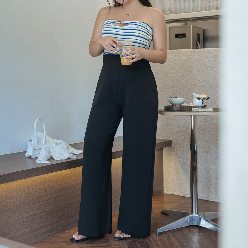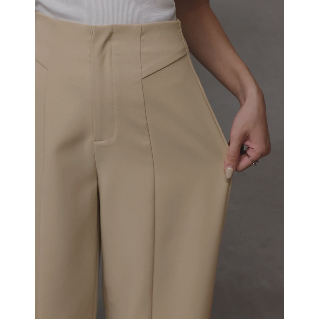 AIR SPACE PLUS 【纖女級2.0】高腰剪裁長腿直筒褲(黑/杏) 女裝 現貨 大尺碼 中大尺碼黑,XL|黑,2XL|黑,3XL|杏,XL|杏,2XL|杏,3XLPantsAIR SPACE