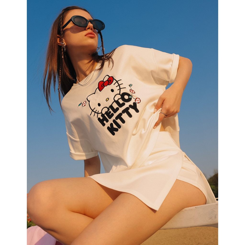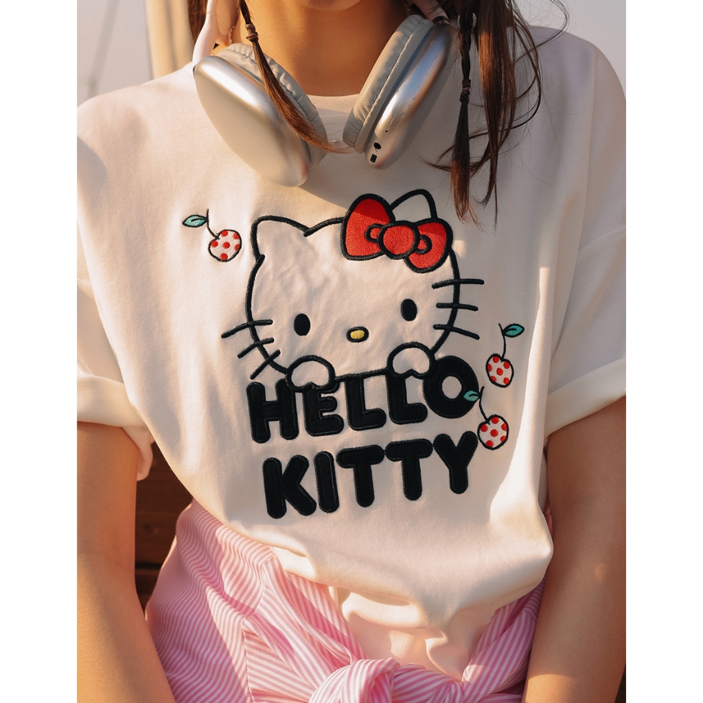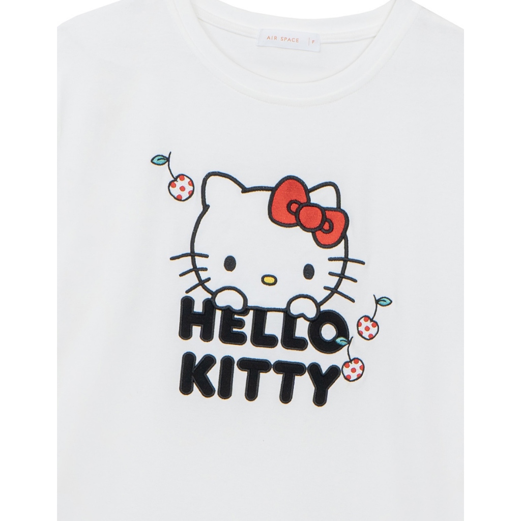AIR SPACE PLUS 【Hello Kitty聯名】刺繡貼布圖案寬版TEE(白) 女裝 現貨 大尺碼 中大尺碼白,FFT-shirtsAIR SPACE