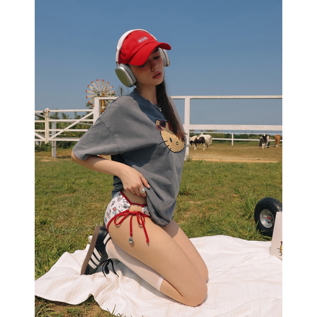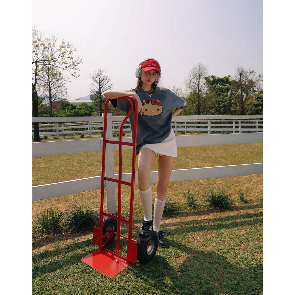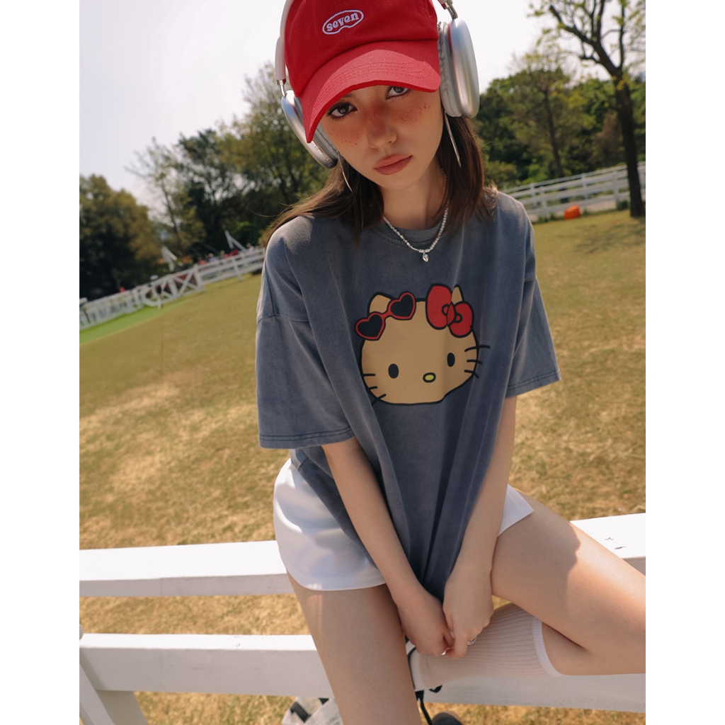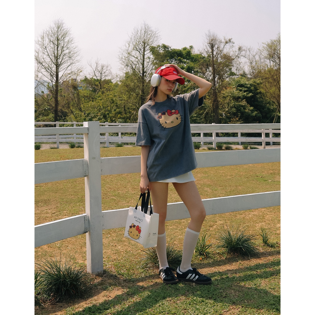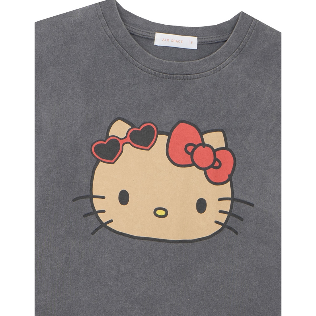AIR SPACE PLUS 【Hello Kitty聯名】古著風寬版TEE(深灰) 女裝 現貨 大尺碼 中大尺碼深灰,FFT-shirtsAIR SPACE