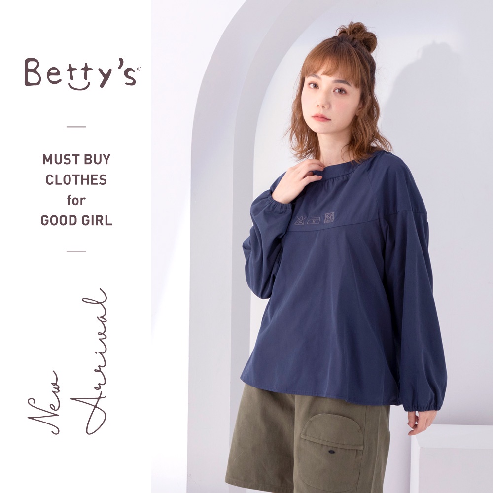 betty’s貝蒂思(05)圓領落肩特色繡圖上衣(深藍)深藍,M|深藍,LT-shirtsbetty’s貝蒂思