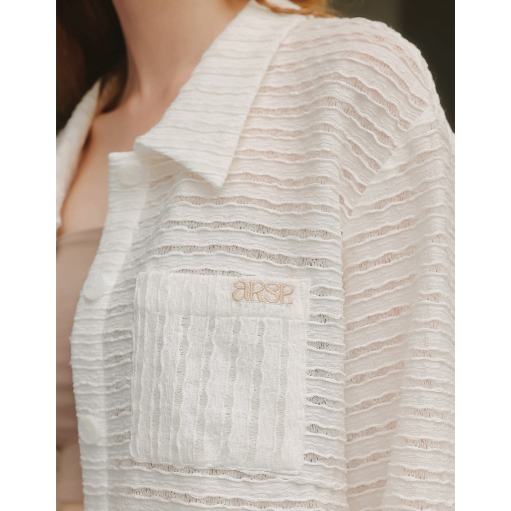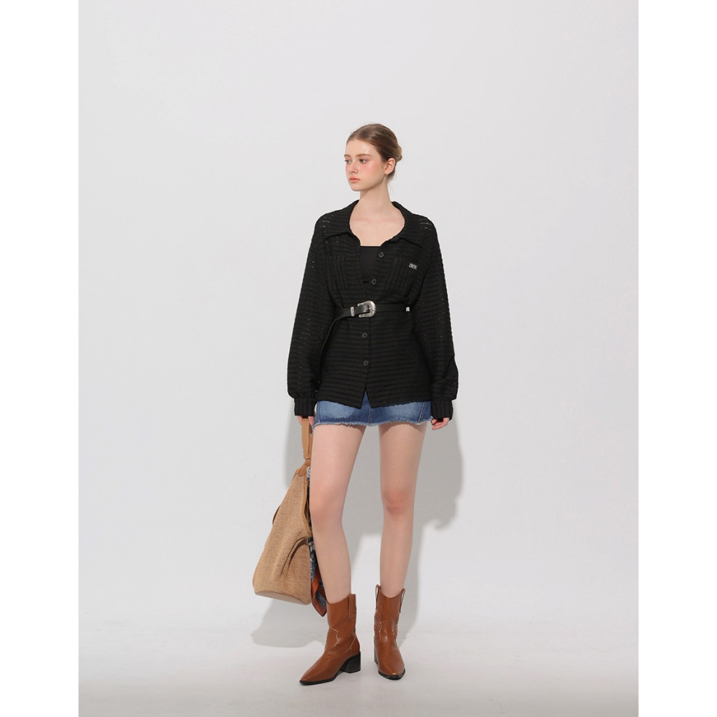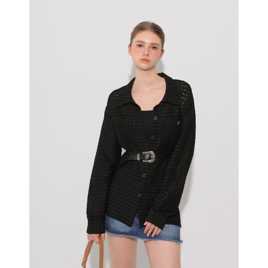 AIR SPACE 品牌LOGO刺繡條紋長袖襯衫(黑/白) 女裝 現貨黑,F|白,FShirts & BlousesAIR SPACE