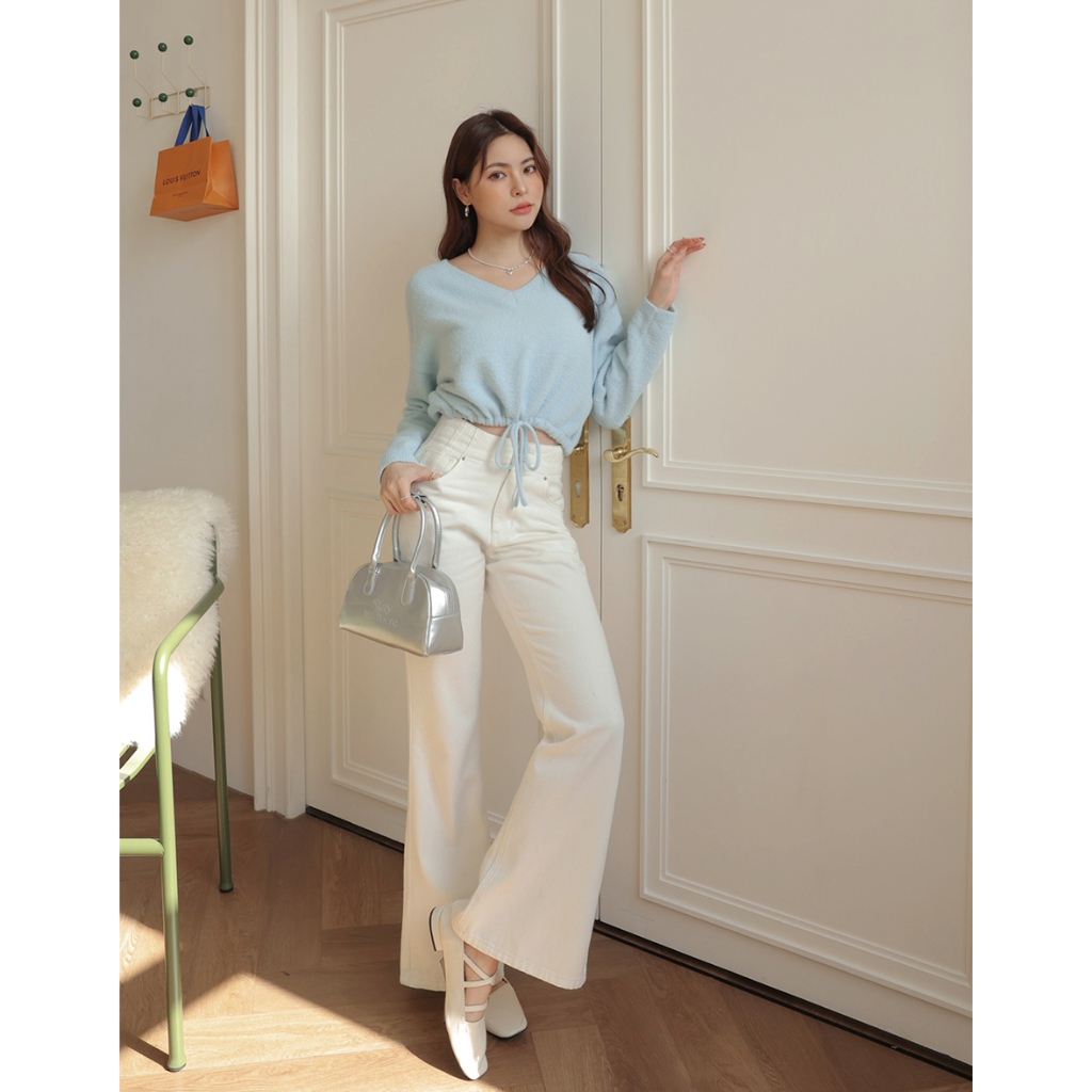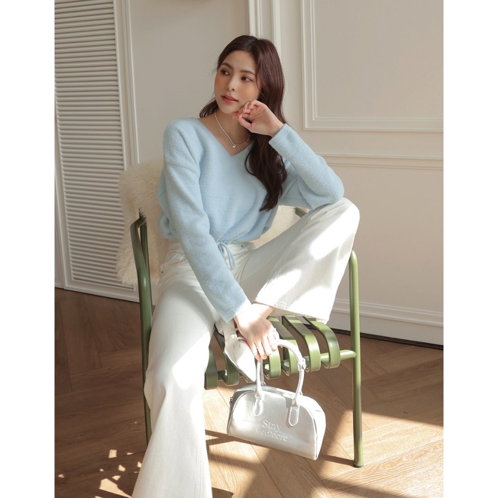 AIR SPACE LADY 奶霜柔暖V領抽繩上衣(白/藍/紫) 女裝 現貨白,S|白,M|藍,S|藍,M|紫,S|紫,MOthersAIR SPACE