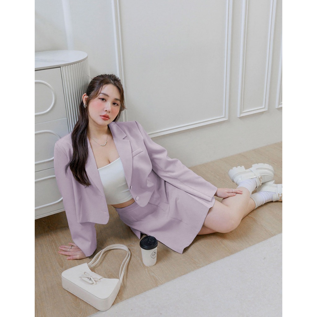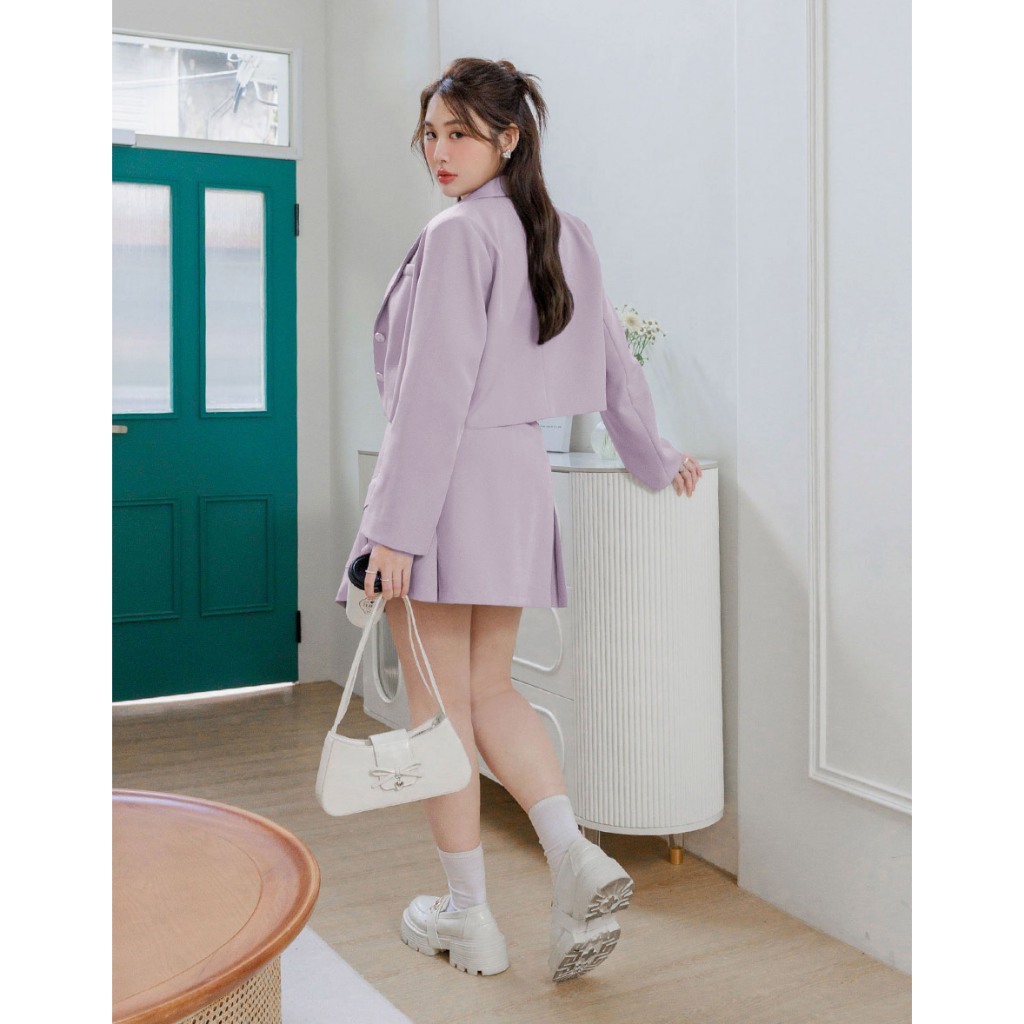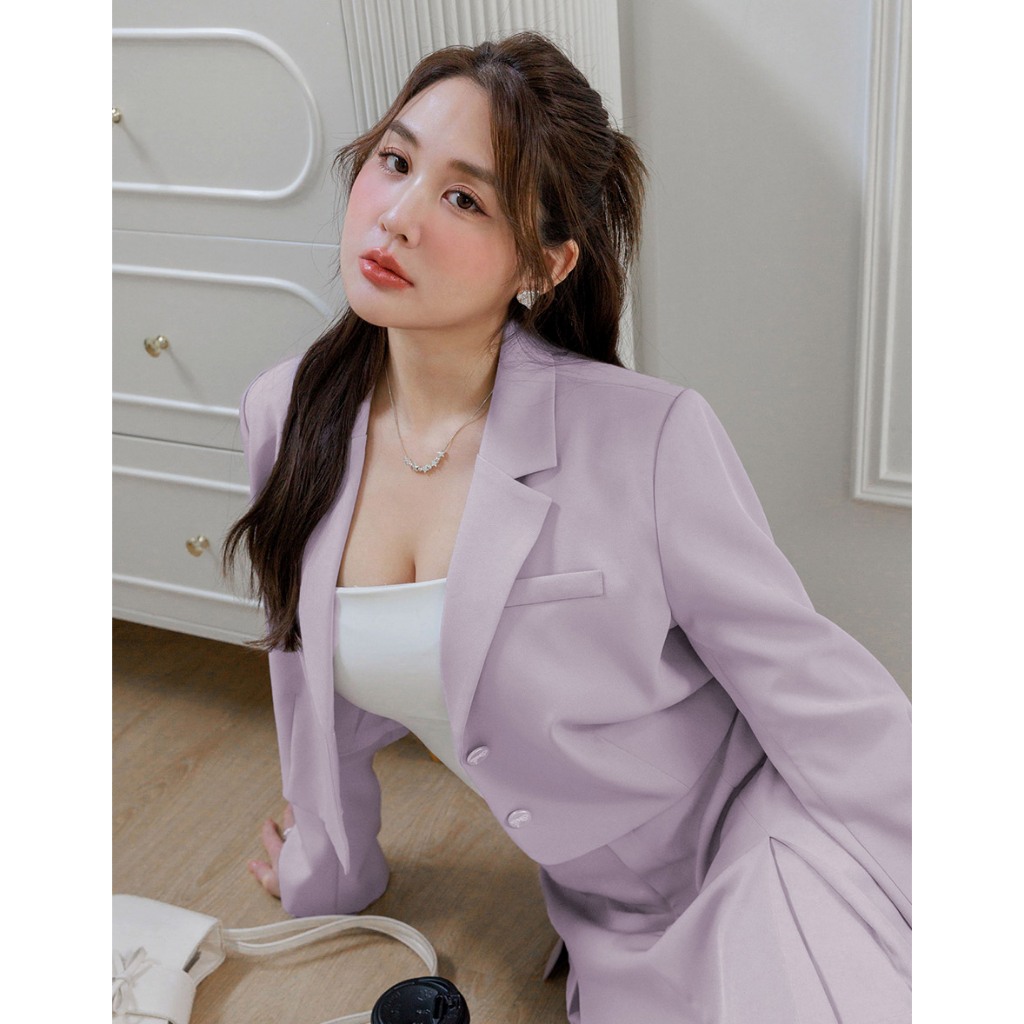 AIR SPACE PLUS 素面短版西裝外套(附墊肩)(卡其/紫) 女裝 現貨 大尺碼 中大尺碼卡其,XL|卡其,2XL|卡其,3XL|紫,XL|紫,2XL|紫,3XLBlazersAIR SPACE