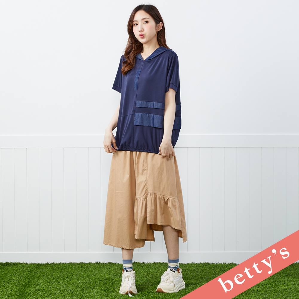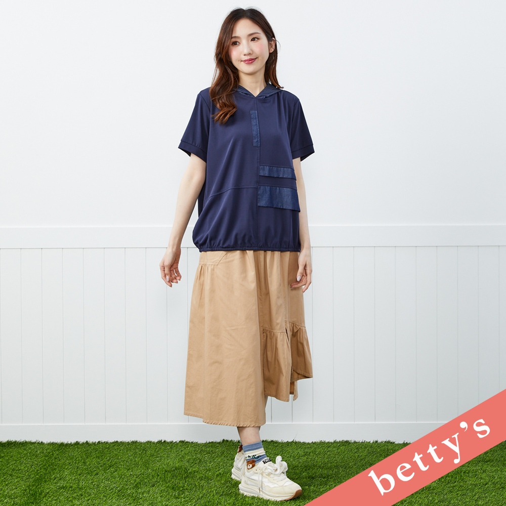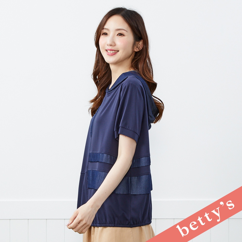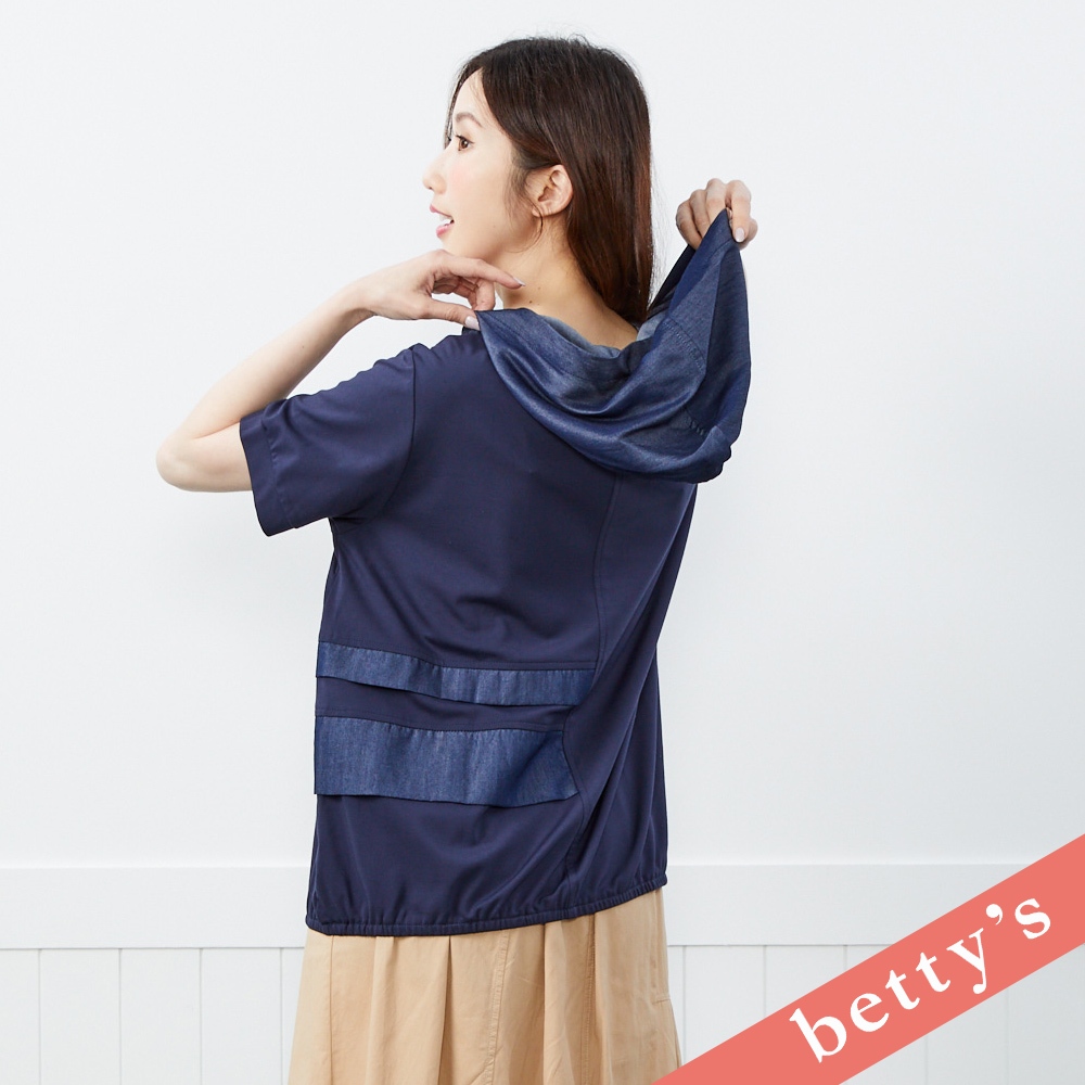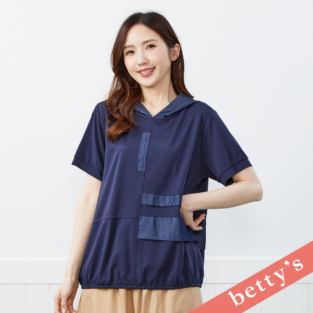 betty’s貝蒂思(41)牛仔拼接連帽短袖T-shirt(深藍)深藍,M|深藍,L|深藍,XLHoodiesbetty’s貝蒂思