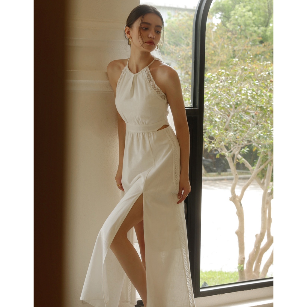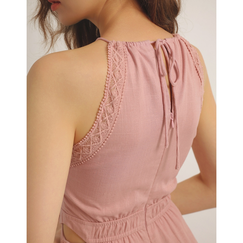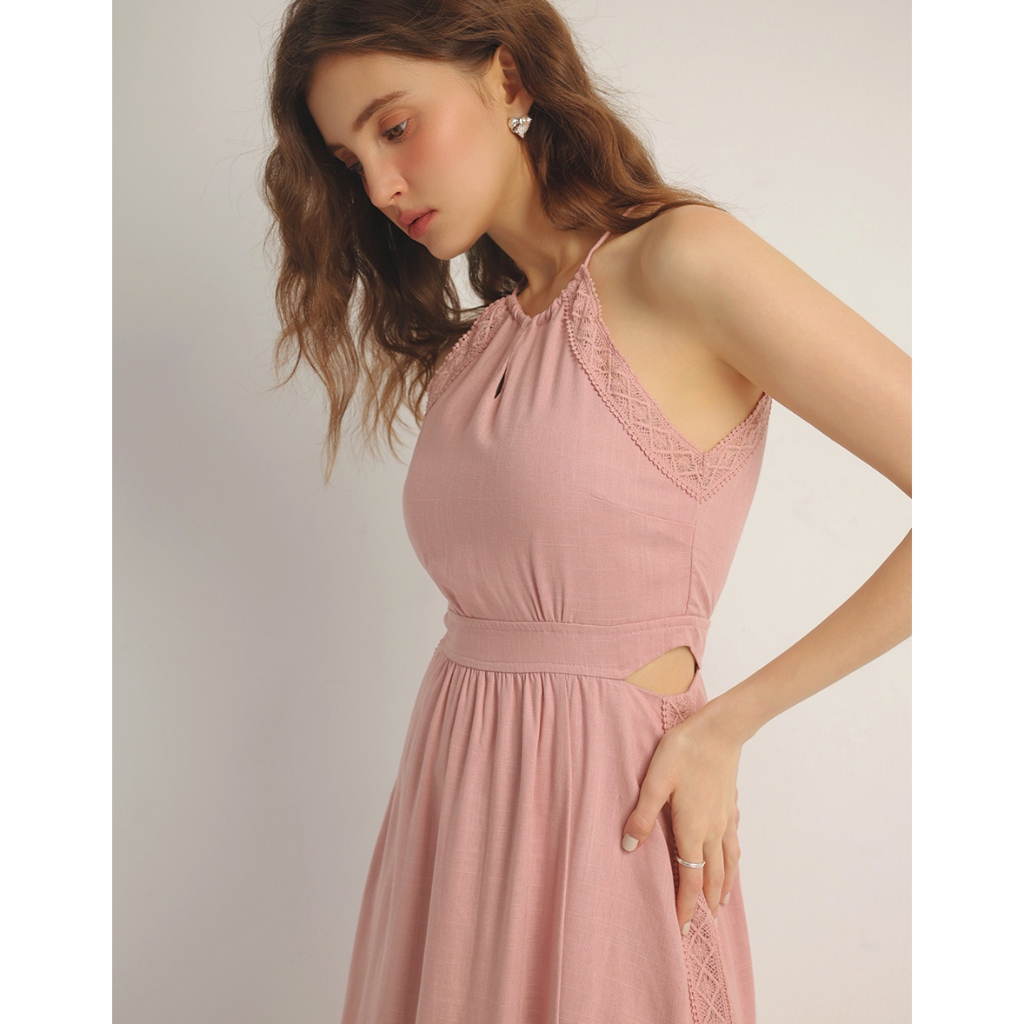 AIR SPACE 側鏤空削肩蕾絲長洋裝(附胸墊)(白/粉紅) 女裝 現貨白,S|白,M|白,L|粉紅,S|粉紅,M|粉紅,LAIR SPACE