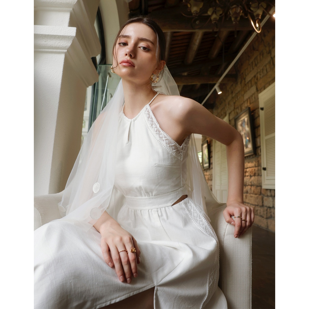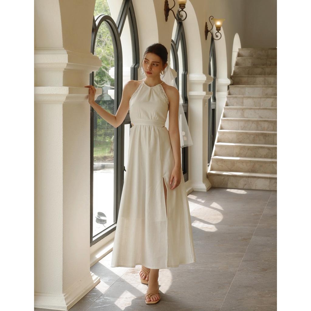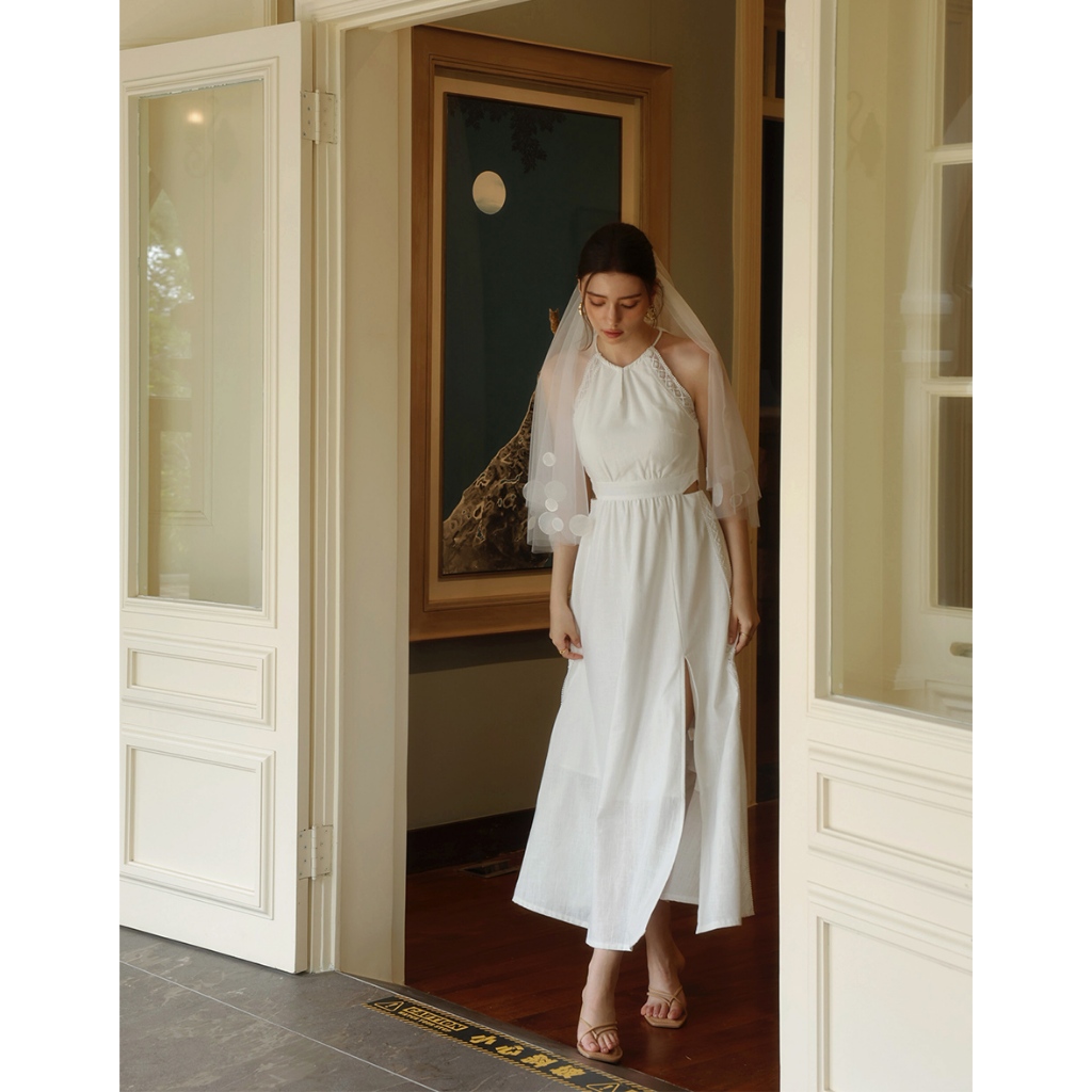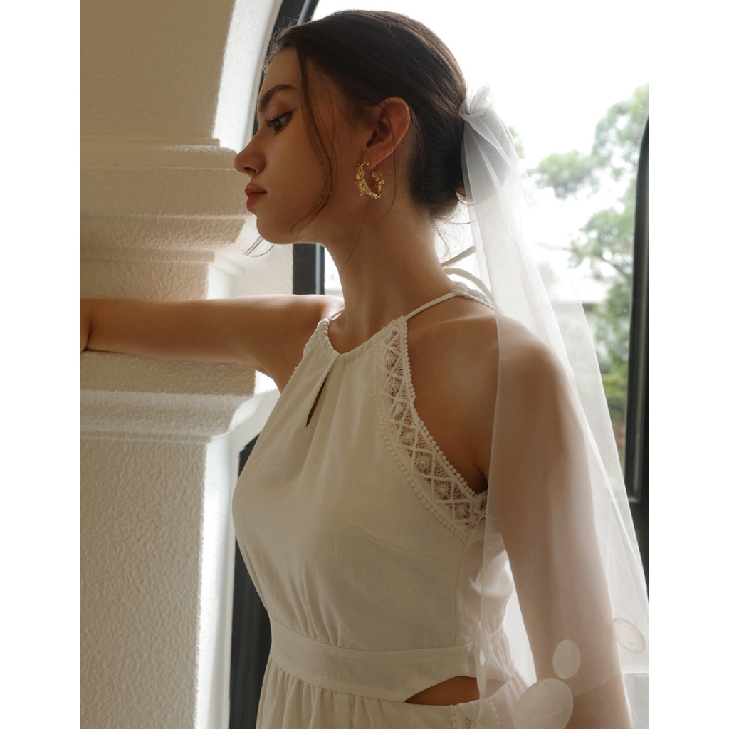 AIR SPACE 側鏤空削肩蕾絲長洋裝(附胸墊)(白/粉紅) 女裝 現貨白,S|白,M|白,L|粉紅,S|粉紅,M|粉紅,LAIR SPACE