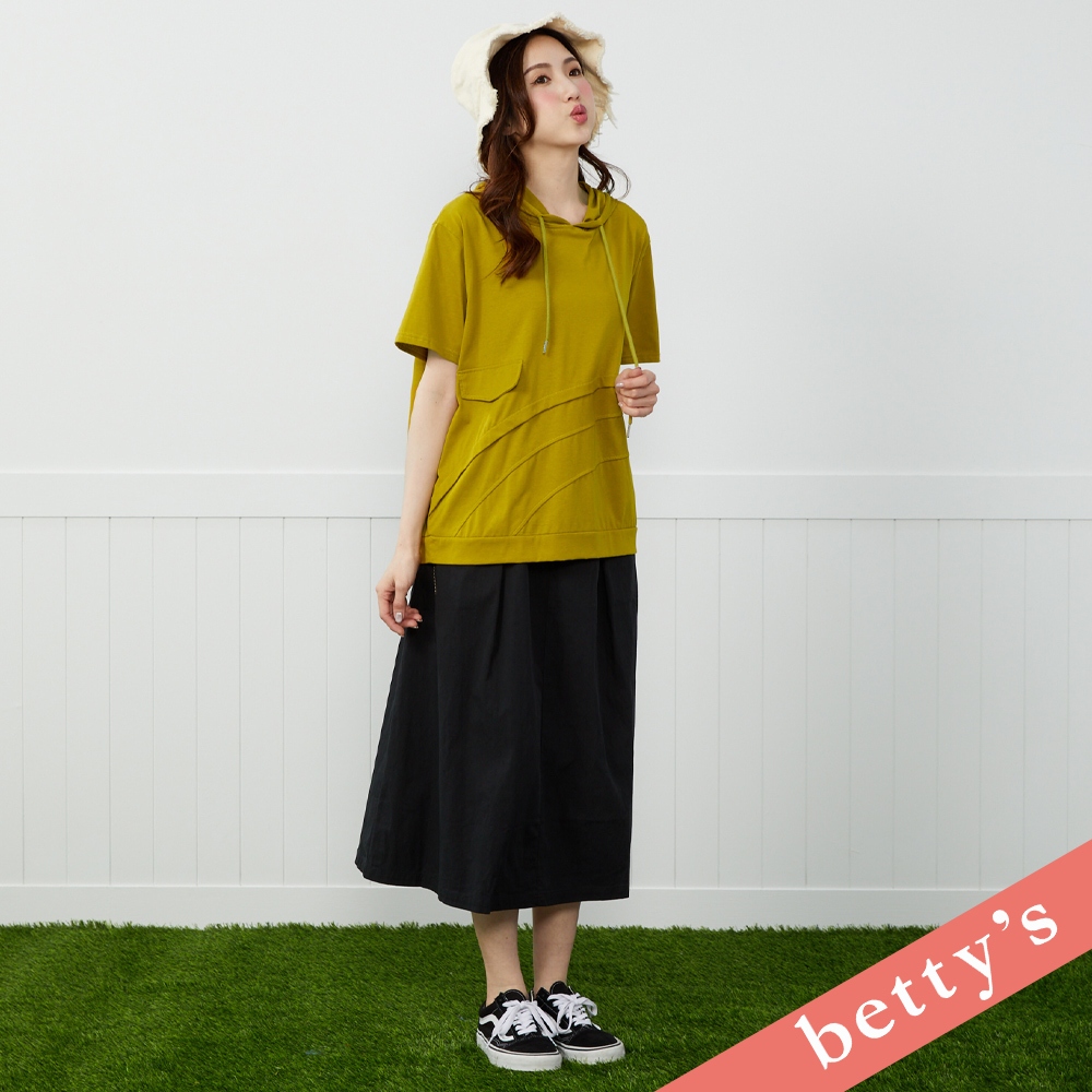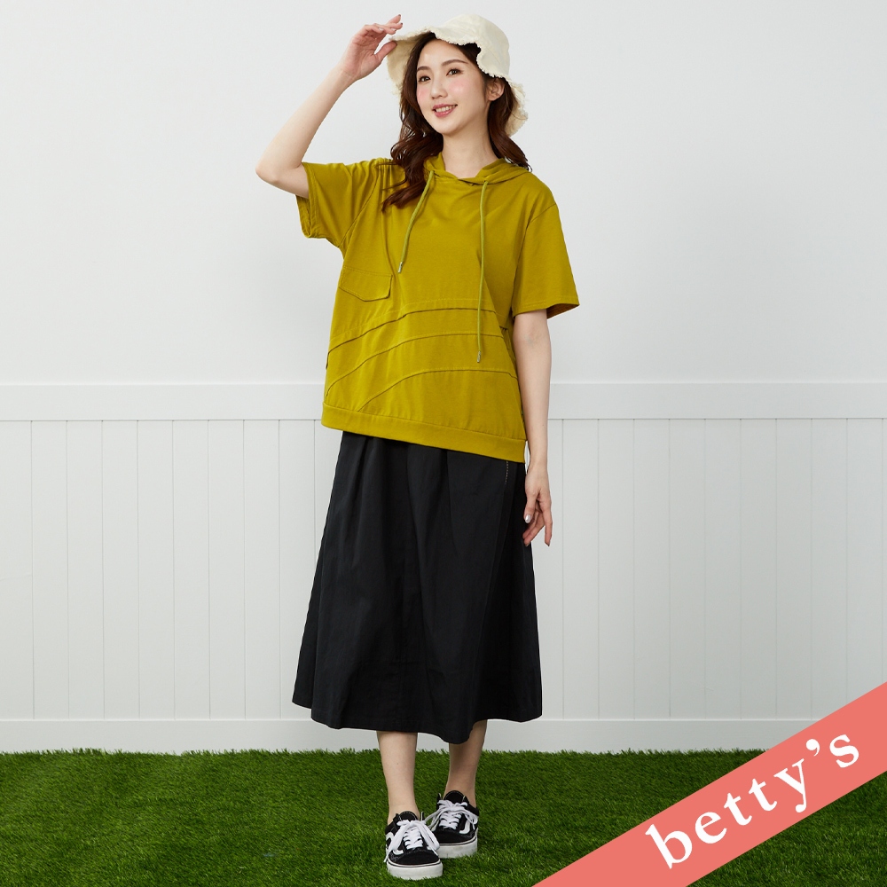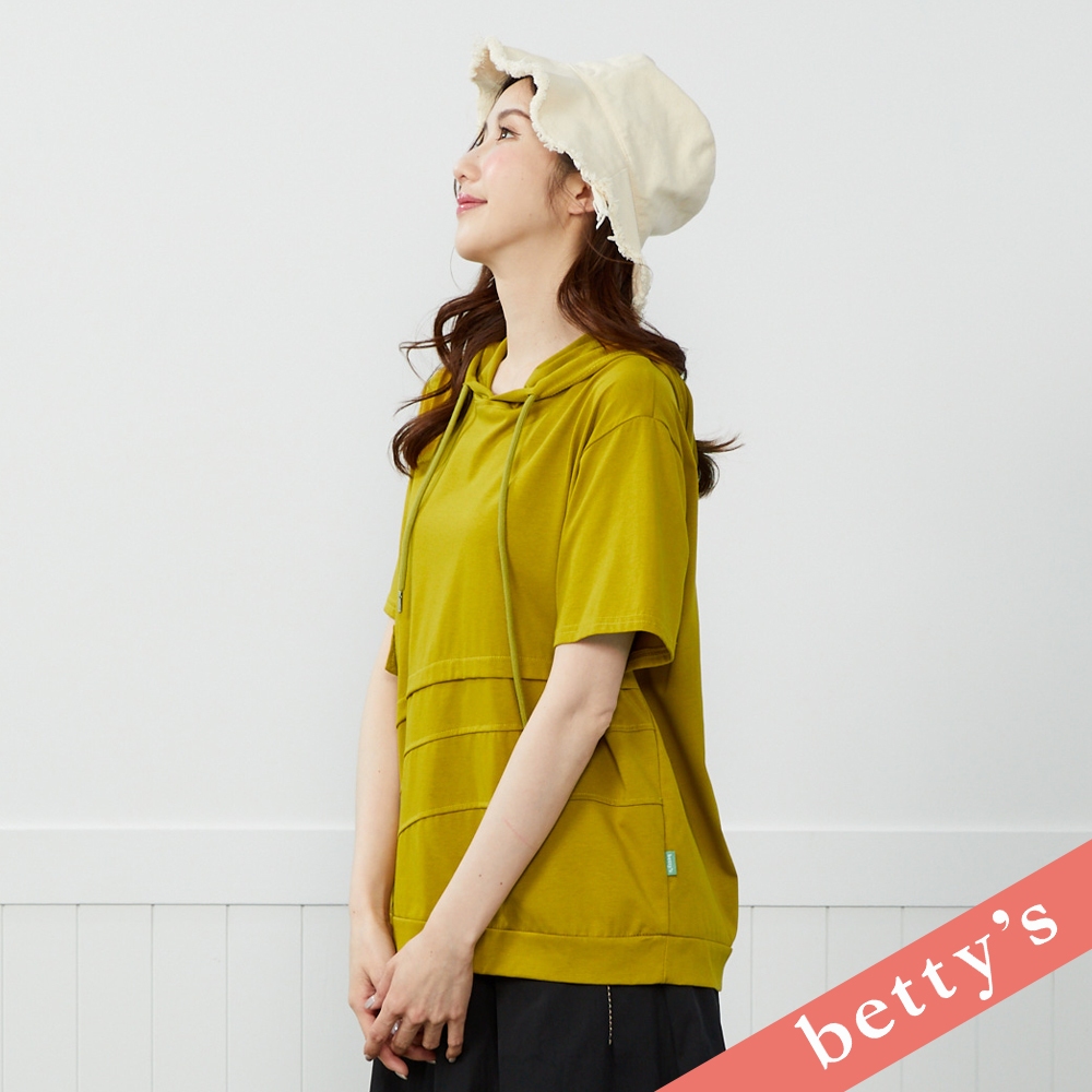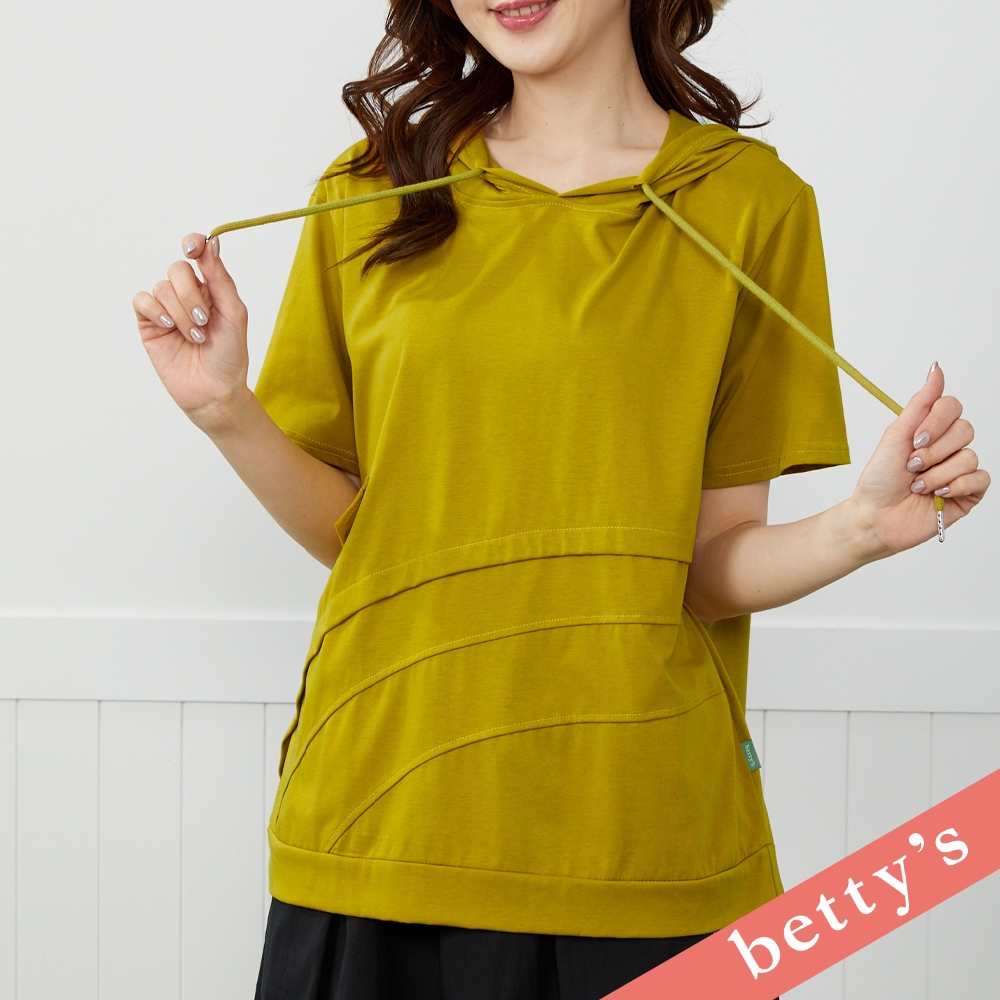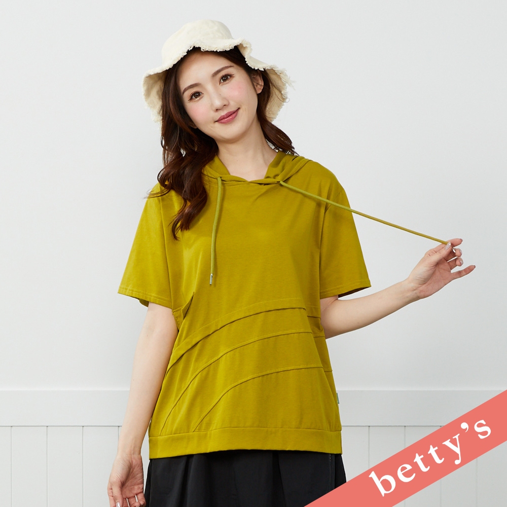 betty’s貝蒂思(41)特色弧形剪裁拼接連帽抽繩T-shirt(黃綠色)黃綠色,L|黃綠色,MHoodiesbetty’s貝蒂思