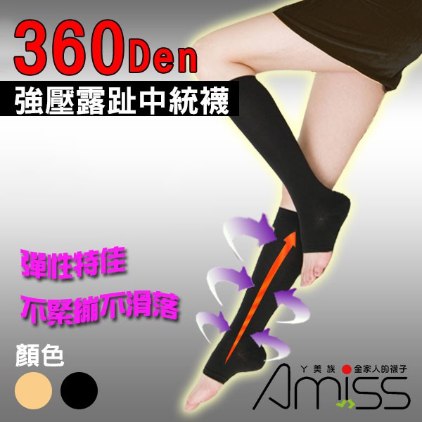 Amiss【機能腿套】360D萊卡露趾壓力中統襪 壓力襪 露趾中統襪 健康中統襪 A605-3黑色-露趾|膚色-露趾SocksAmiss全家人的襪子
