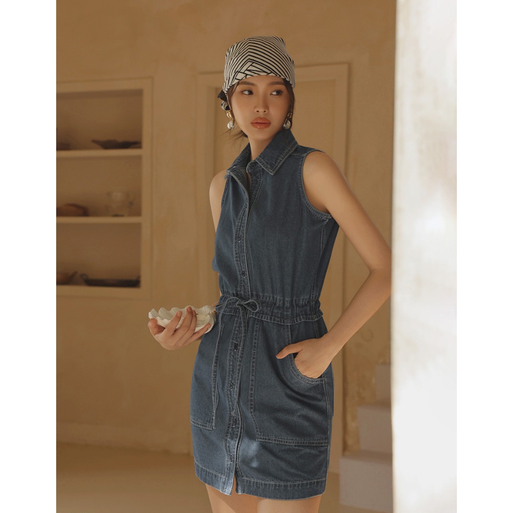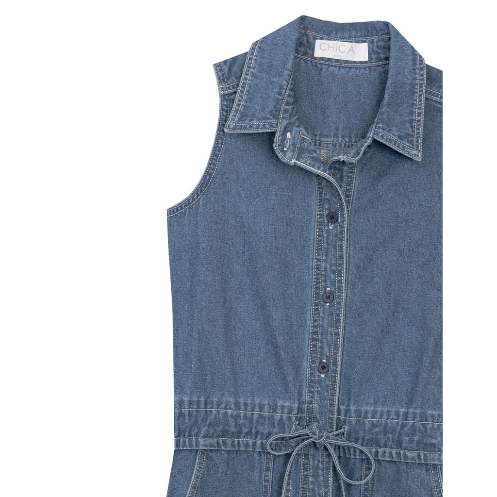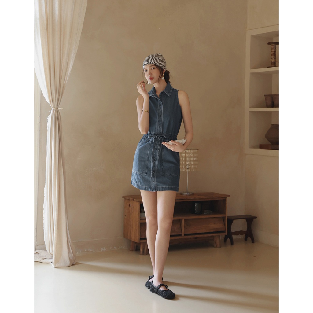 CHIC A SPACE 抽繩收腰無袖牛仔短洋裝(藍) 女裝 現貨藍,S|藍,M|藍,LAIR SPACE