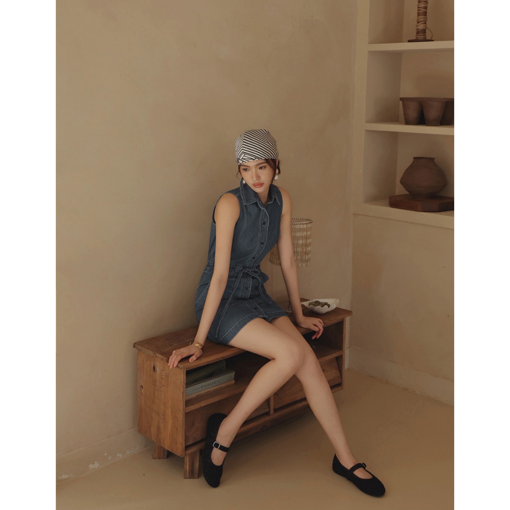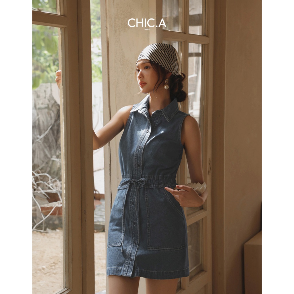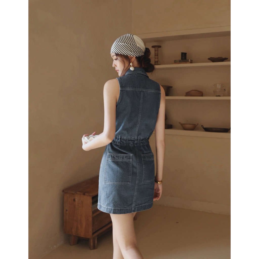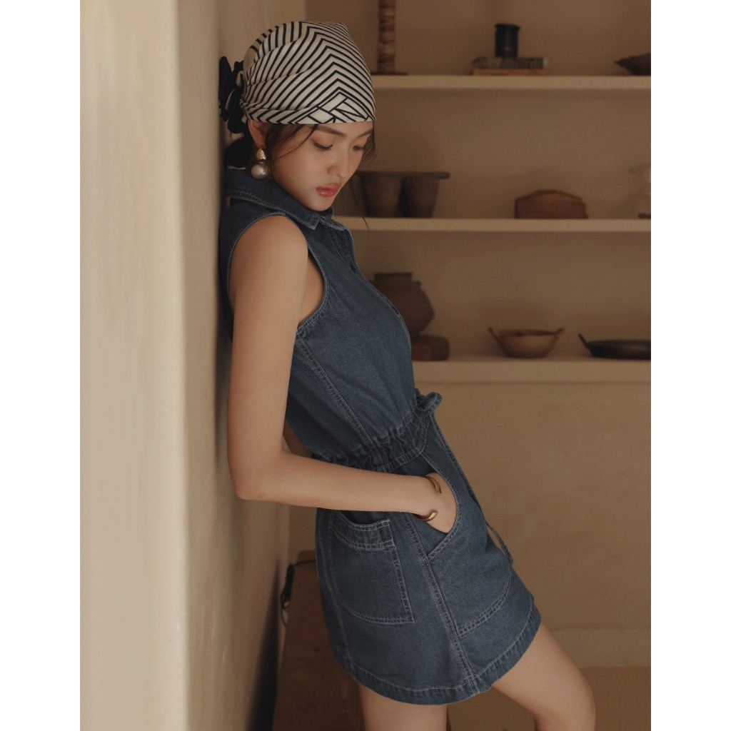 CHIC A SPACE 抽繩收腰無袖牛仔短洋裝(藍) 女裝 現貨藍,S|藍,M|藍,LAIR SPACE