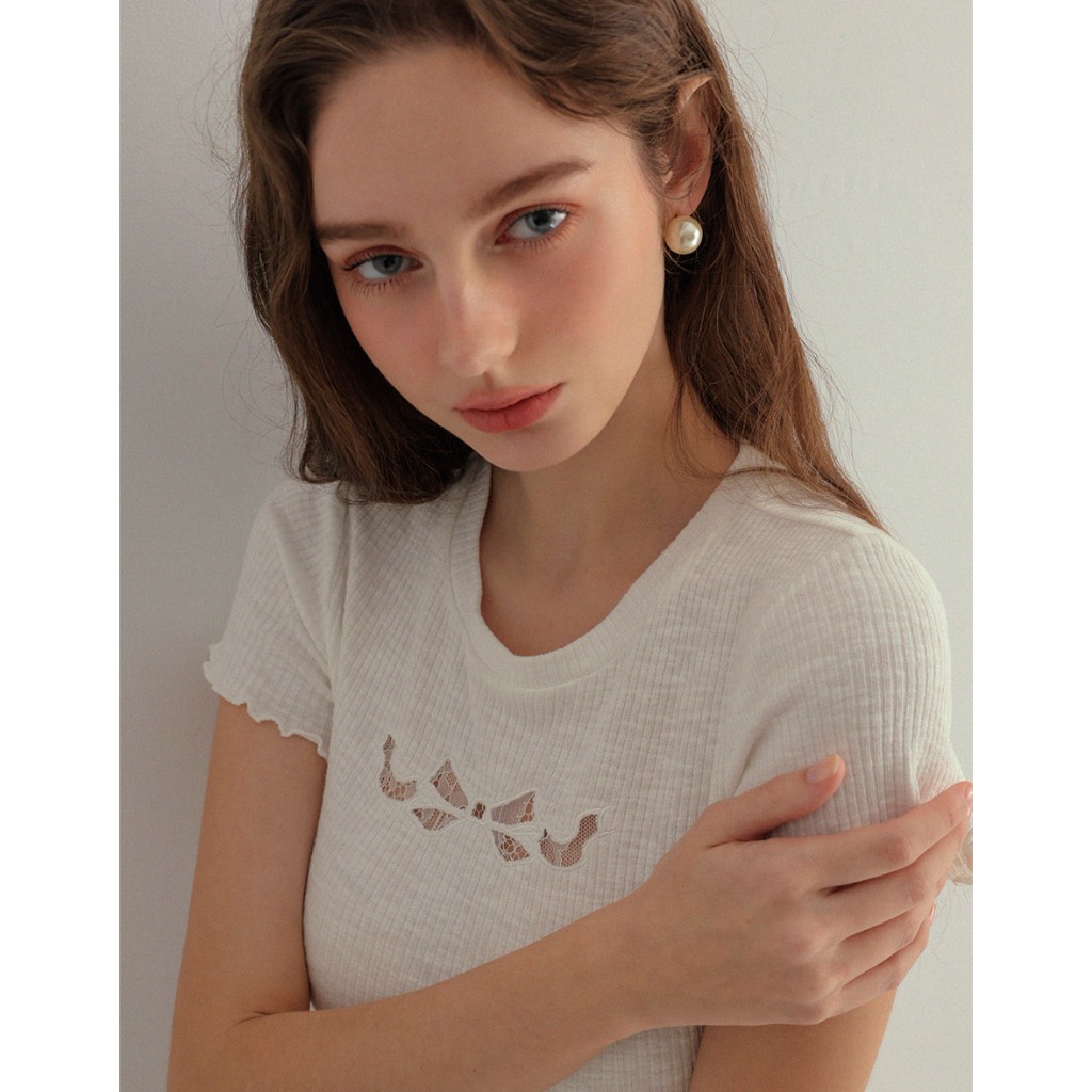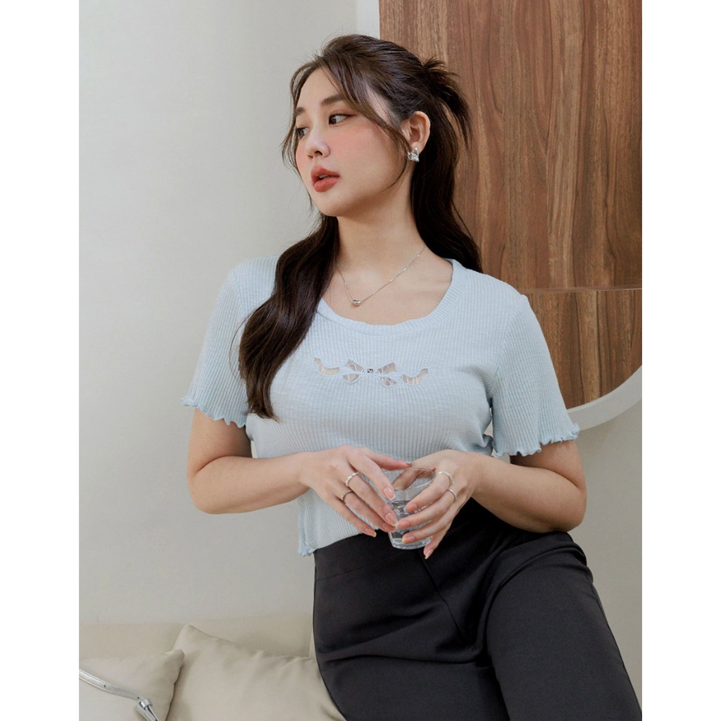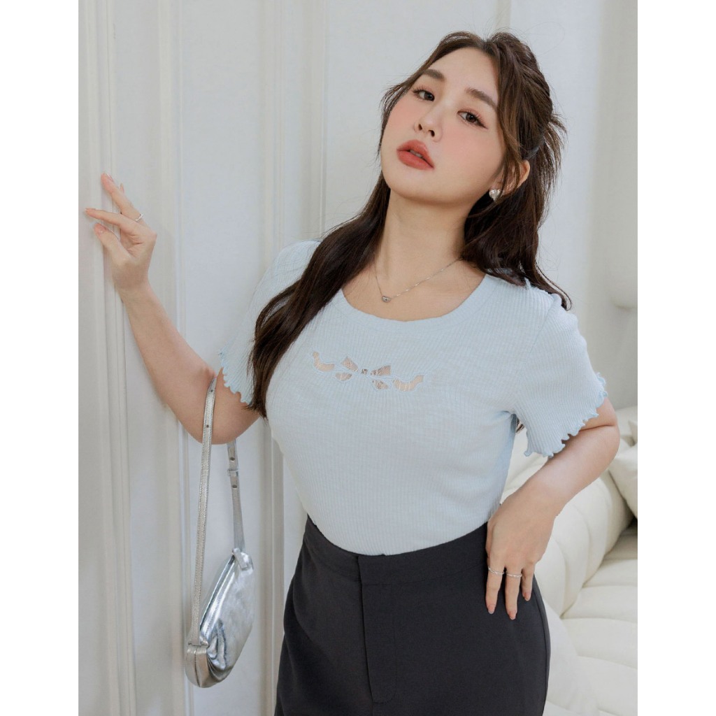 AIR SPACE PLUS 蕾絲蝴蝶結透膚木耳捲上衣(白/藍) 女裝 現貨 大尺碼 中大尺碼白,XL|白,2XL|白,3XL|藍,XL|藍,2XL|藍,3XLOthersAIR SPACE