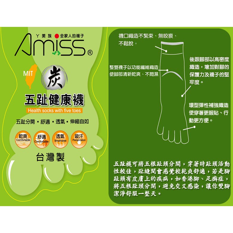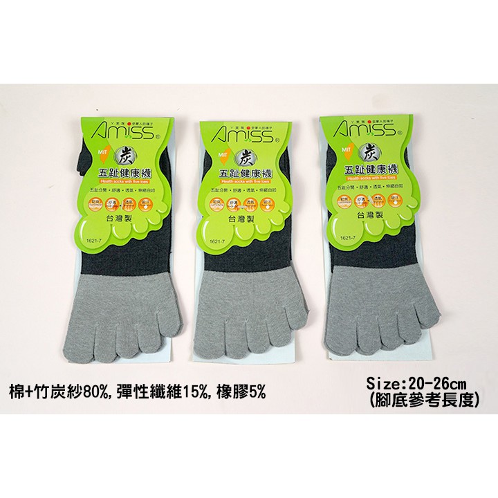 【Amiss】竹碳元素‧細針五趾3/4休閒襪/五趾襪/五指襪/五趾長襪 A621-7黑色-1雙|灰色-1雙|白色-1雙SocksAmiss全家人的襪子