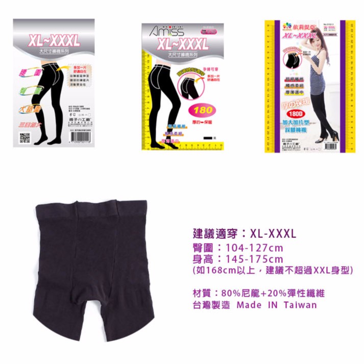 【Amiss】XL-3XL臀部加片型‧厚天鵝絨大尺碼加大保暖褲襪(3款)XL-3XL褲襪黑|XL-3XL九分黑|XL-3XL踩腳黑PantyhoseAmiss全家人的襪子