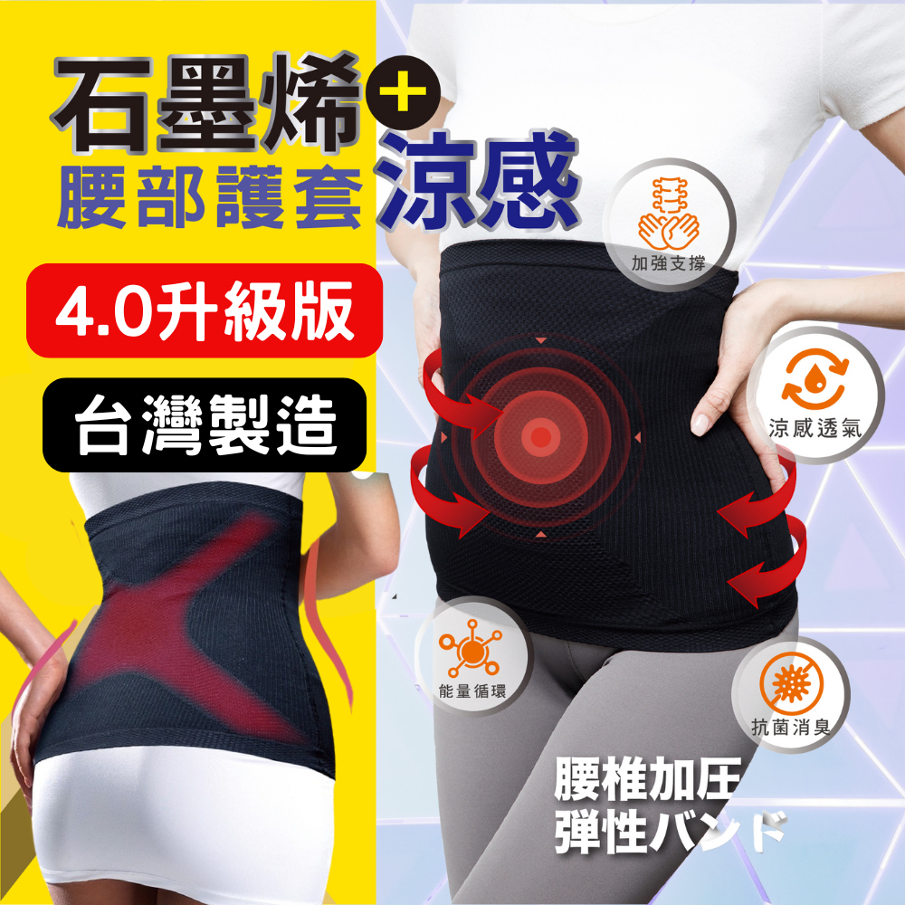 【AMISS】台灣製石墨烯護腰套 涼感4.0升級版 腰部護套 M-2XL可穿護腰套/黑色(M-2XL)ShapewearAmiss全家人的襪子