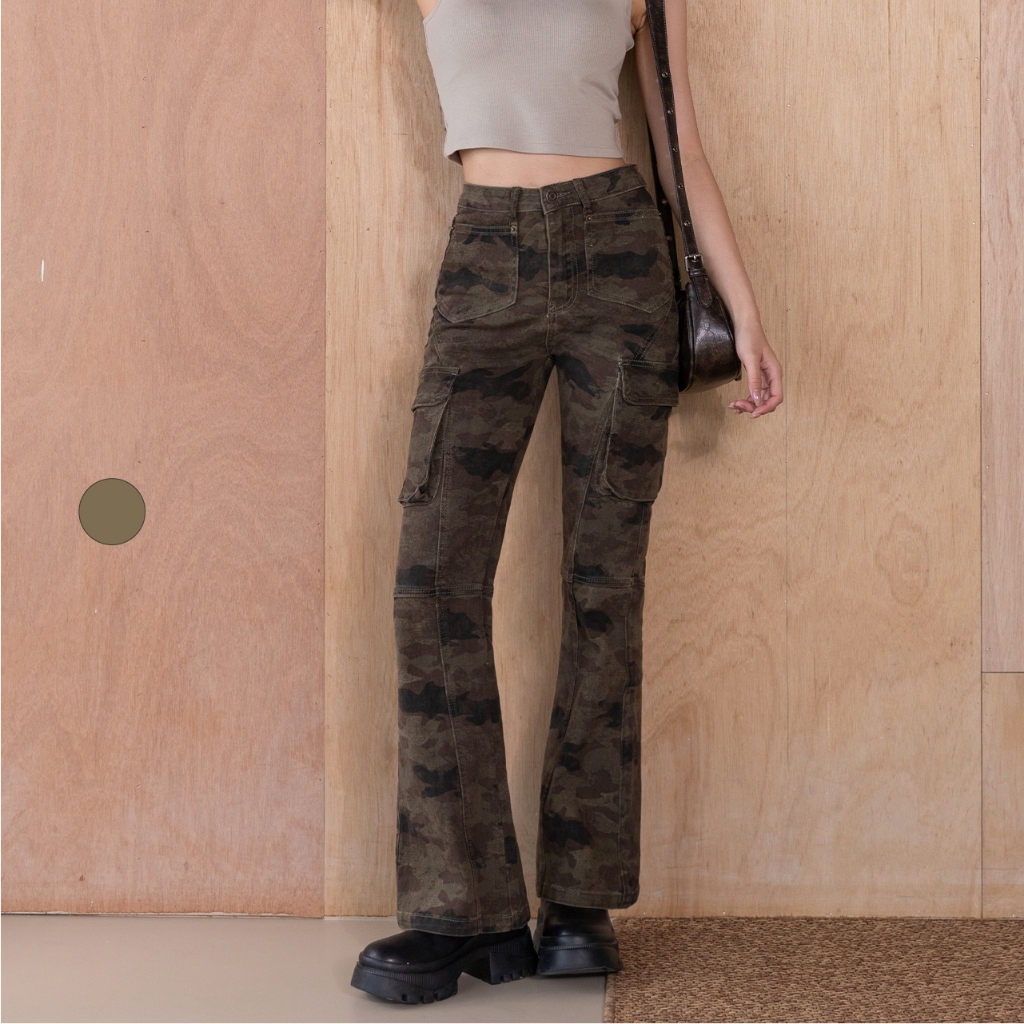 50% Fifty Percent|滿版迷彩喇叭褲|02583751002軍綠,XS|軍綠,S|軍綠,M|軍綠,L|軍綠,XLPants50 PERCENT 官方旗艦店