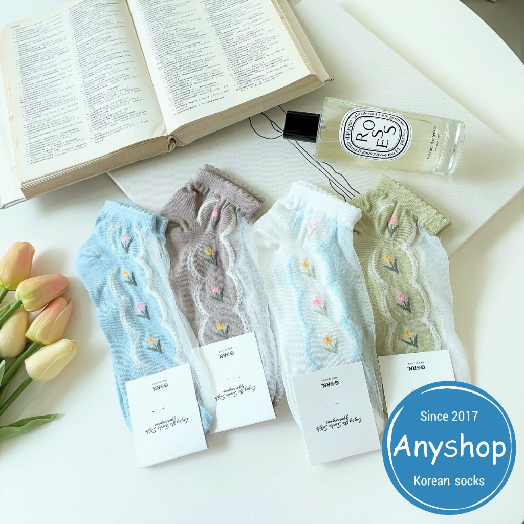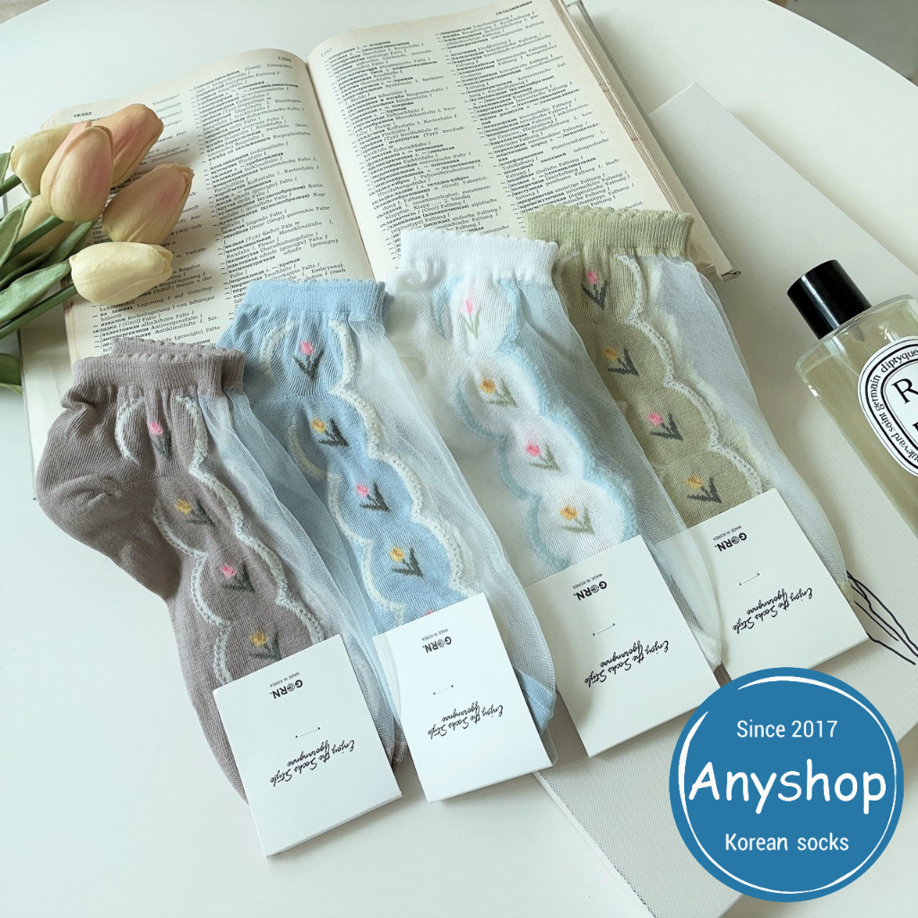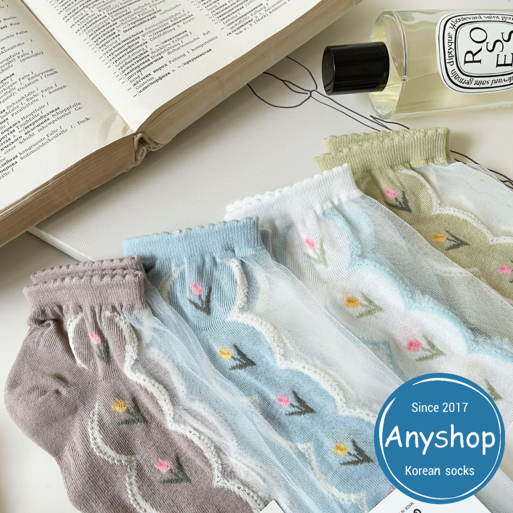 Anyshop韓國襪 透膚襪 短襪 鬱金香透膚襪 韓國製造 透膚紗襪 植物襪 夏季襪款夏季單品 小花花 透膚花 N415藍色【N415】|白色【N415】|綠色【N415】|可可色【N415】SocksAnyshop韓國襪專賣 | 零售 | 團購 | 批發