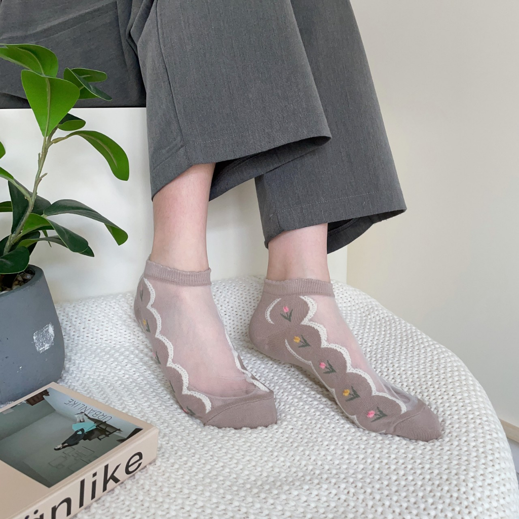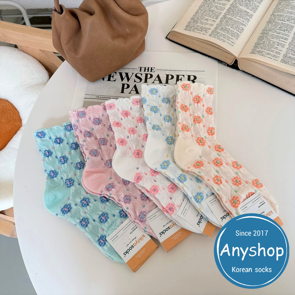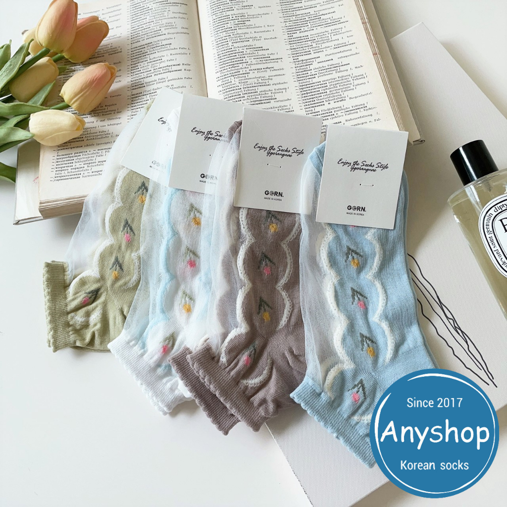 Anyshop韓國襪 透膚襪 短襪 鬱金香透膚襪 韓國製造 透膚紗襪 植物襪 夏季襪款夏季單品 小花花 透膚花 N415藍色【N415】|白色【N415】|綠色【N415】|可可色【N415】SocksAnyshop韓國襪專賣 | 零售 | 團購 | 批發