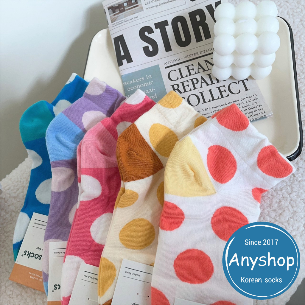 Anyshop韓國襪 彩色點點短襪 女孩襪子 點點襪 純棉襪 韓襪 韓國襪 韓國襪子 短襪 襪子 女襪23702藍色底【23702】|紫色底【23702】|粉色底【23702】|米白色(黃點)【23702】|白色底(紅點)【23702】SocksAnyshop韓國襪專賣 | 零售 | 團購 | 批發