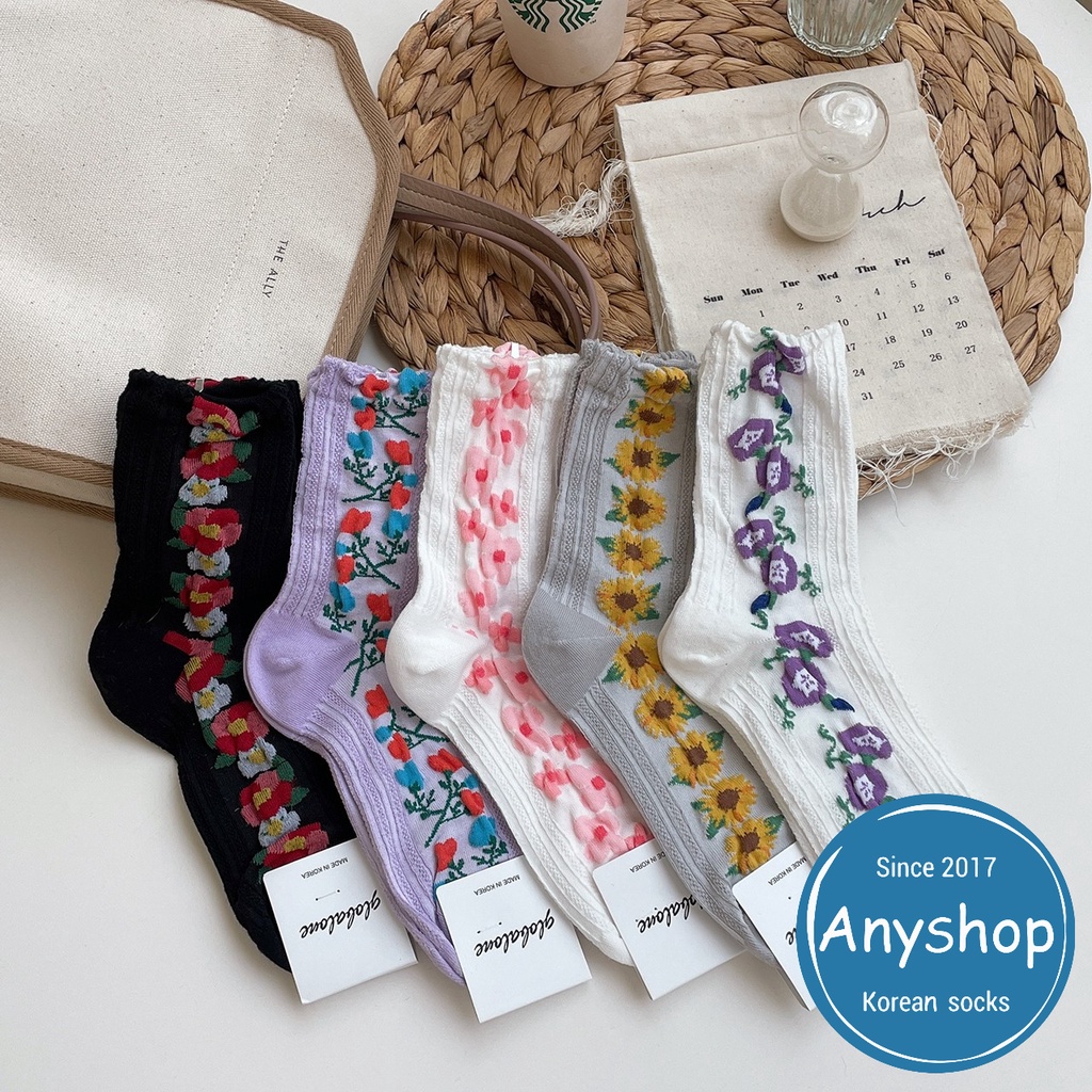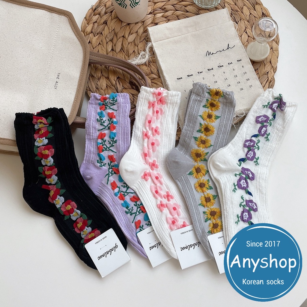 Anyshop韓國襪 🇰🇷 透膚襪 韓國製造 透膚襪 素色襪 氣質款 女孩必備 花襪 小花 植物 13302紫色底【13302】|黑色底【13302】|白色底粉花【13302】|灰色底【13302】|白色底紫花【13302】SocksAnyshop韓國襪專賣 | 零售 | 團購 | 批發