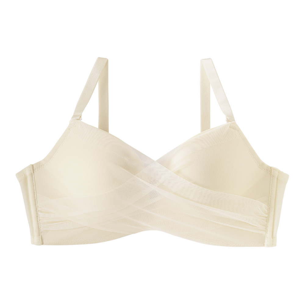 [單品內衣]薄紗層疊無鋼圈超盛內衣-米白色-1102114-OW
