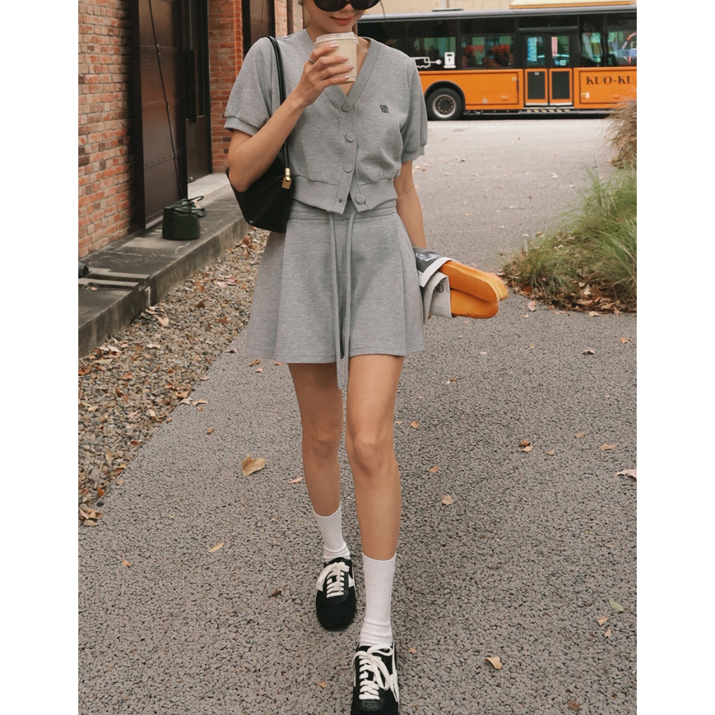 AIR SPACE LADY 棉質抽繩百褶短褲(白/花灰) 女裝 現貨白,S|白,M|白,L|花灰,S|花灰,M|花灰,LShortsAIR SPACE