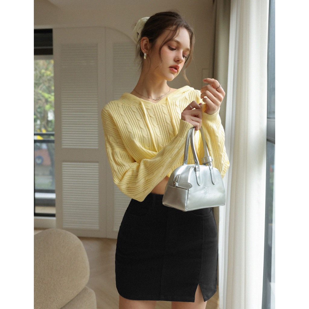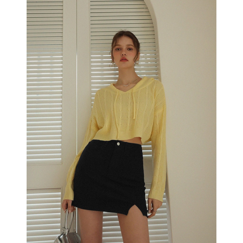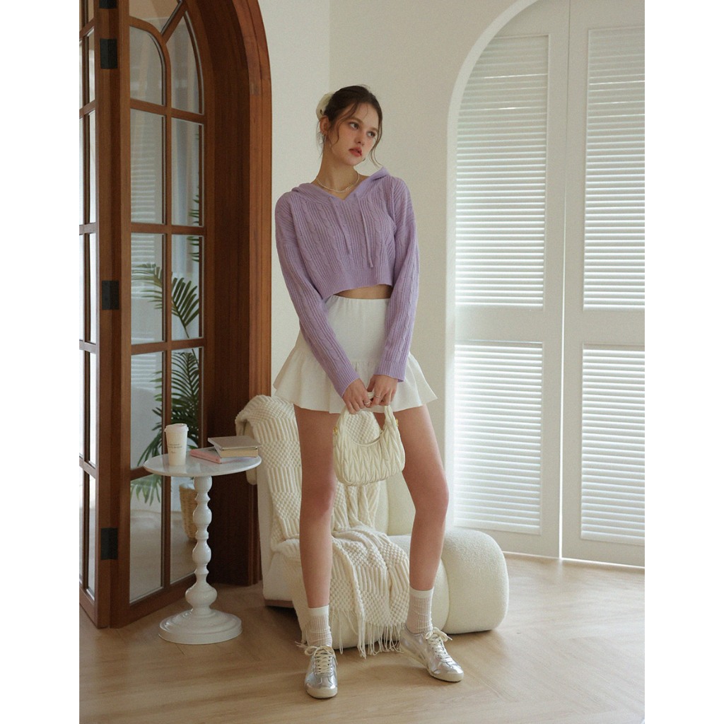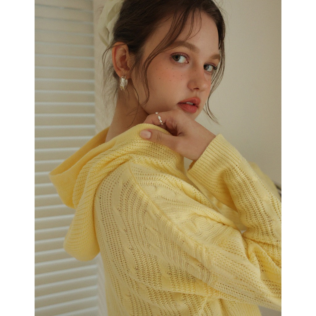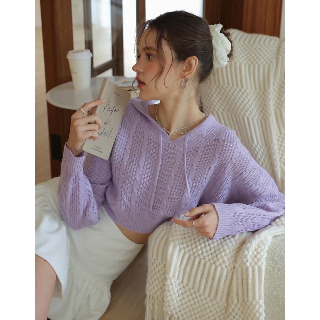 AIR SPACE 連帽抽繩麻花針織上衣(淺黃/淺紫) 女裝 現貨淺黃,S|淺黃,M|淺紫,S|淺紫,MAIR SPACE