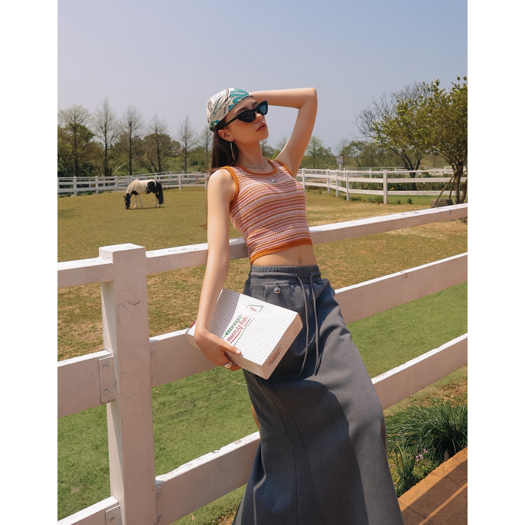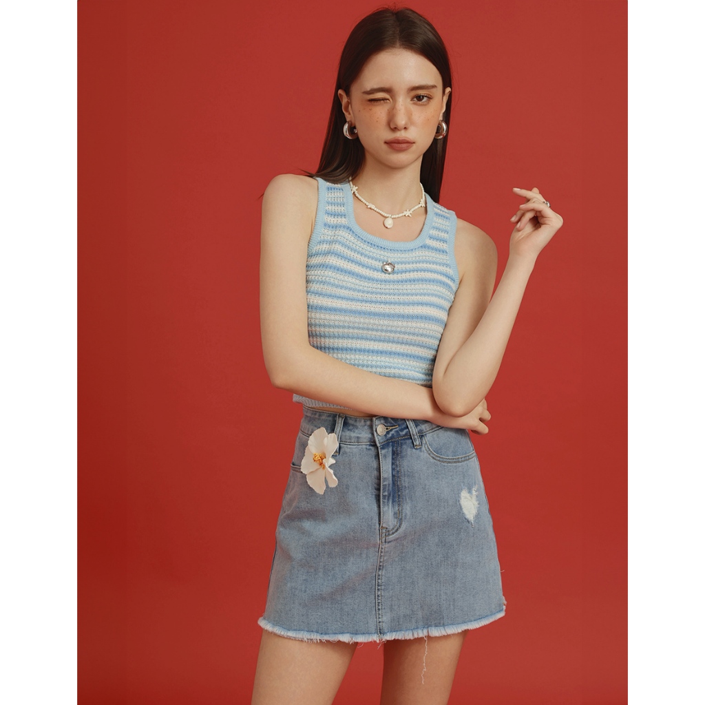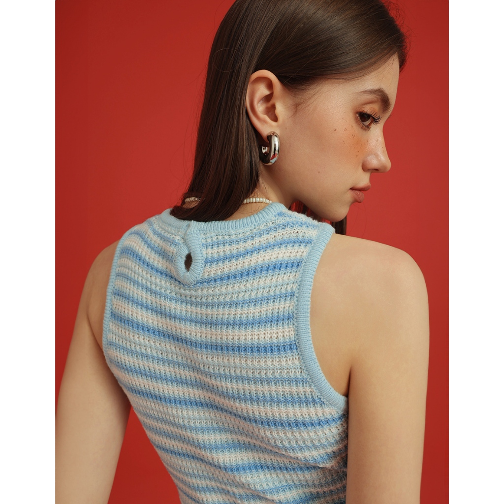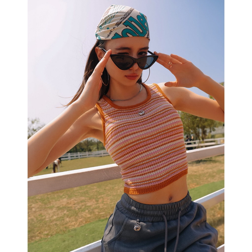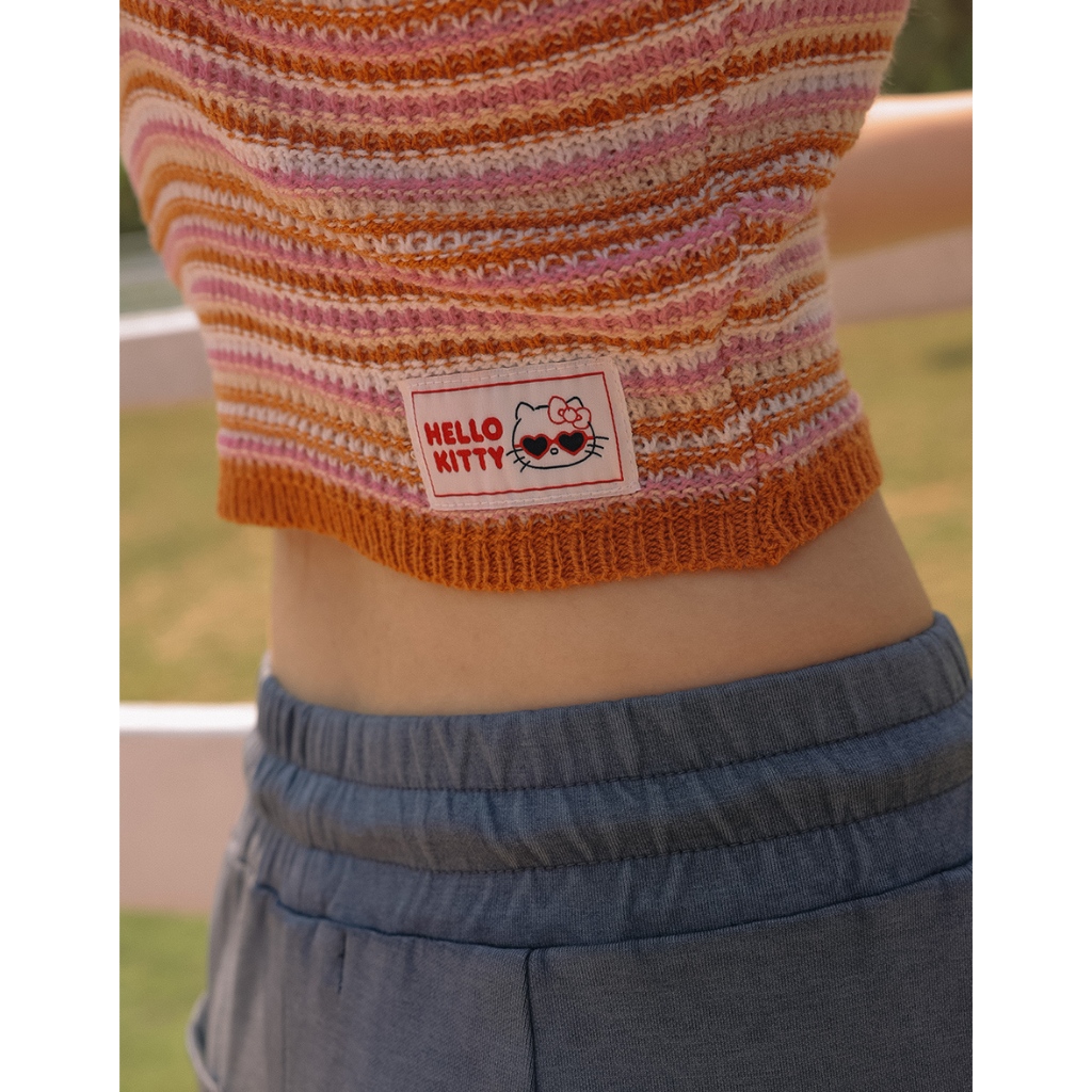 AIR SPACE 【Hello Kitty聯名】造型墜飾多彩條紋針織背心(藍/粉紅) 女裝 現貨藍,S|藍,M|粉紅,S|粉紅,MAIR SPACE