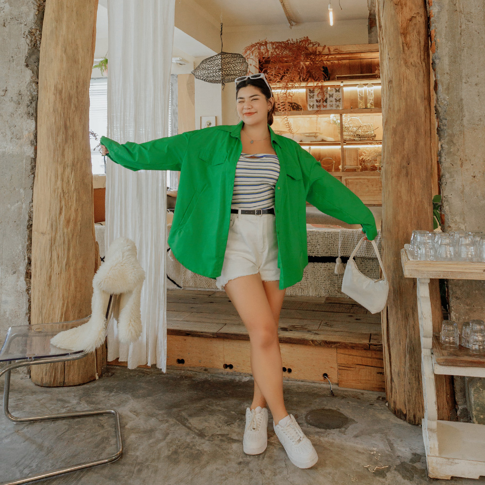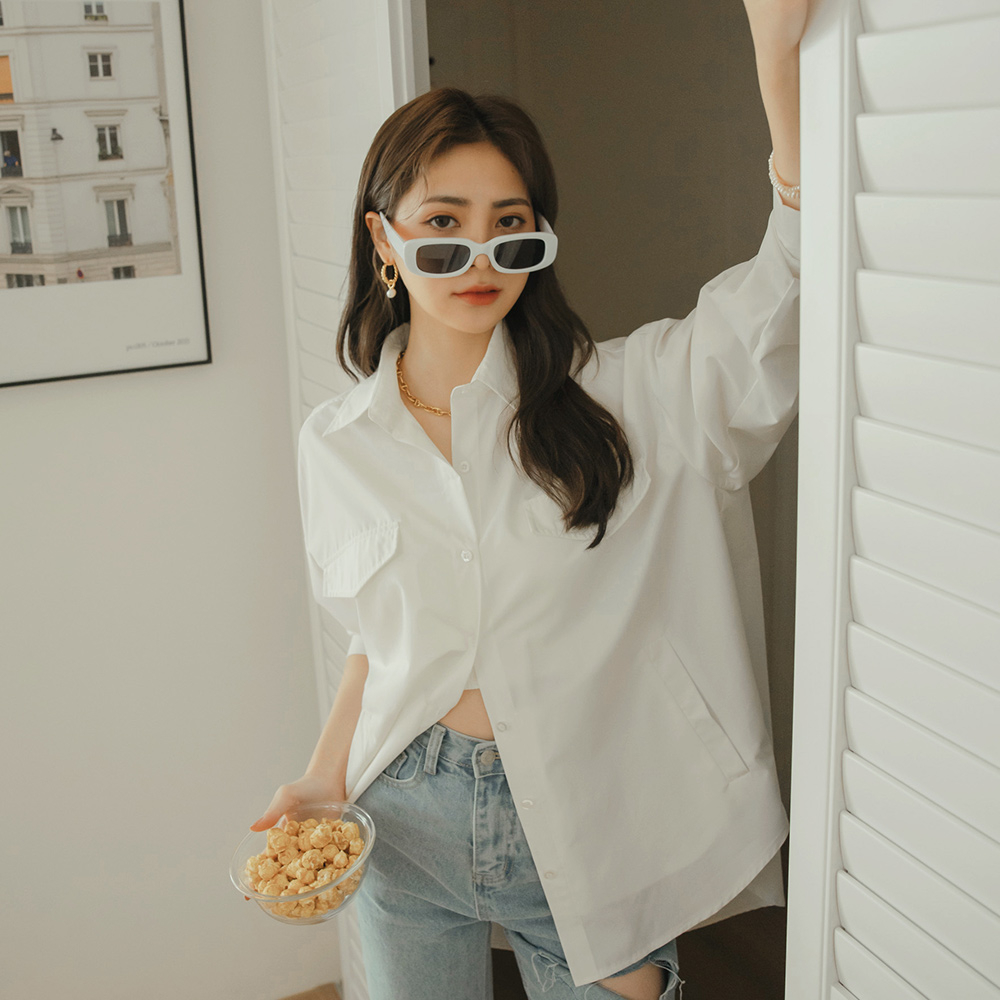 AIR SPACE PLUS 不易皺寬鬆長版襯衫(白/綠/灰) 女裝 現貨 大尺碼 中大尺碼