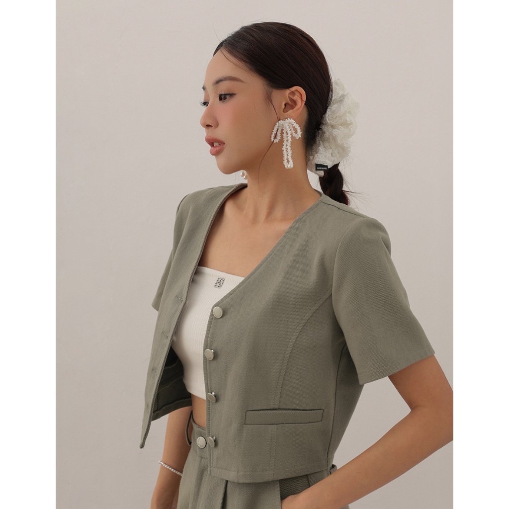 AIR SPACE PLUS V領排扣短版上衣(白/軍綠) 女裝 現貨 大尺碼 中大尺碼白,XL|白,2XL|白,3XL|軍綠,XL|軍綠,2XL|軍綠,3XLOthersAIR SPACE