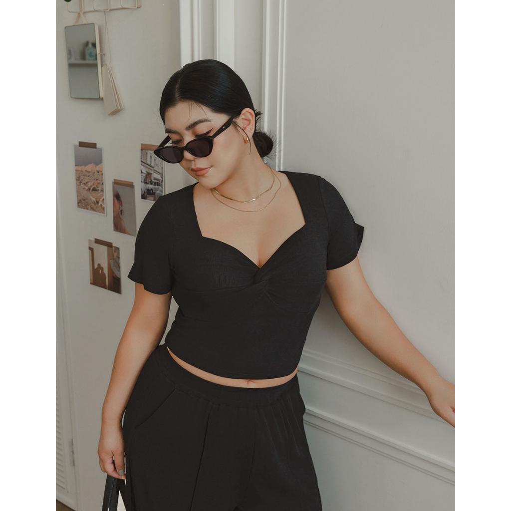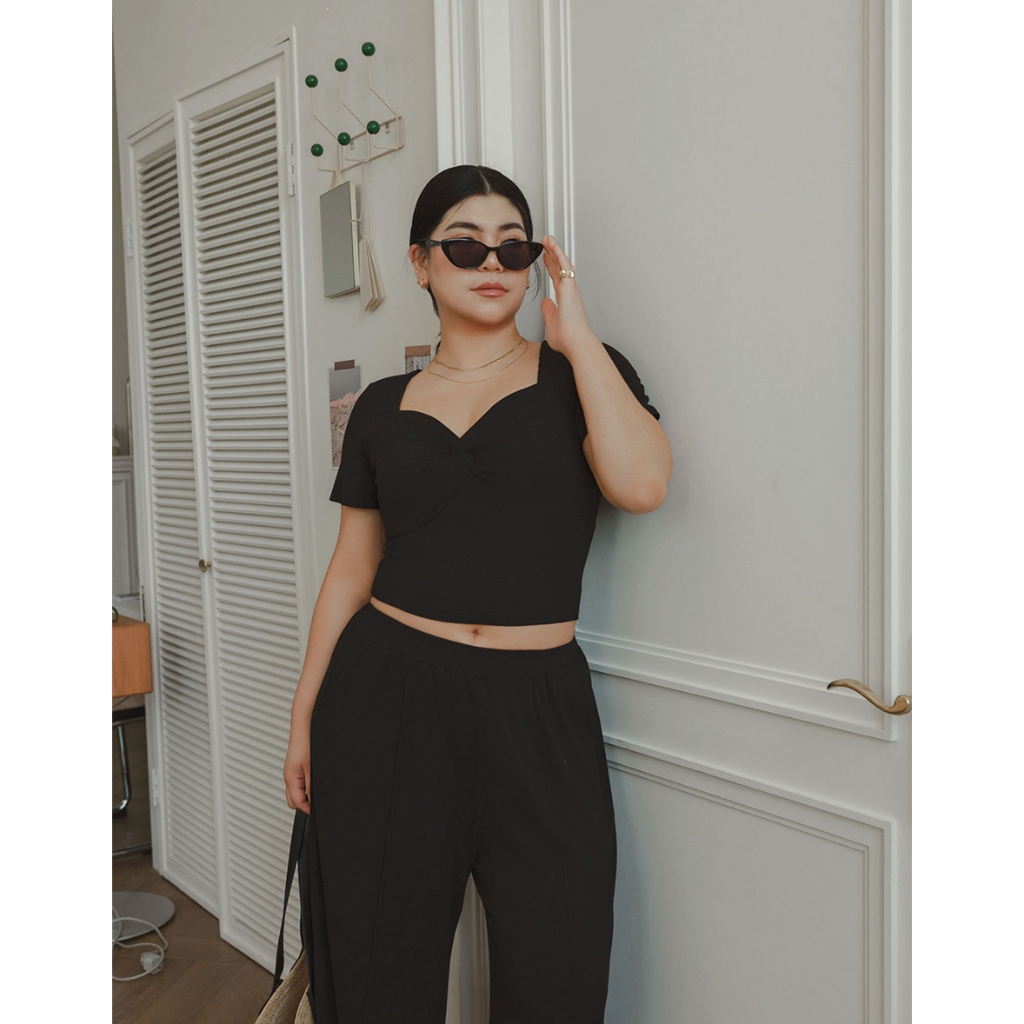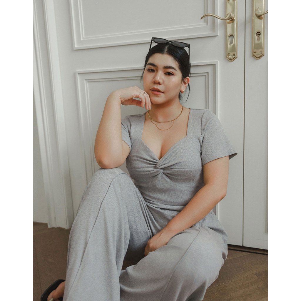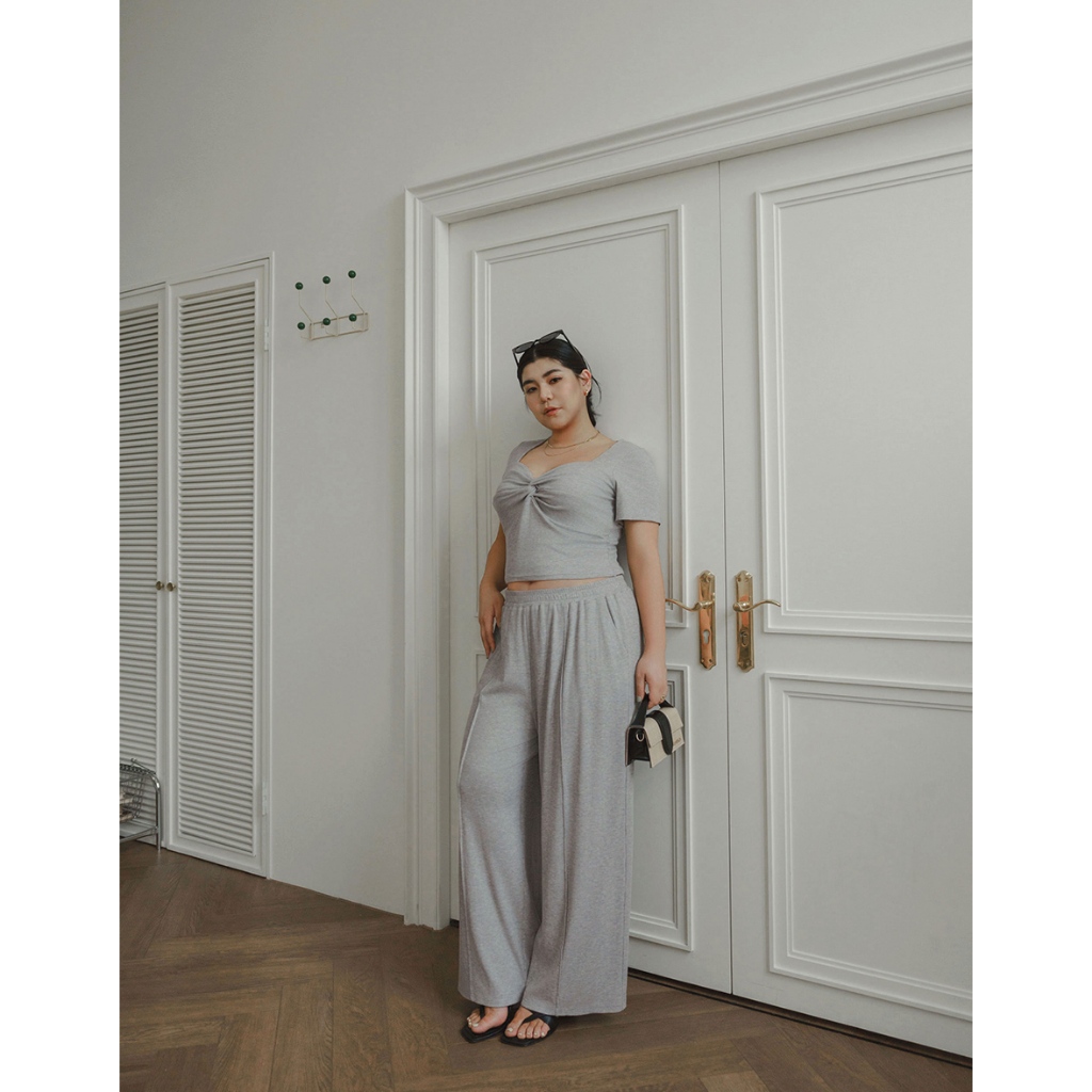 AIR SPACE PLUS 桃心領扭結設計休閒套裝(黑/淺灰) 女裝 現貨 大尺碼 中大尺碼黑,XL|黑,2XL|黑,3XL|淺灰,XL|淺灰,2XL|淺灰,3XLIndividual SetsAIR SPACE
