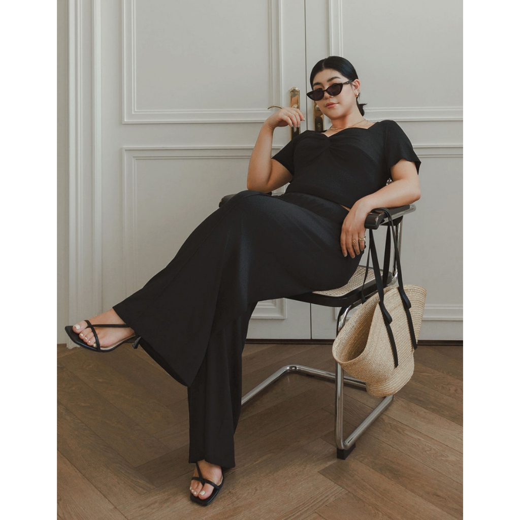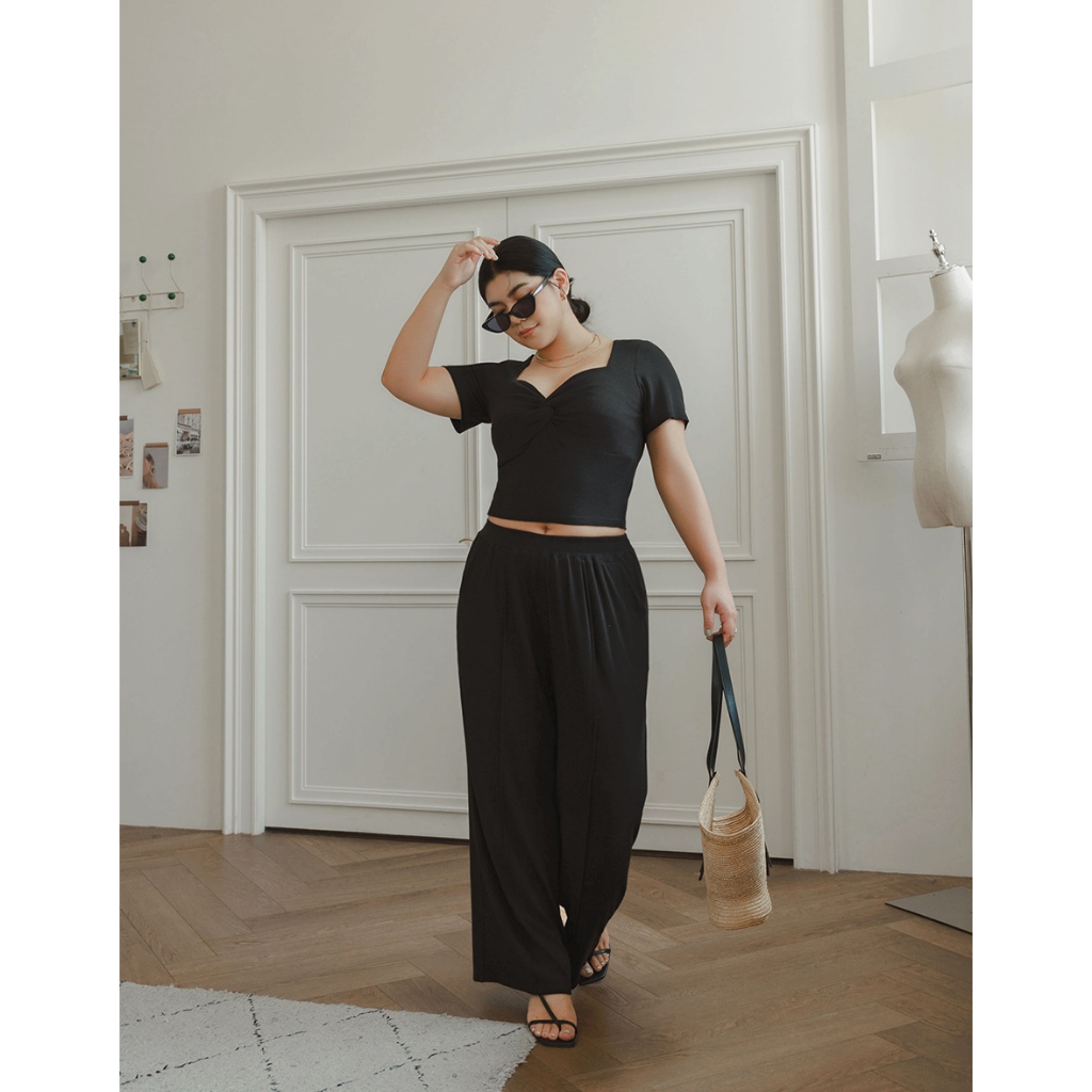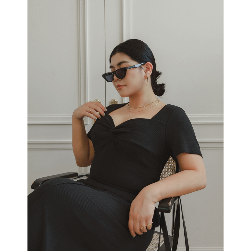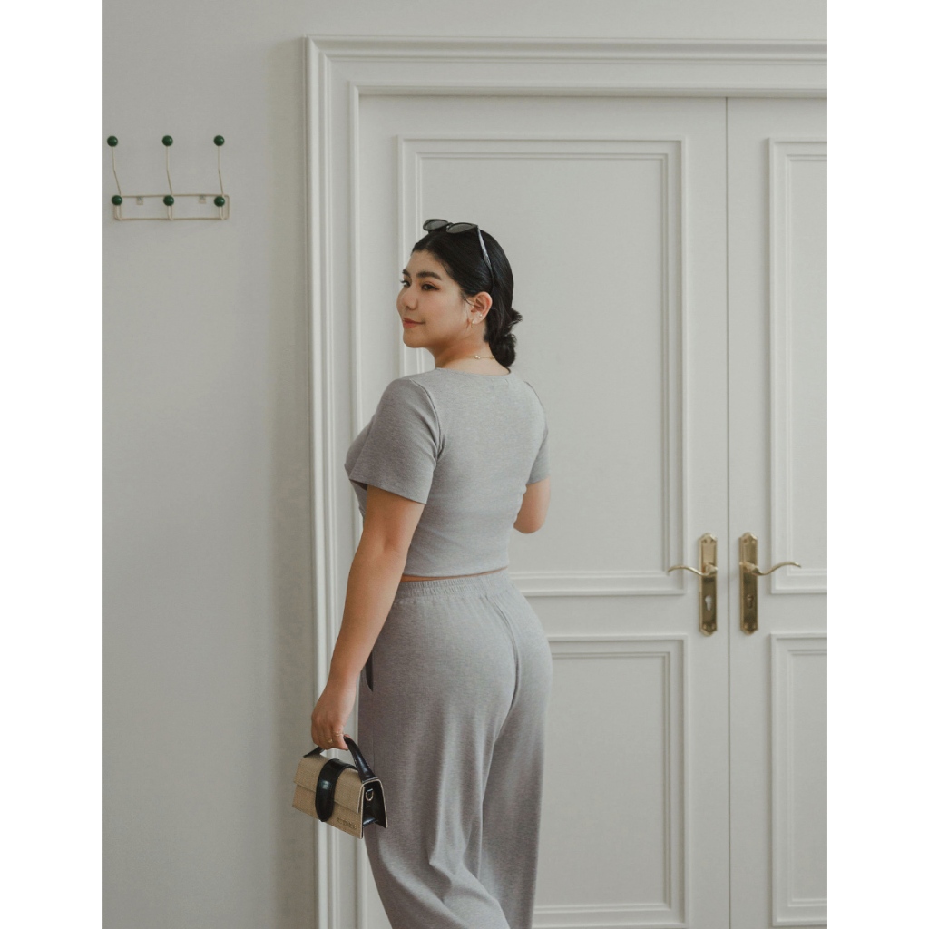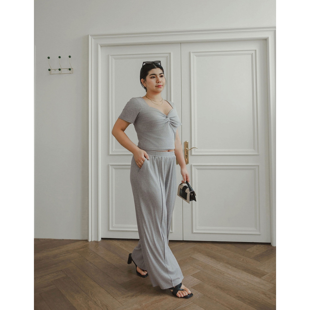 AIR SPACE PLUS 桃心領扭結設計休閒套裝(黑/淺灰) 女裝 現貨 大尺碼 中大尺碼黑,XL|黑,2XL|黑,3XL|淺灰,XL|淺灰,2XL|淺灰,3XLIndividual SetsAIR SPACE