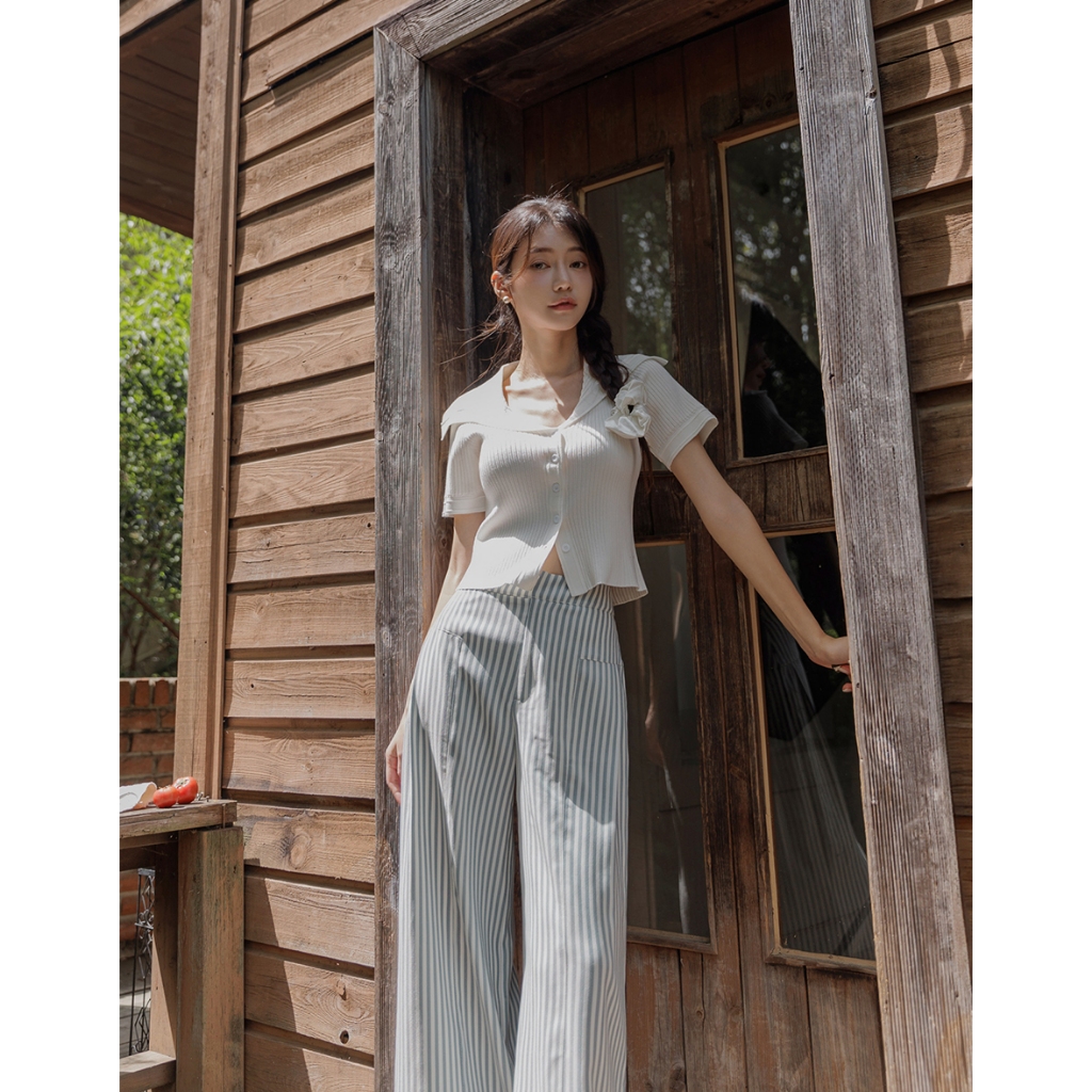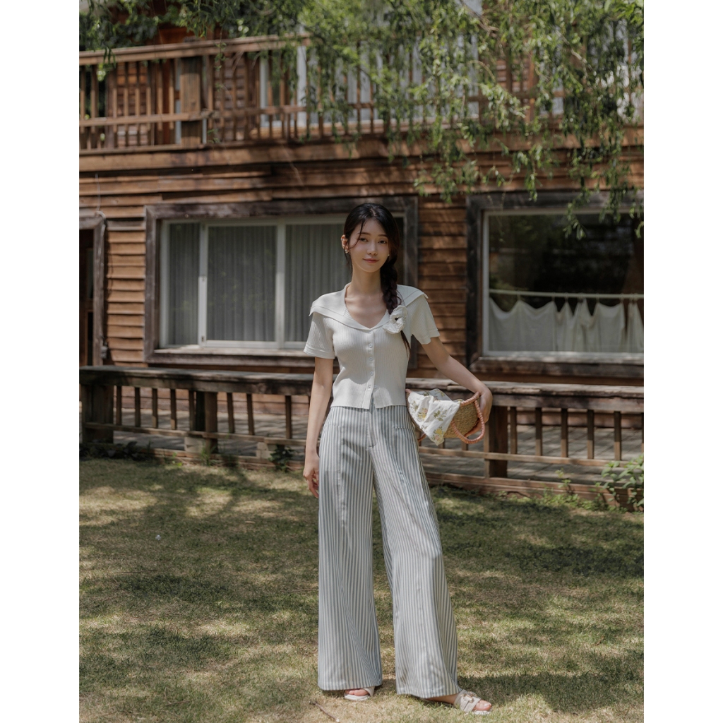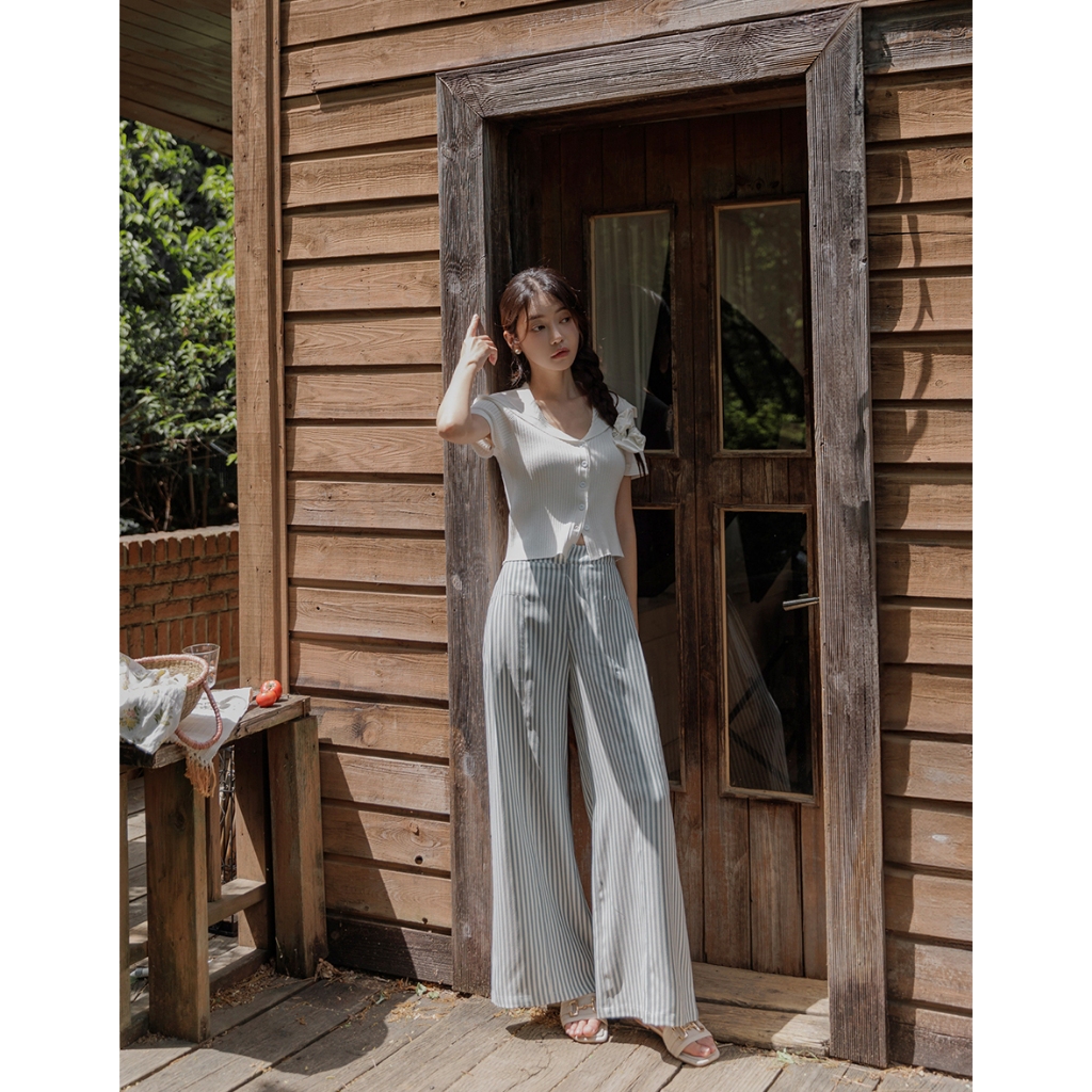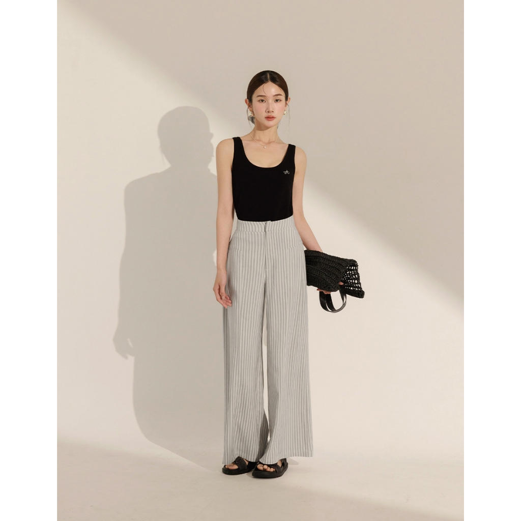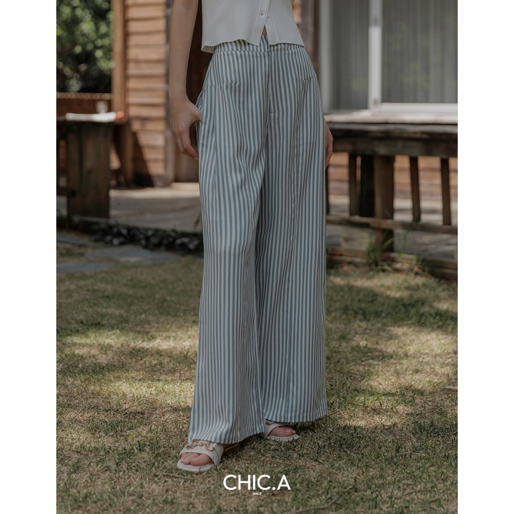 CHIC A SPACE 直條紋寬管休閒長褲(藍/卡其) 女裝 現貨藍,S|藍,M|藍,L|卡其,S|卡其,M|卡其,LPantsAIR SPACE