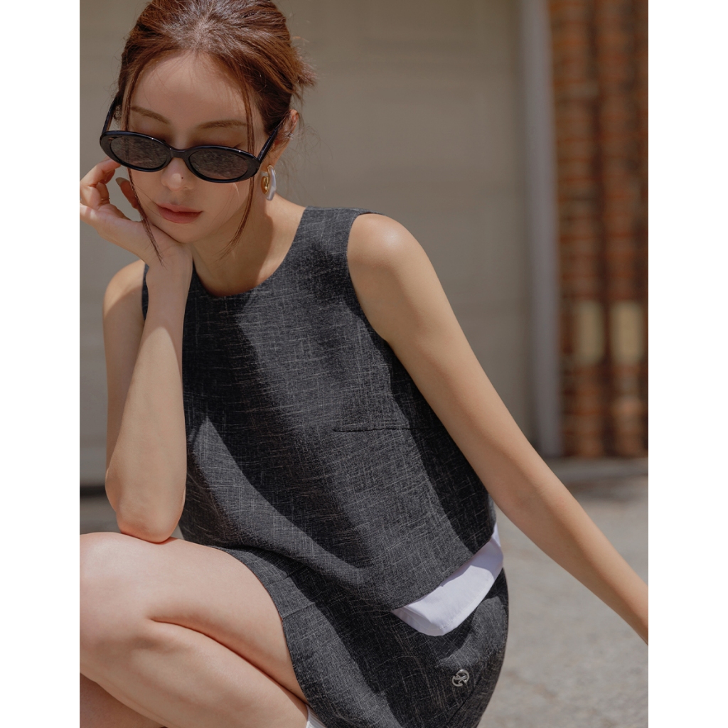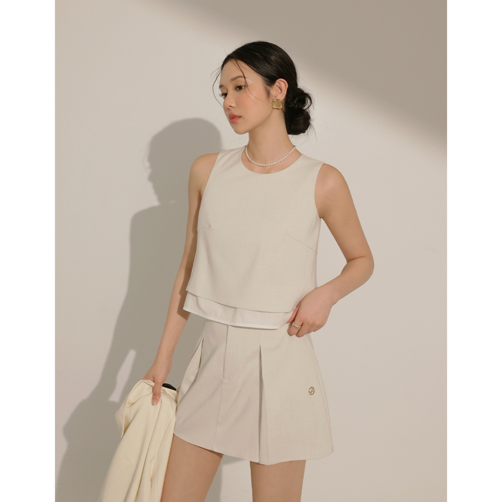 CHIC A SPACE 亞麻感雙層次無袖上衣(杏/深藍) 女裝 現貨杏,S|杏,M|杏,L|深藍,S|深藍,M|深藍,LOthersAIR SPACE