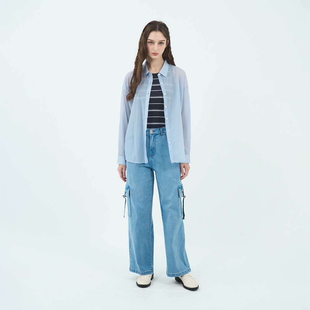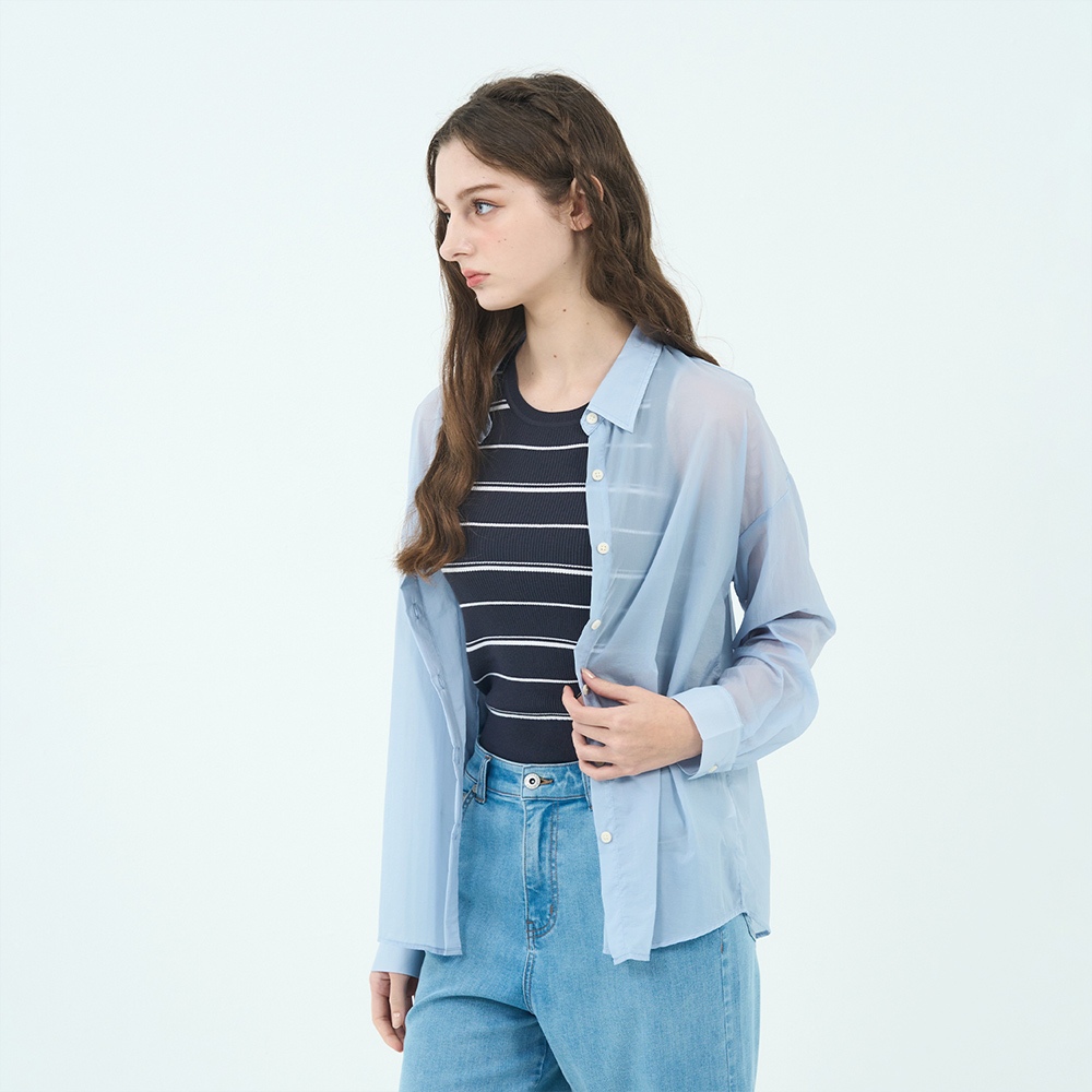GIORDANO 女裝垂感透膚襯衫 Blue Classics系列 0534500731 柔和藍,S|31 柔和藍,M|31 柔和藍,LShirts & Blouses【GIORDANO 佐丹奴】官方旗艦館