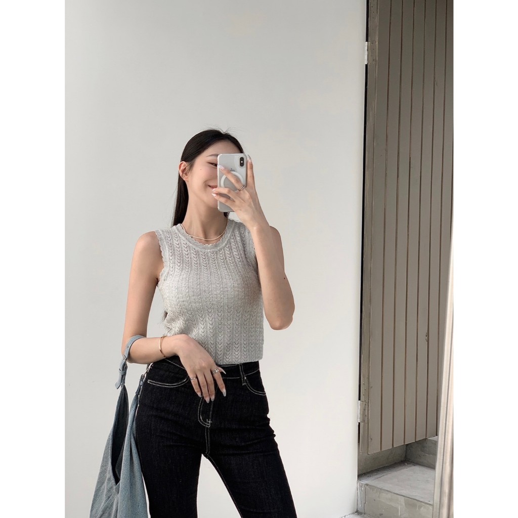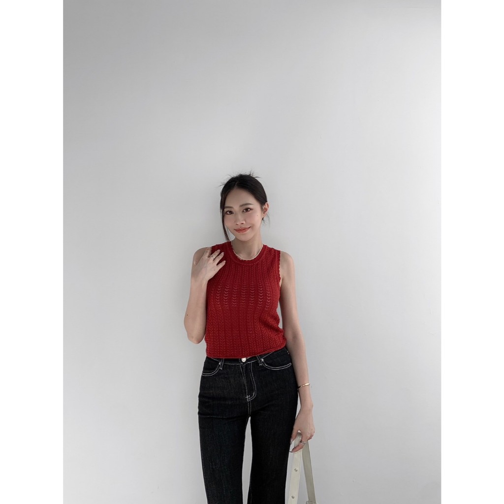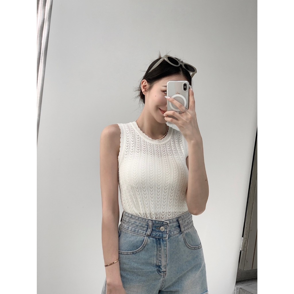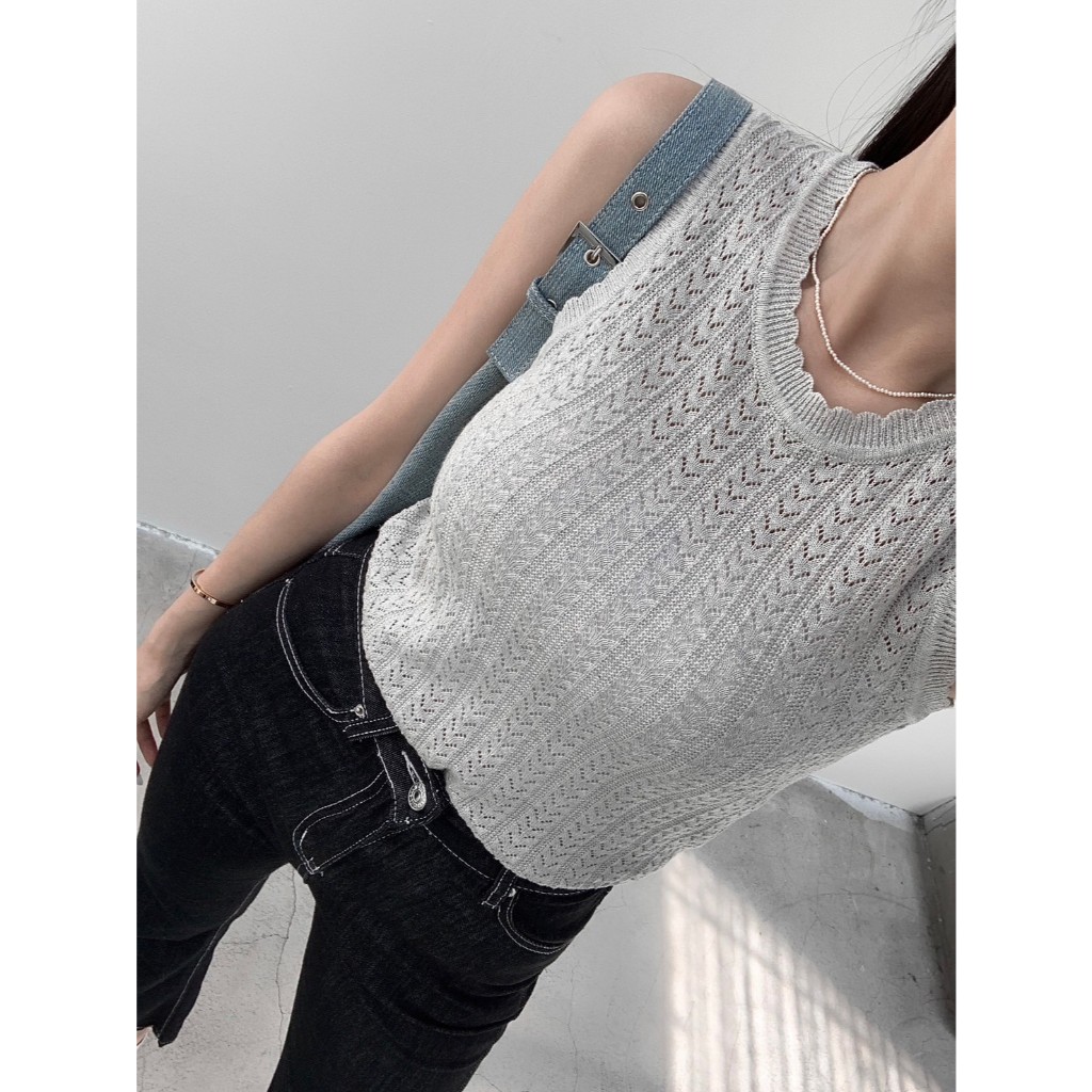 【Aa.chic】百搭花朵邊針織背心(四色).女裝/上身/百搭/花朵邊/針織/背心/日常/秋裝【C080175】灰(現貨)|紅(現貨)|黑(現貨)|白(現貨)OthersAa Chic