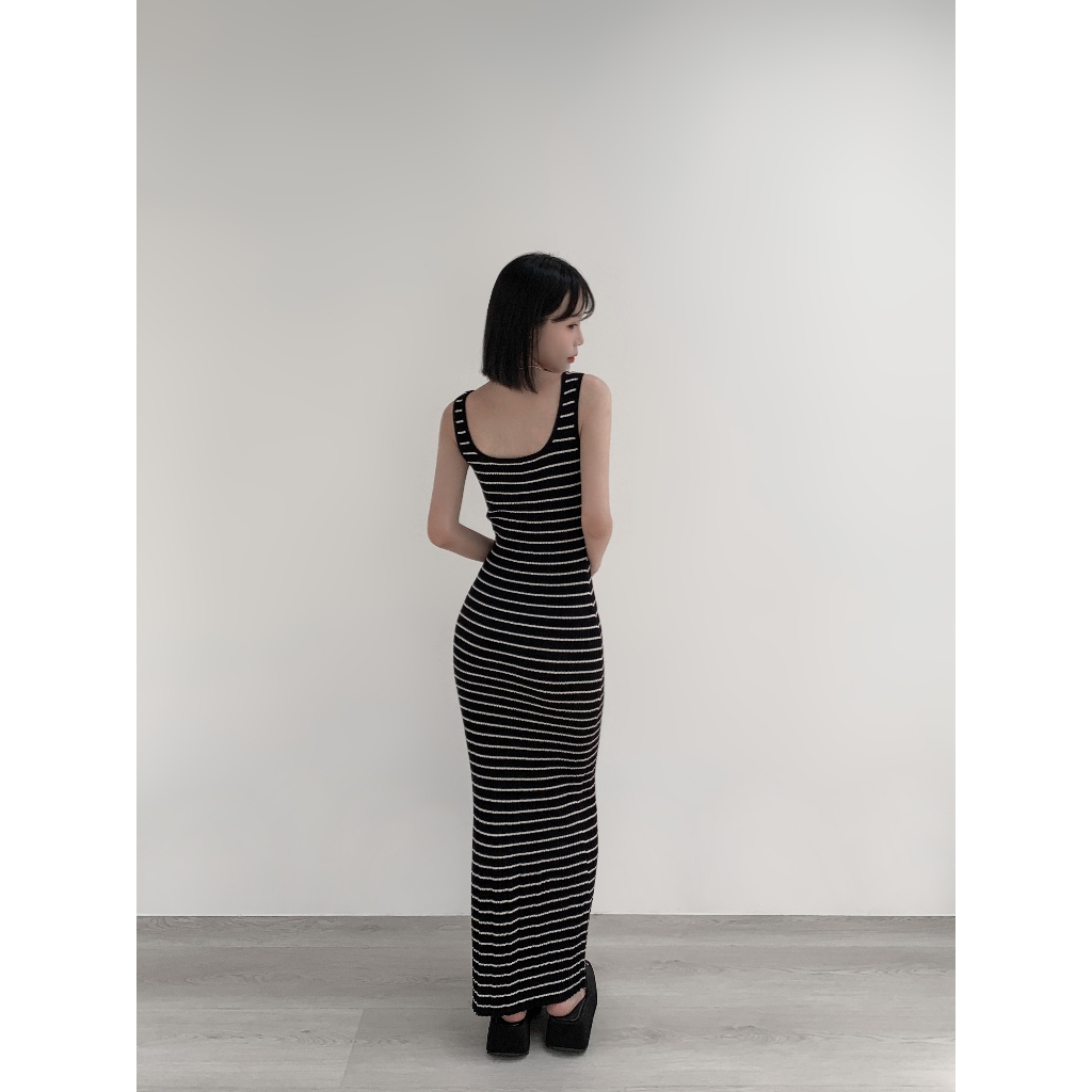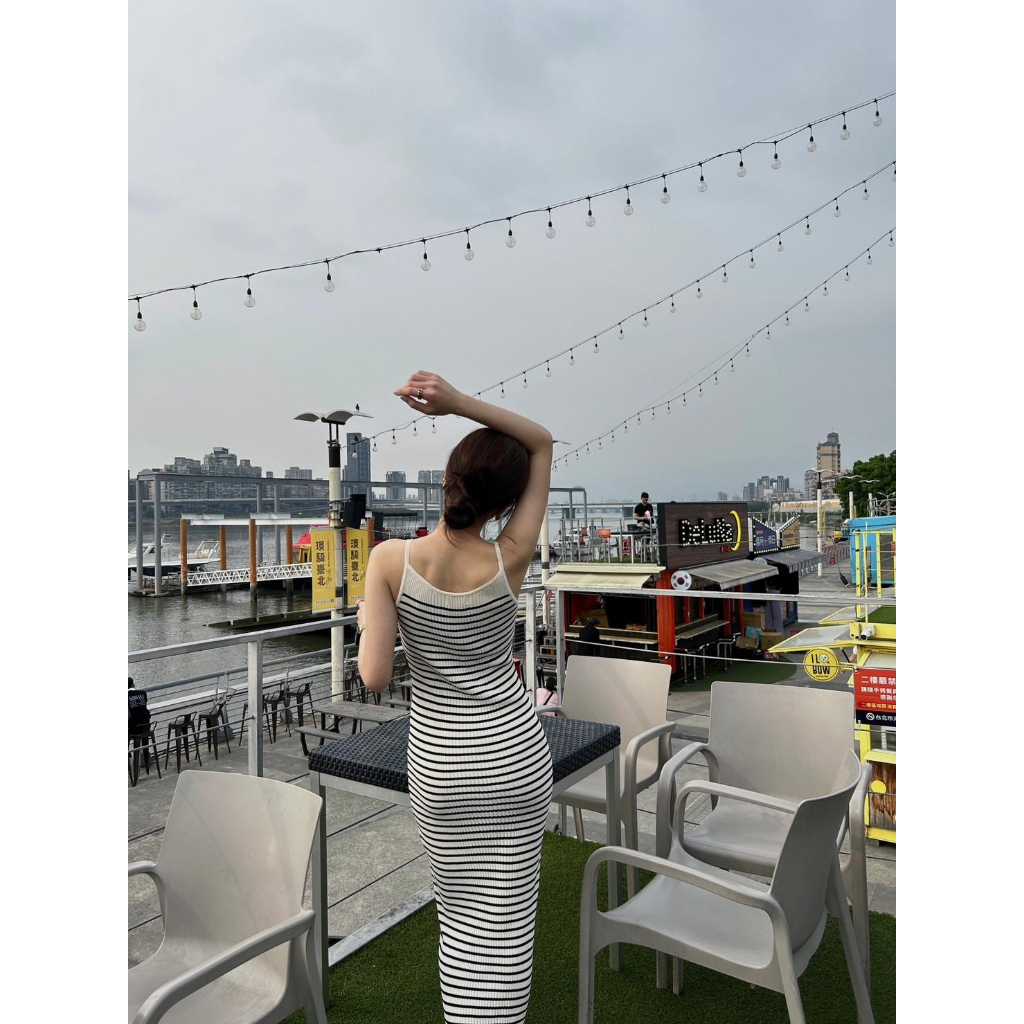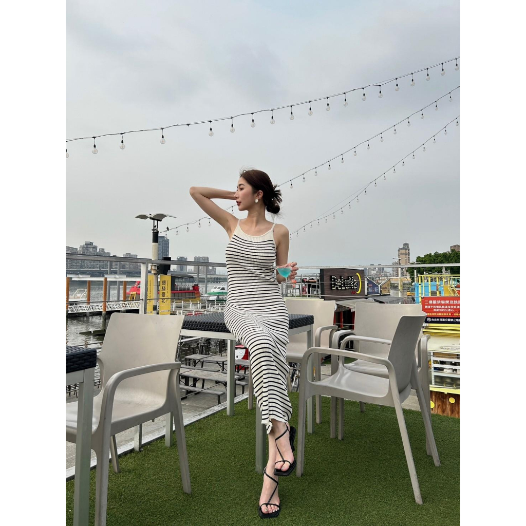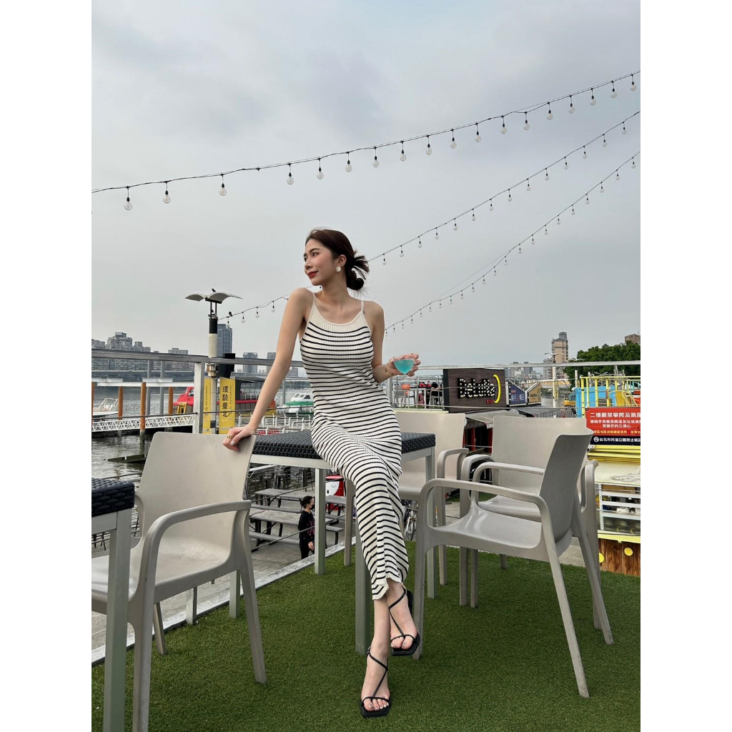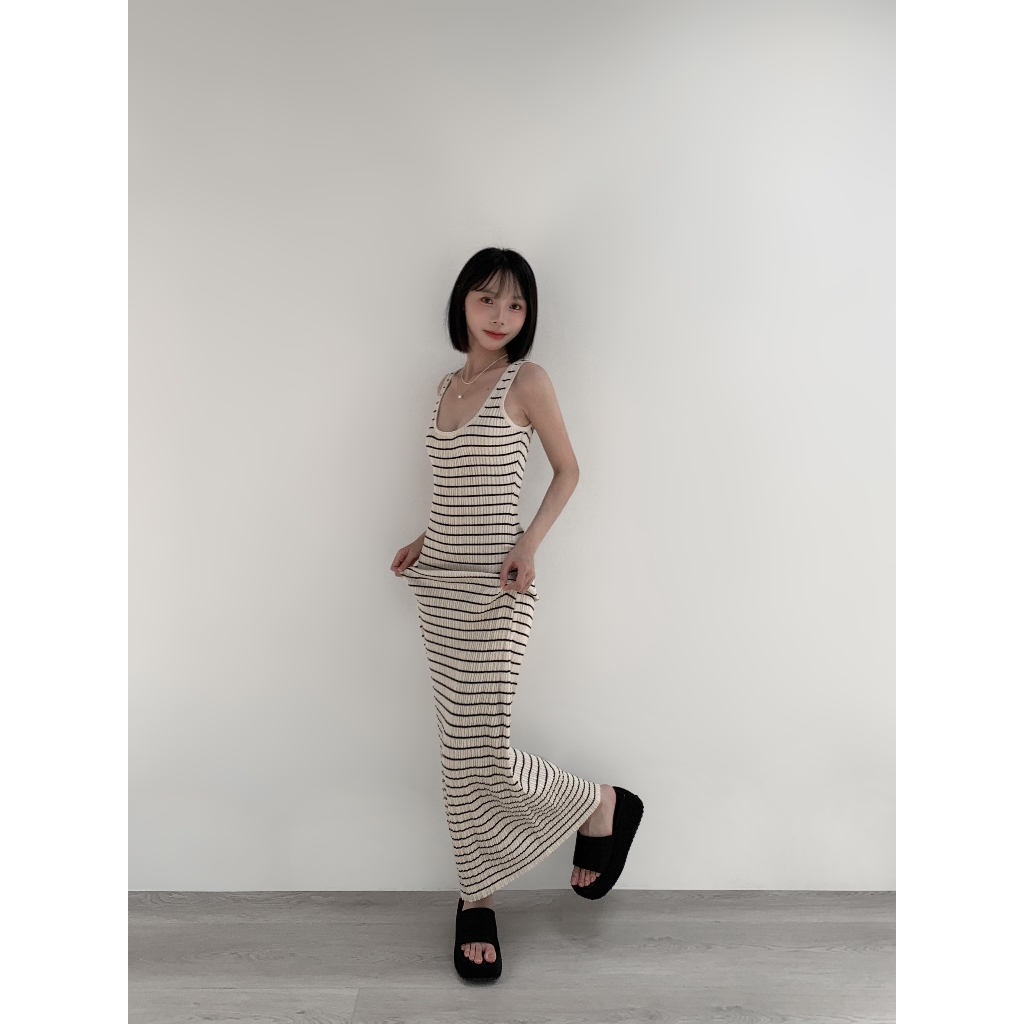 【Aa.chic熱賣商品】超彈細肩條紋針織長洋(單一色).女裝/連身裙/針織/實拍/訂製款/渡假【C766909】單一色(現貨)Aa Chic