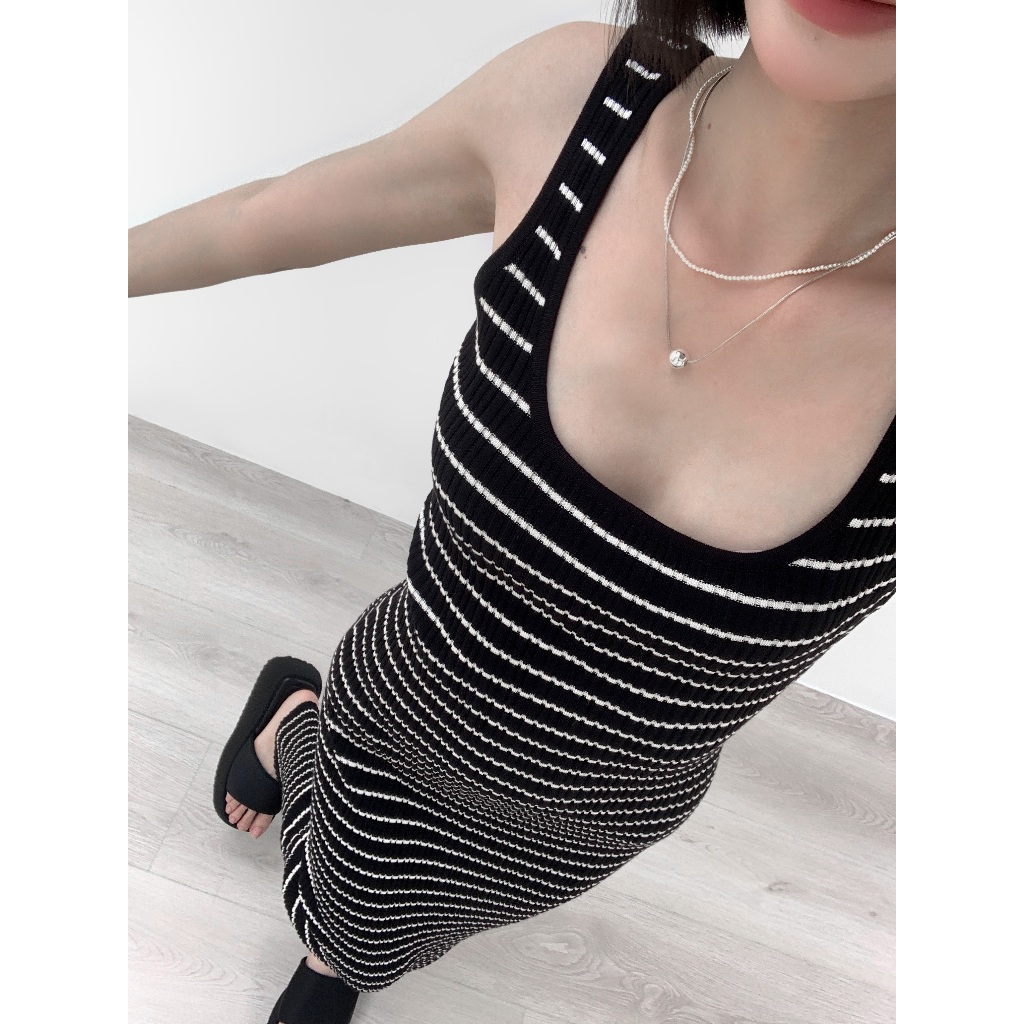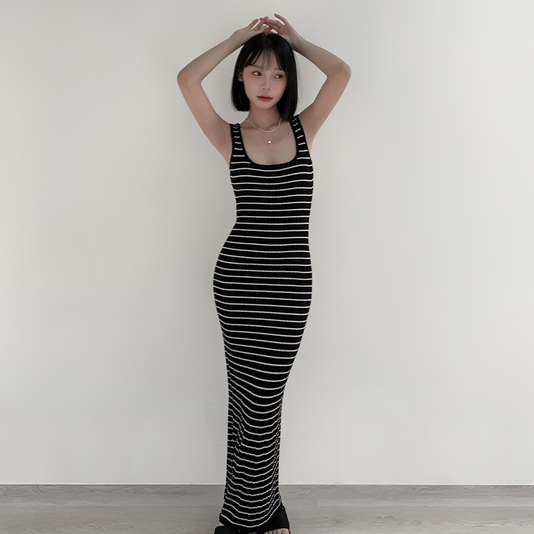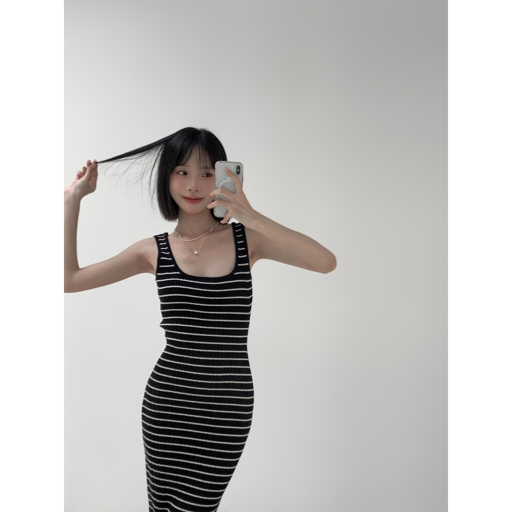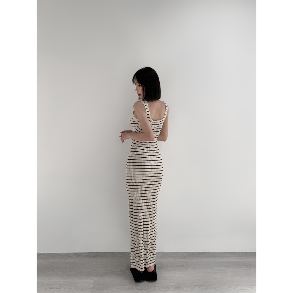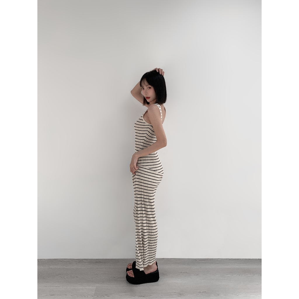 【Aa.chic熱賣商品】超彈細肩條紋針織長洋(單一色).女裝/連身裙/針織/實拍/訂製款/渡假【C766909】單一色(現貨)Aa Chic