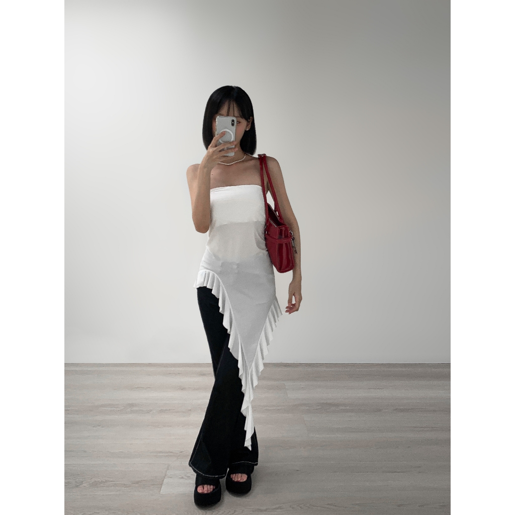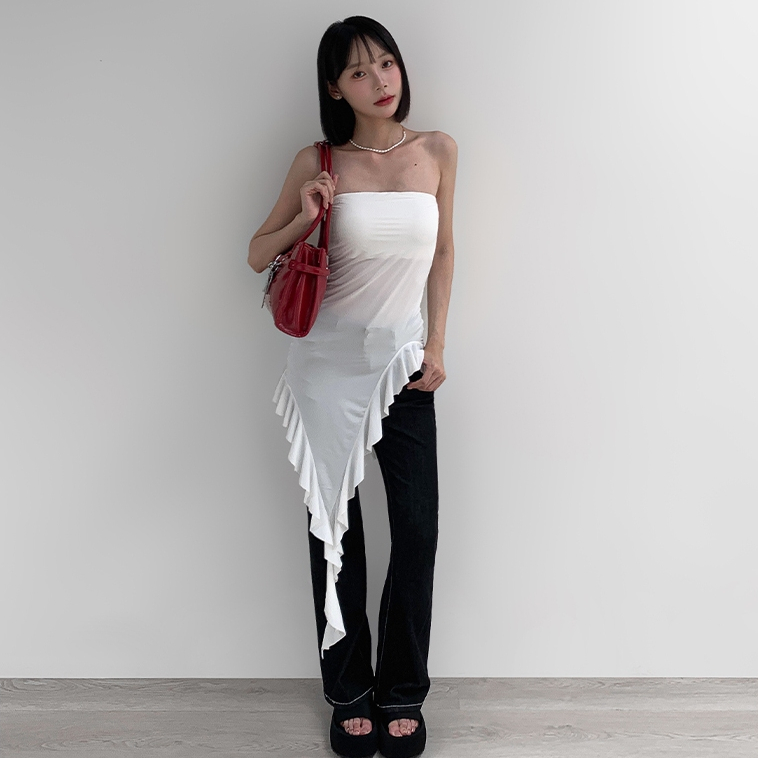 【Aa.chic】甜辣不規則設計抹胸背心(單一色).女裝/平口/背心/不規則/透膚/甜辣/夏日【C209810】單一色(現貨)Tube TopsAa Chic