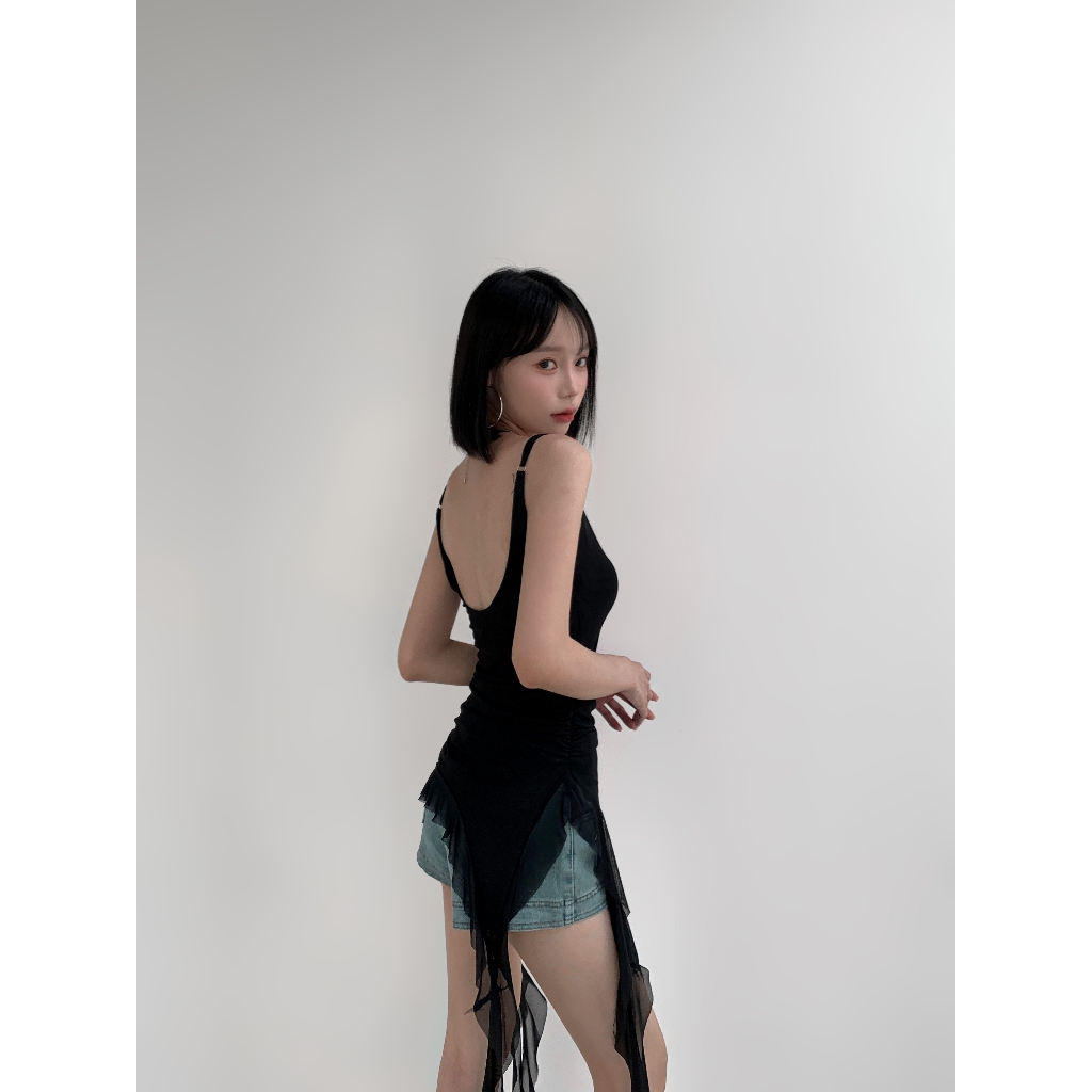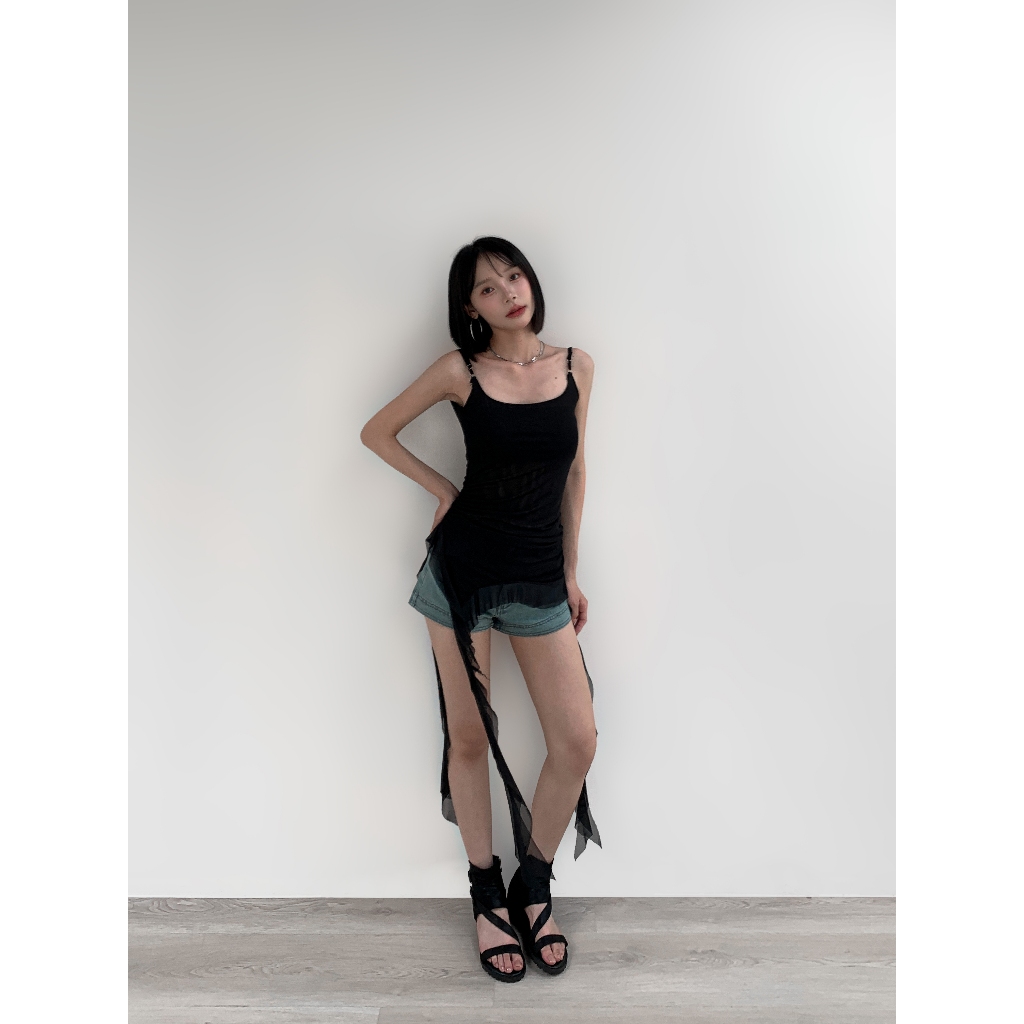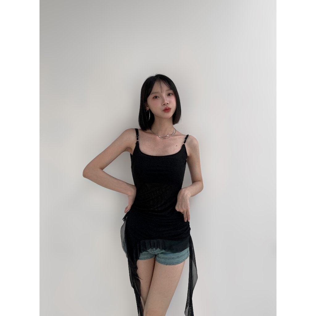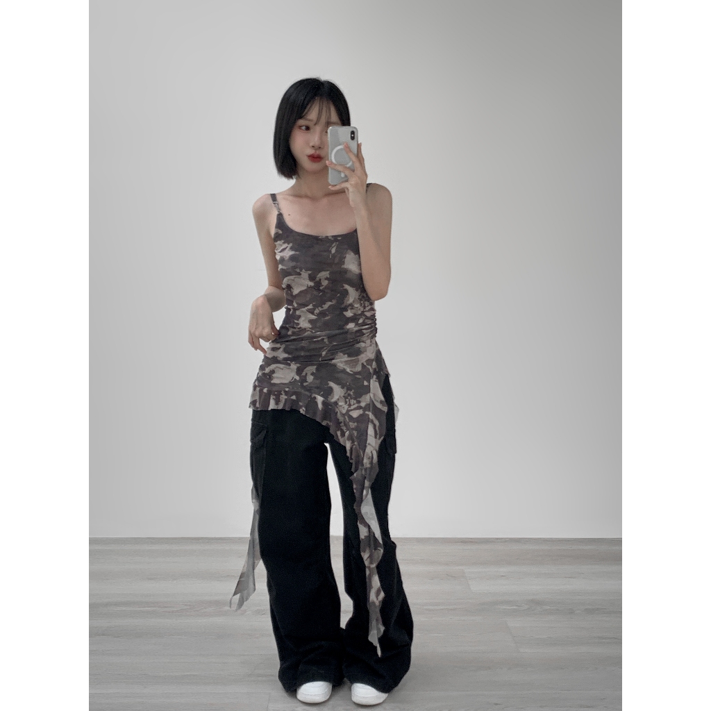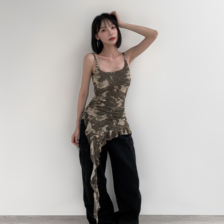 【Aa.chic熱賣商品】復古不對襯吊帶背心(兩色).女裝/細肩/不對襯/細肩/背心/復古/美背【C203371】黑(現貨)|迷彩(現貨)Tanks & CamisolesAa Chic