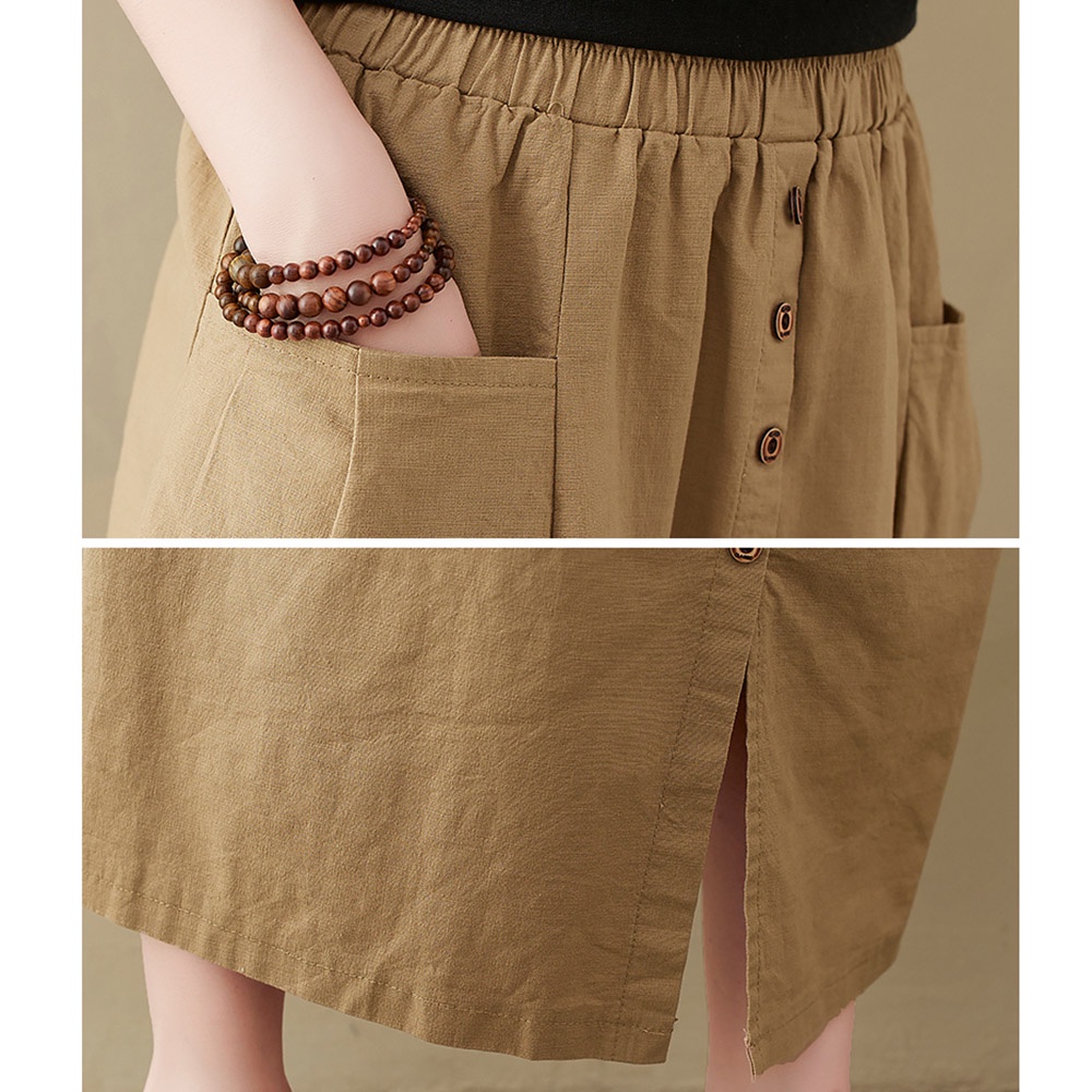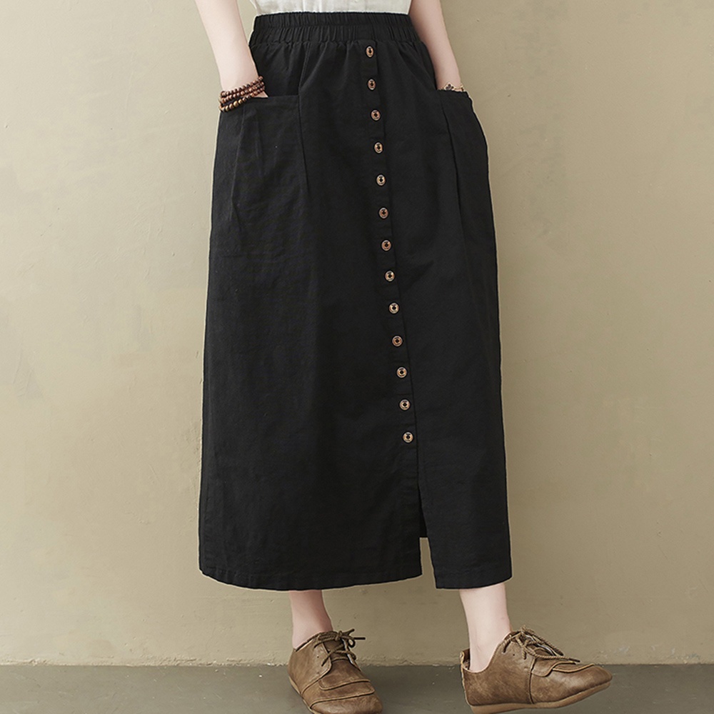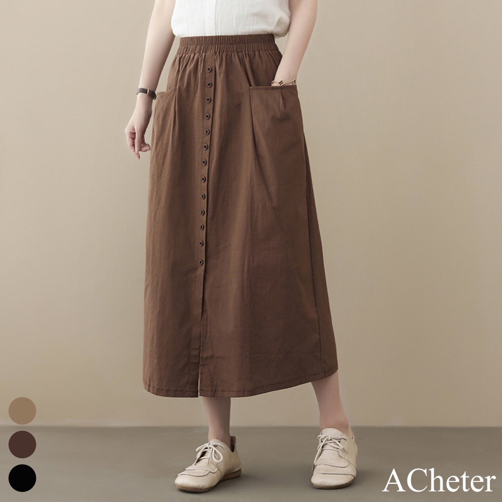 【ACheter】棉質大口袋開衩寬鬆鬆緊腰顯瘦長裙110045黑,L|黑,XL|黑,M|卡其,M|卡其,L|卡其,XL|咖,M|咖,L|咖,XLBottomsACheter 官方旗艦店