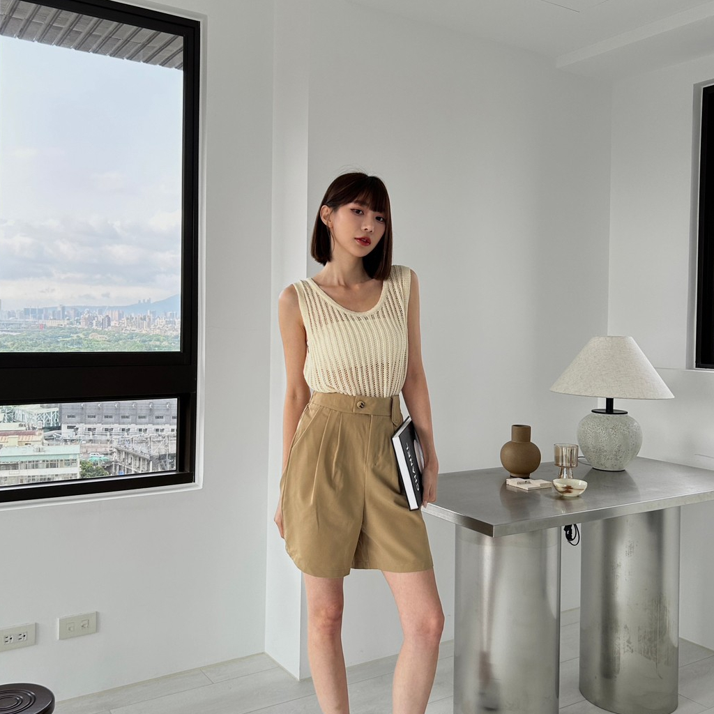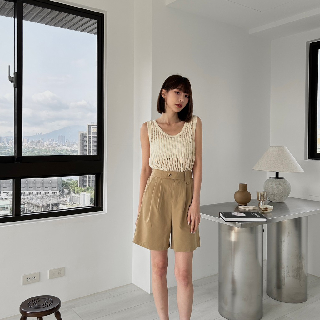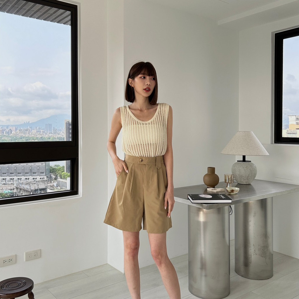 【Aa.chic出清5折起】橫釦鬆緊顯瘦五分短褲(四色)西裝褲/四季可穿/顯瘦/修身/高腰/實拍【C207153】黑(現貨)|杏(現貨)|深灰(現貨)|卡其(現貨)ShortsAa Chic