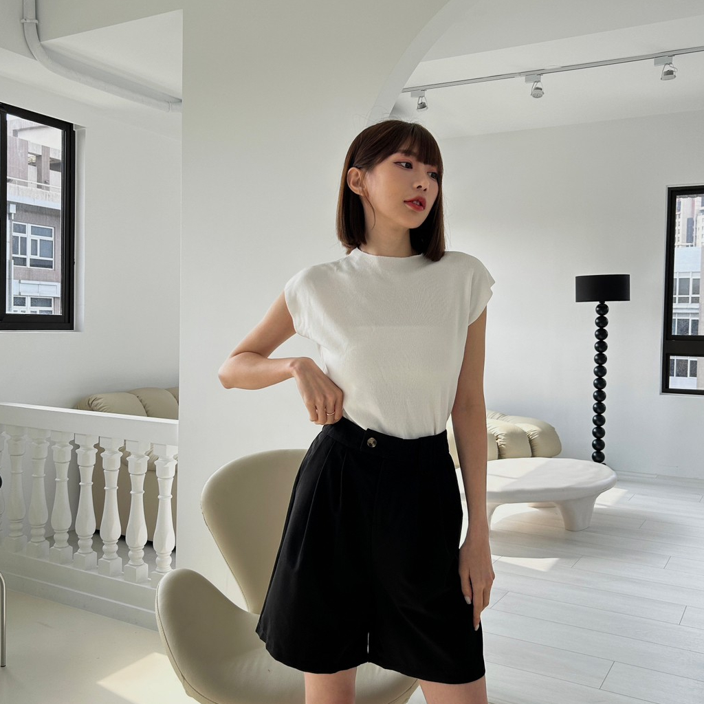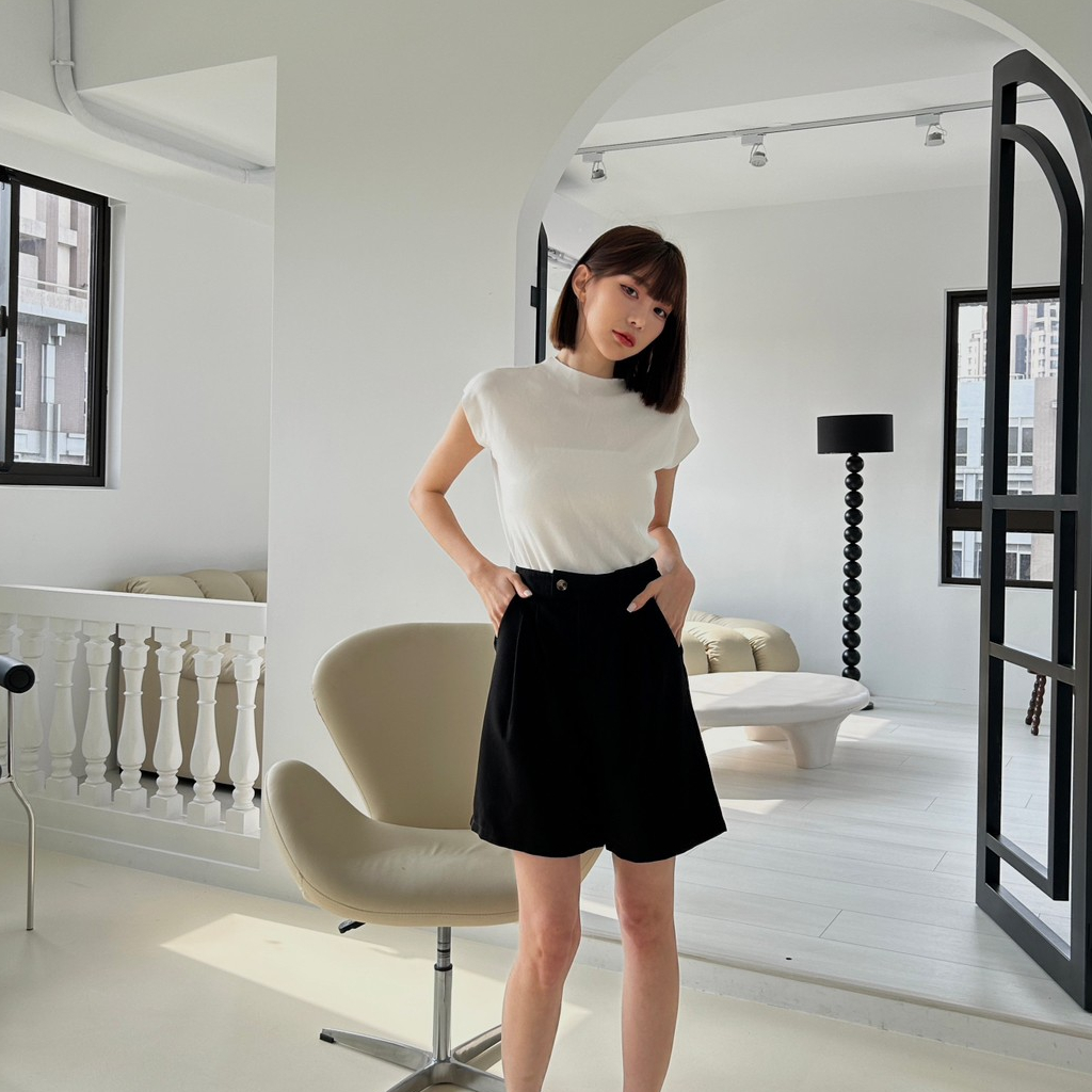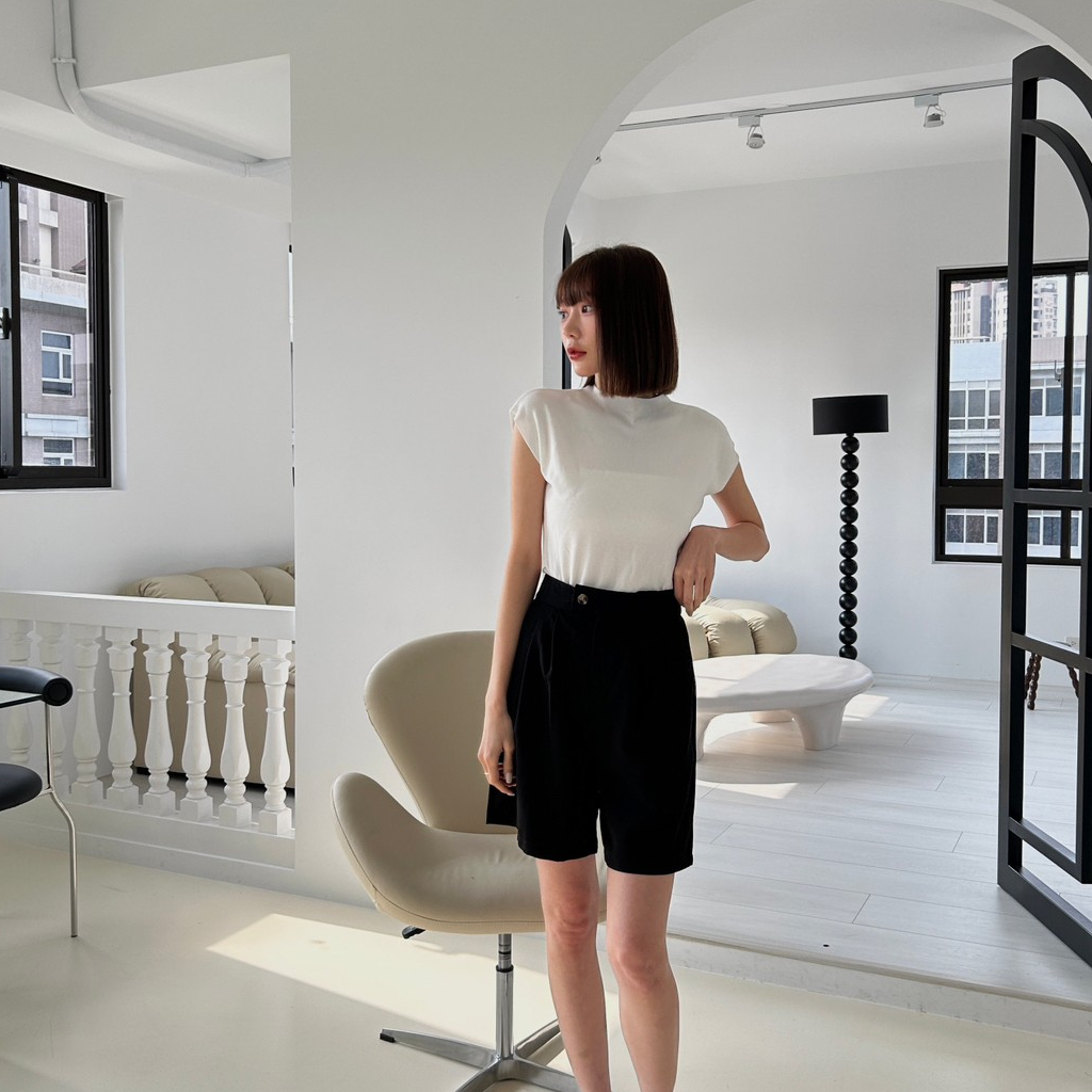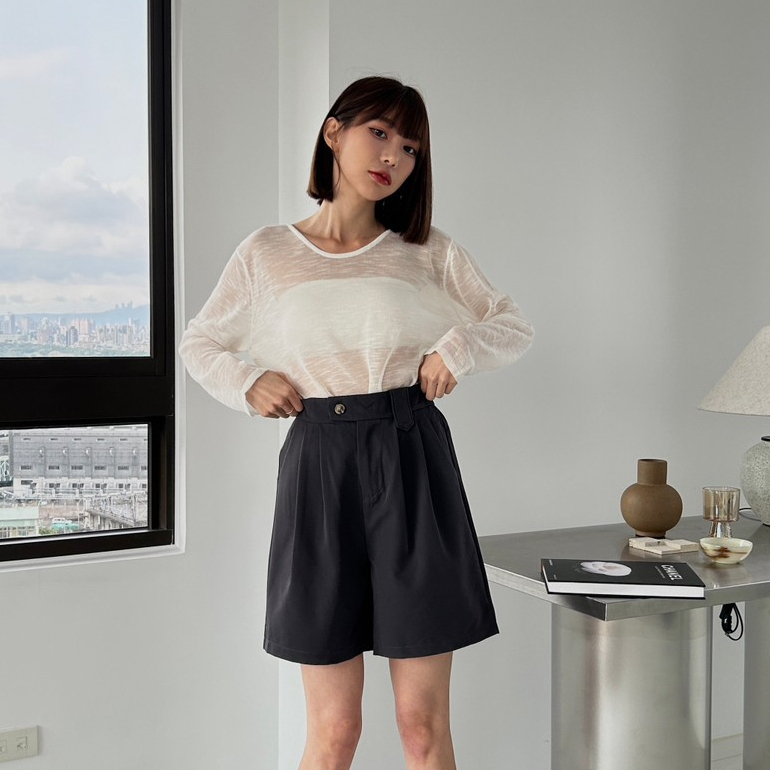 【Aa.chic出清5折起】橫釦鬆緊顯瘦五分短褲(四色)西裝褲/四季可穿/顯瘦/修身/高腰/實拍【C207153】黑(現貨)|杏(現貨)|深灰(現貨)|卡其(現貨)ShortsAa Chic