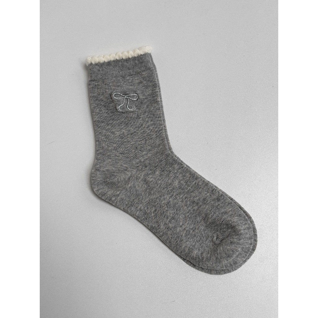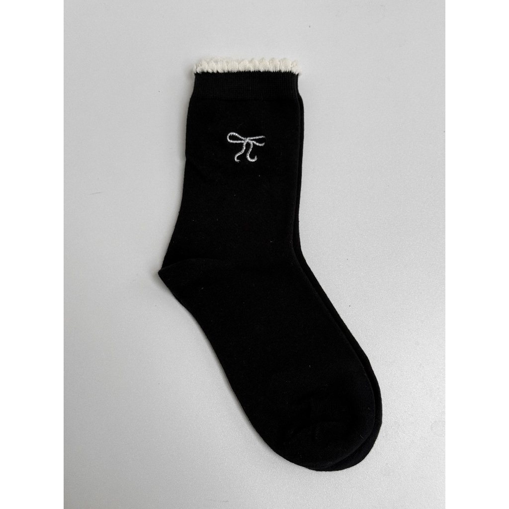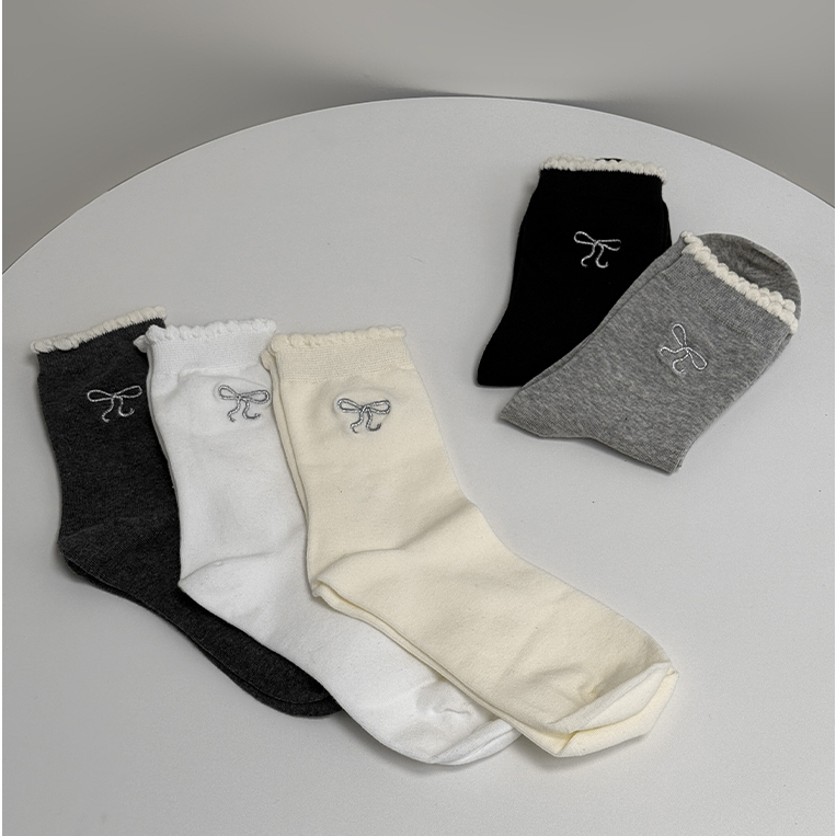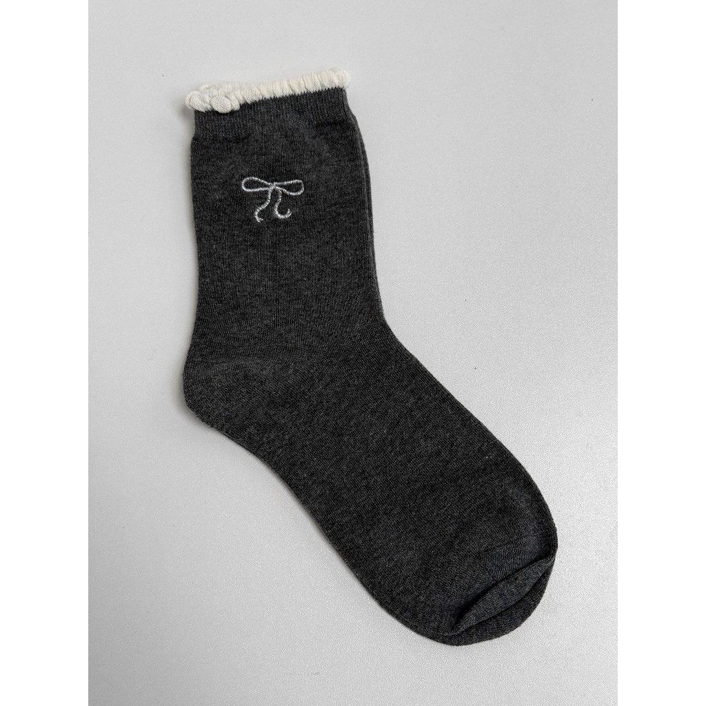 【Aa.chic熱賣商品】蝴蝶結刺繡中筒襪(五色).女襪/蝴蝶結/滾邊/中筒襪/刺繡/日常/實拍【C093323】黑(現貨)|白(現貨)|淺灰(現貨)|深灰(現貨)|奶白(現貨)SocksAa Chic