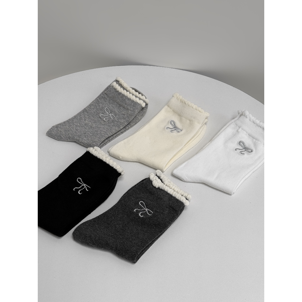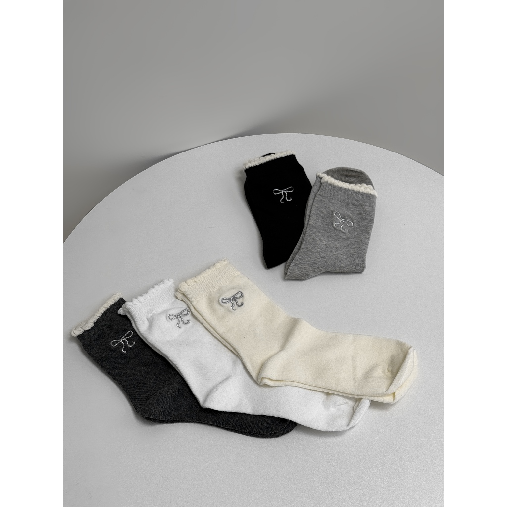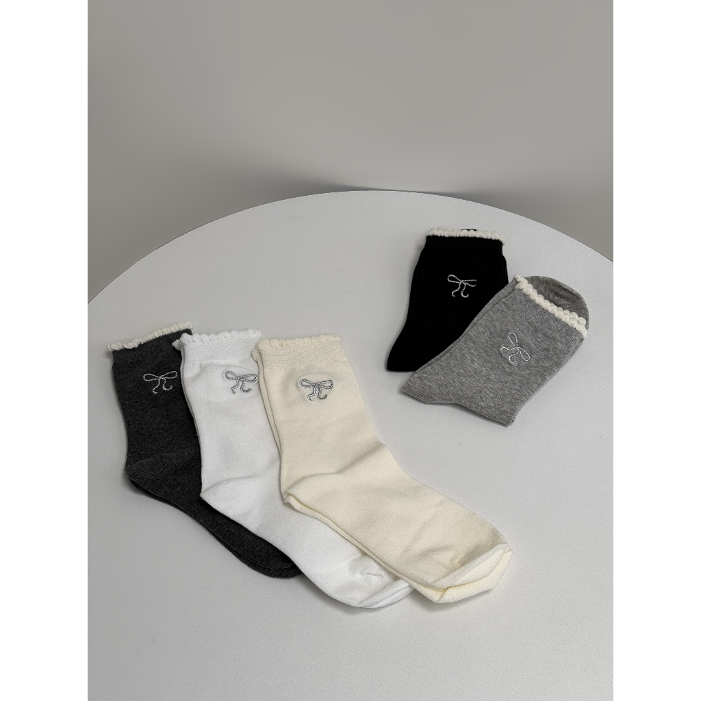 【Aa.chic熱賣商品】蝴蝶結刺繡中筒襪(五色).女襪/蝴蝶結/滾邊/中筒襪/刺繡/日常/實拍【C093323】黑(現貨)|白(現貨)|淺灰(現貨)|深灰(現貨)|奶白(現貨)SocksAa Chic