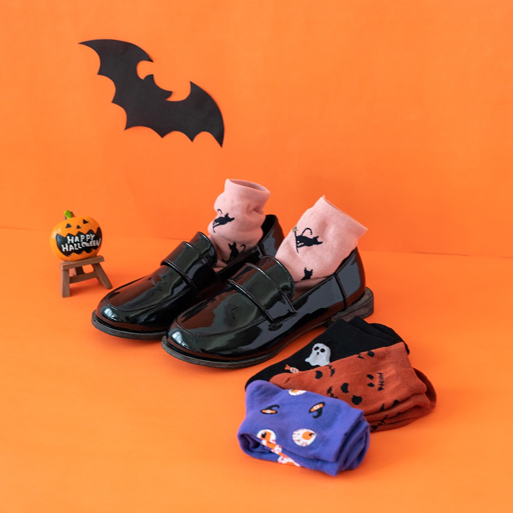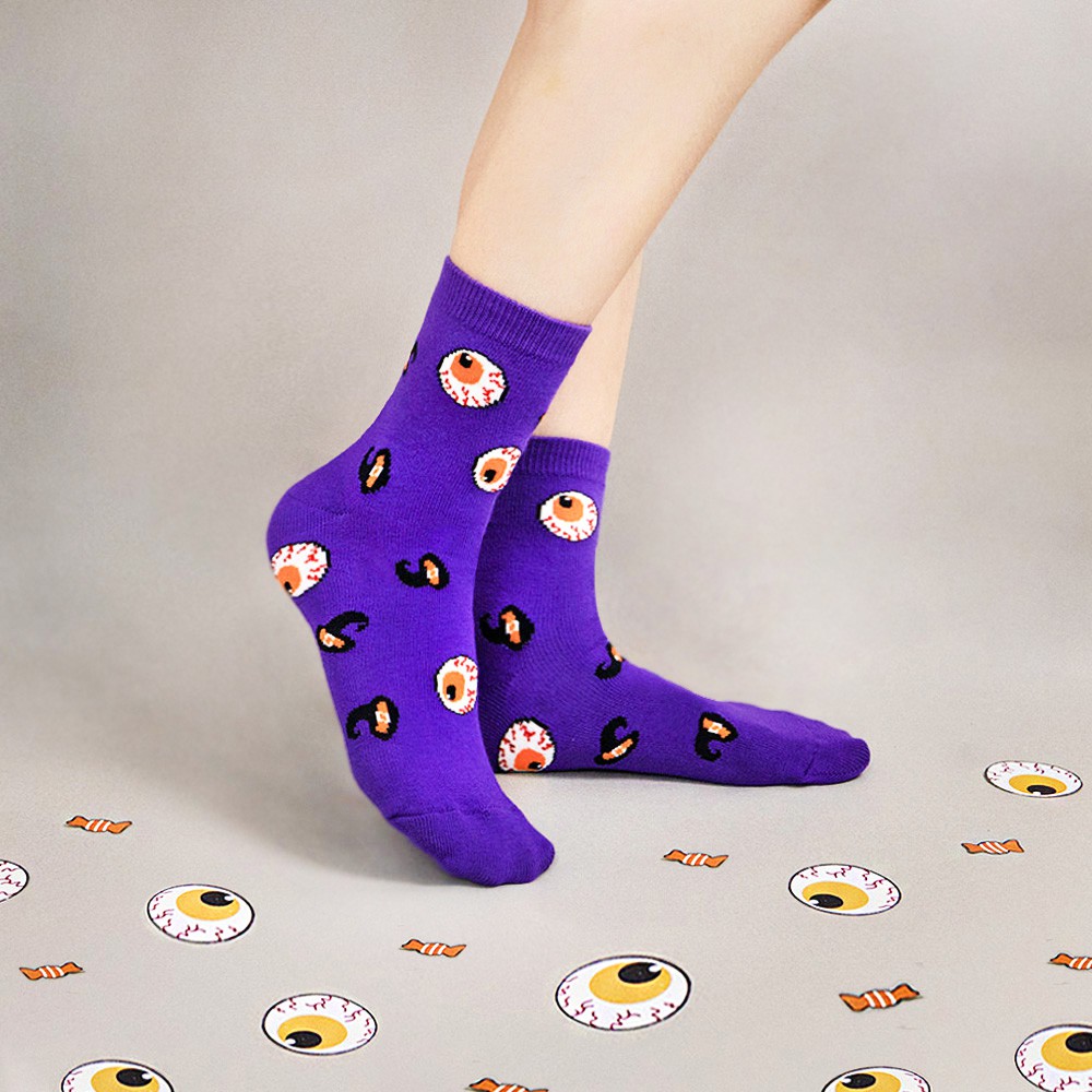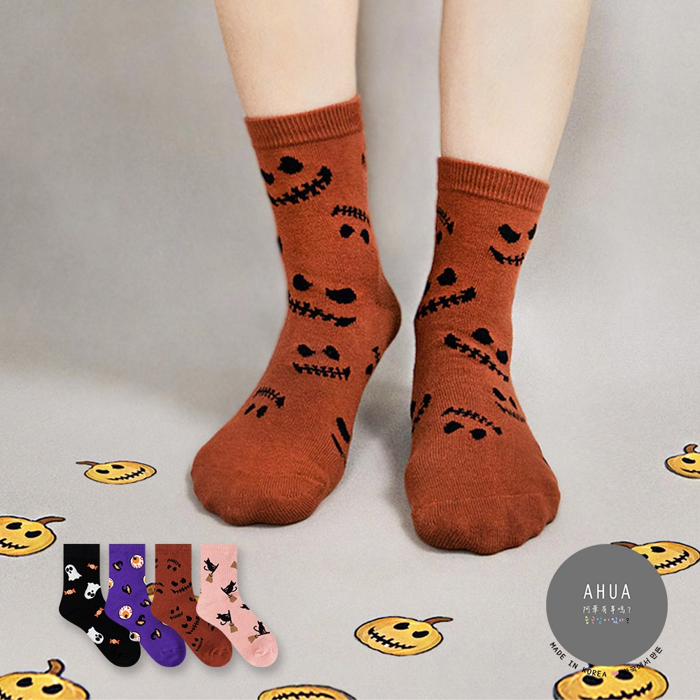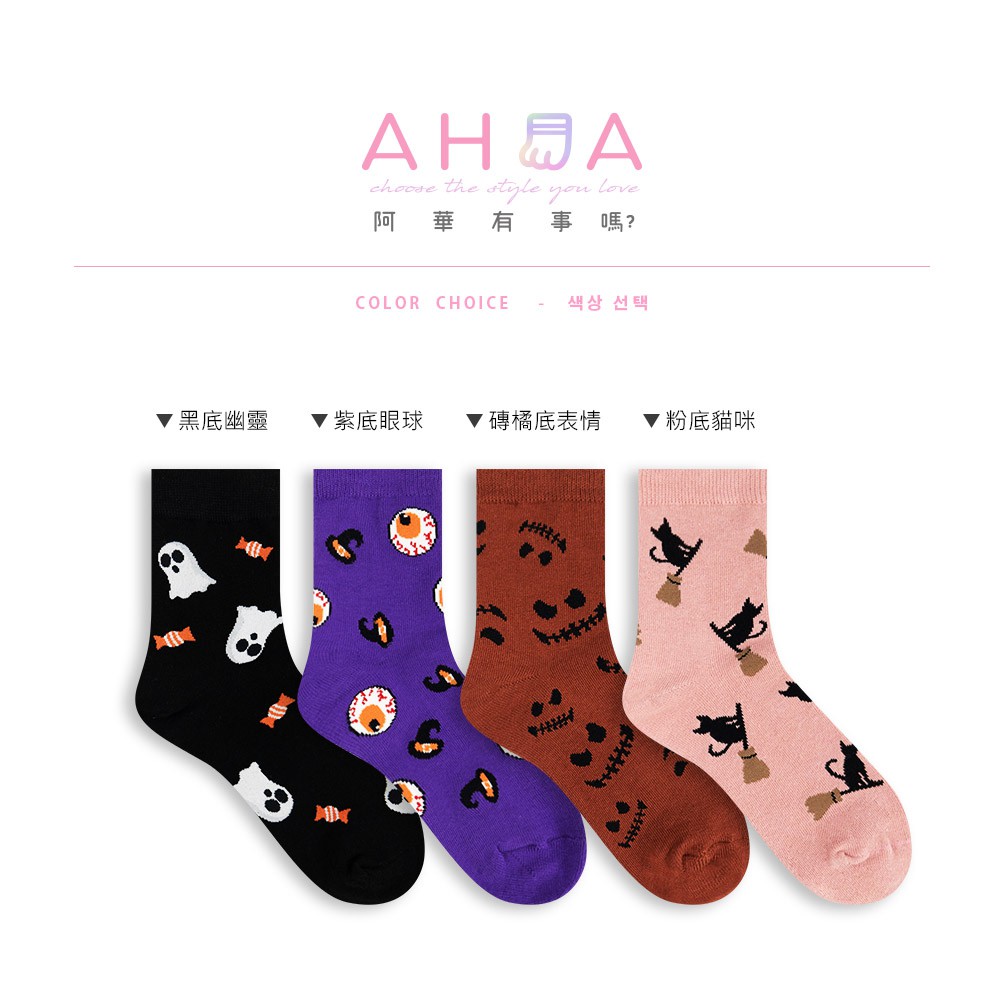 AHUA阿華有事嗎 自訂款! 滿版鬼怪中筒襪 萬聖節襪子 萬聖節打扮 派對襪子 女生襪子 MIT台灣製造 R0008粉底貓咪|磚橘底表情|黑底幽靈|紫底眼球SocksAHUA 韓國襪子品牌旗艦店